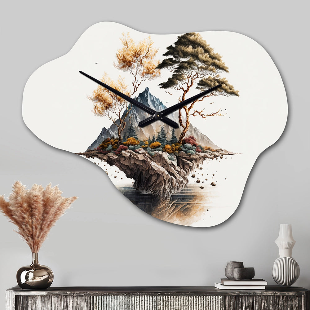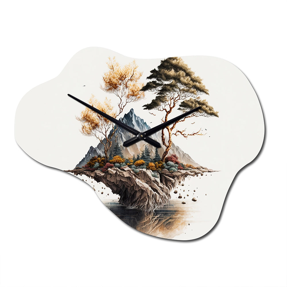 Bonsai Tree On A Rock III - Asymmetric Metal Wall Clock