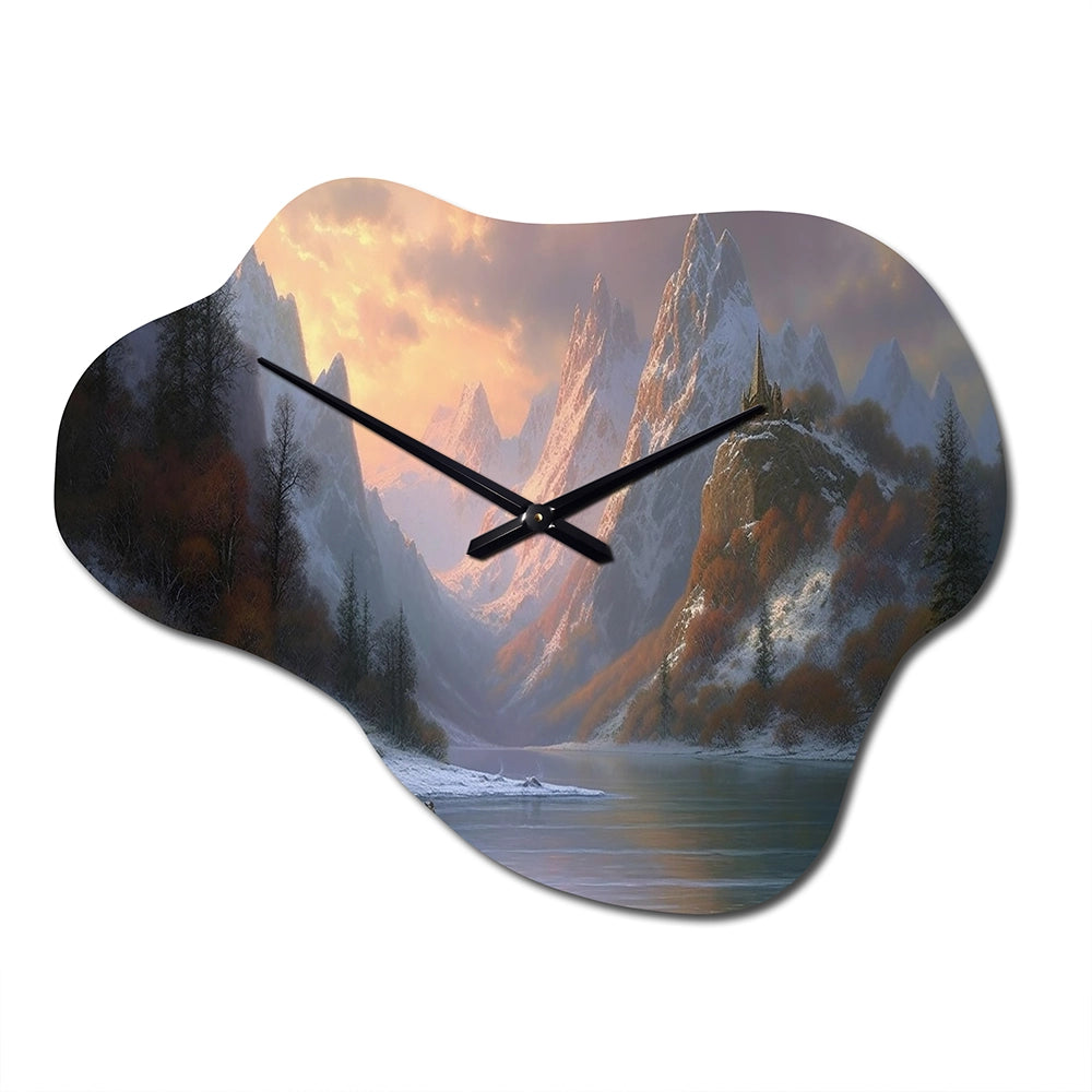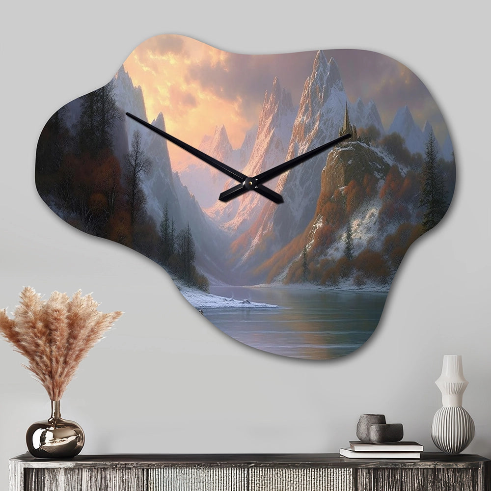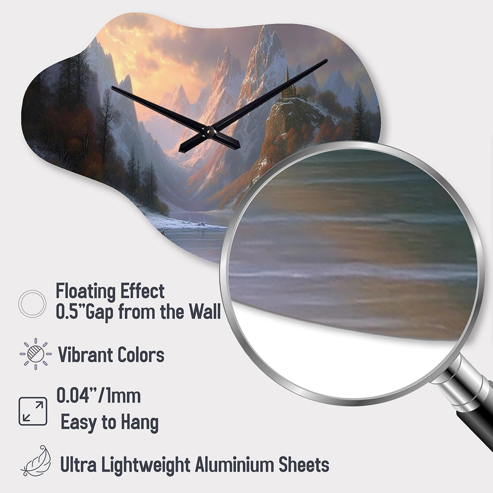 Early Morning View Of Lake And Mountains - Asymmetric Metal Wall Clock