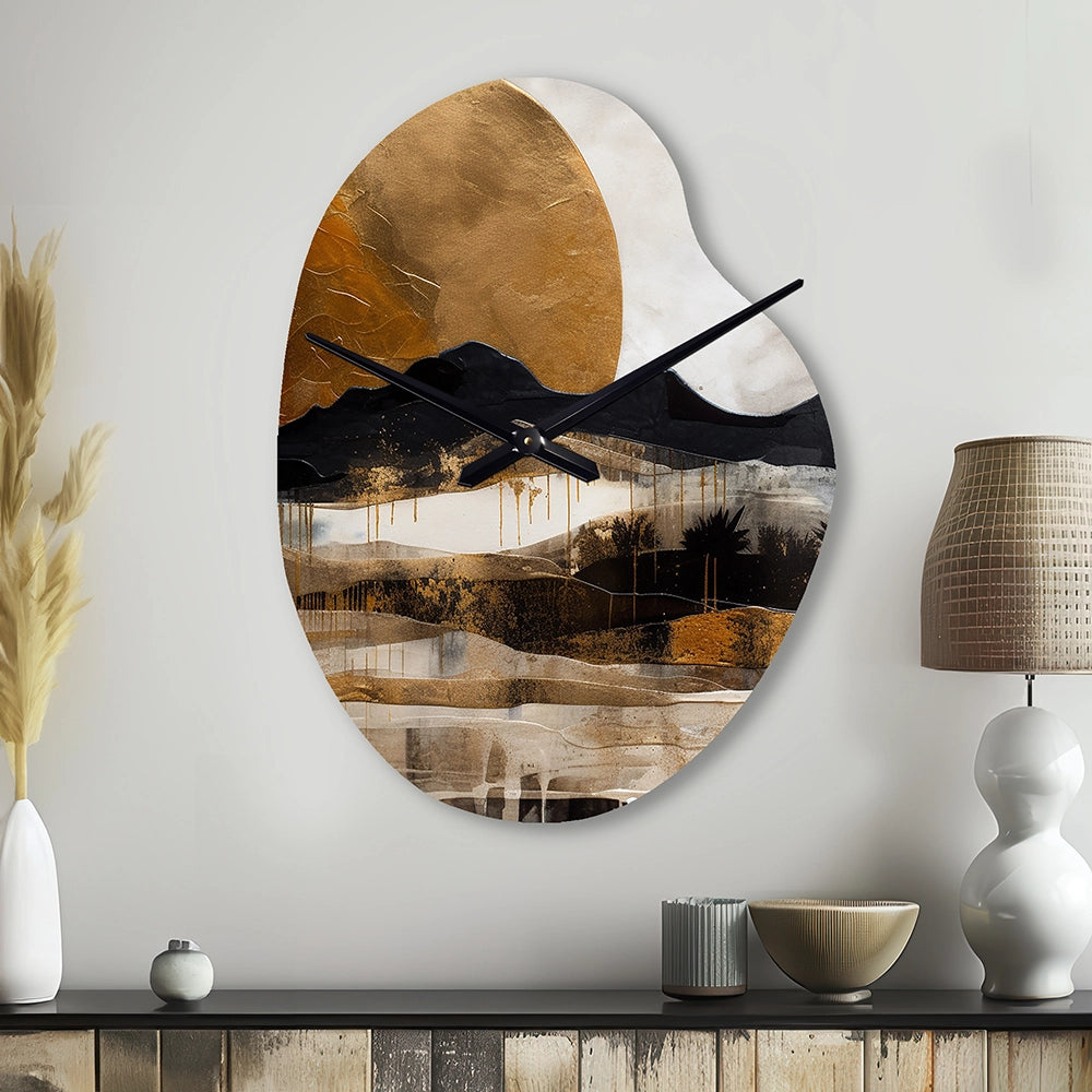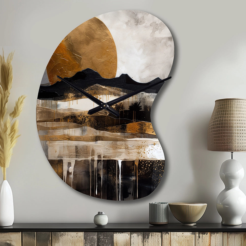 Elevate your space with this Modern asymmetrical metal wall Clock. Our handcrafted metal wall sculptures combine modern design with artistic elegance, creating a striking focal point in any room. This asymmetric metal wall Clock features unique, irregular shapes that bring dynamic movement and depth to your walls. Perfect for Abstract decor, these Gold irregular metal wall sculptures are printed on aluminum panel, with extra gloss ensuring long-lasting beauty. Ideal for living rooms, offices decor, or entrance, this statement piece adds a bold, Abstract touch to any decor.
