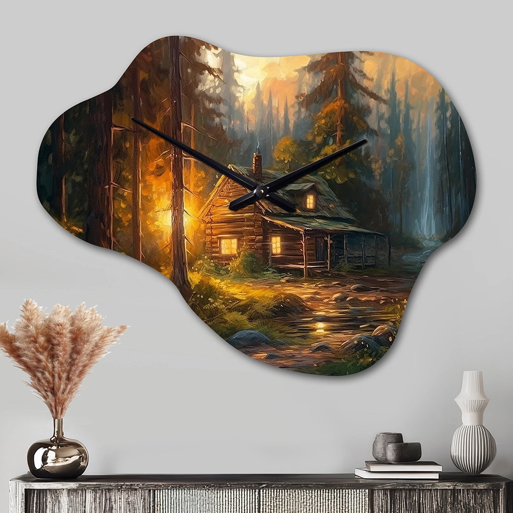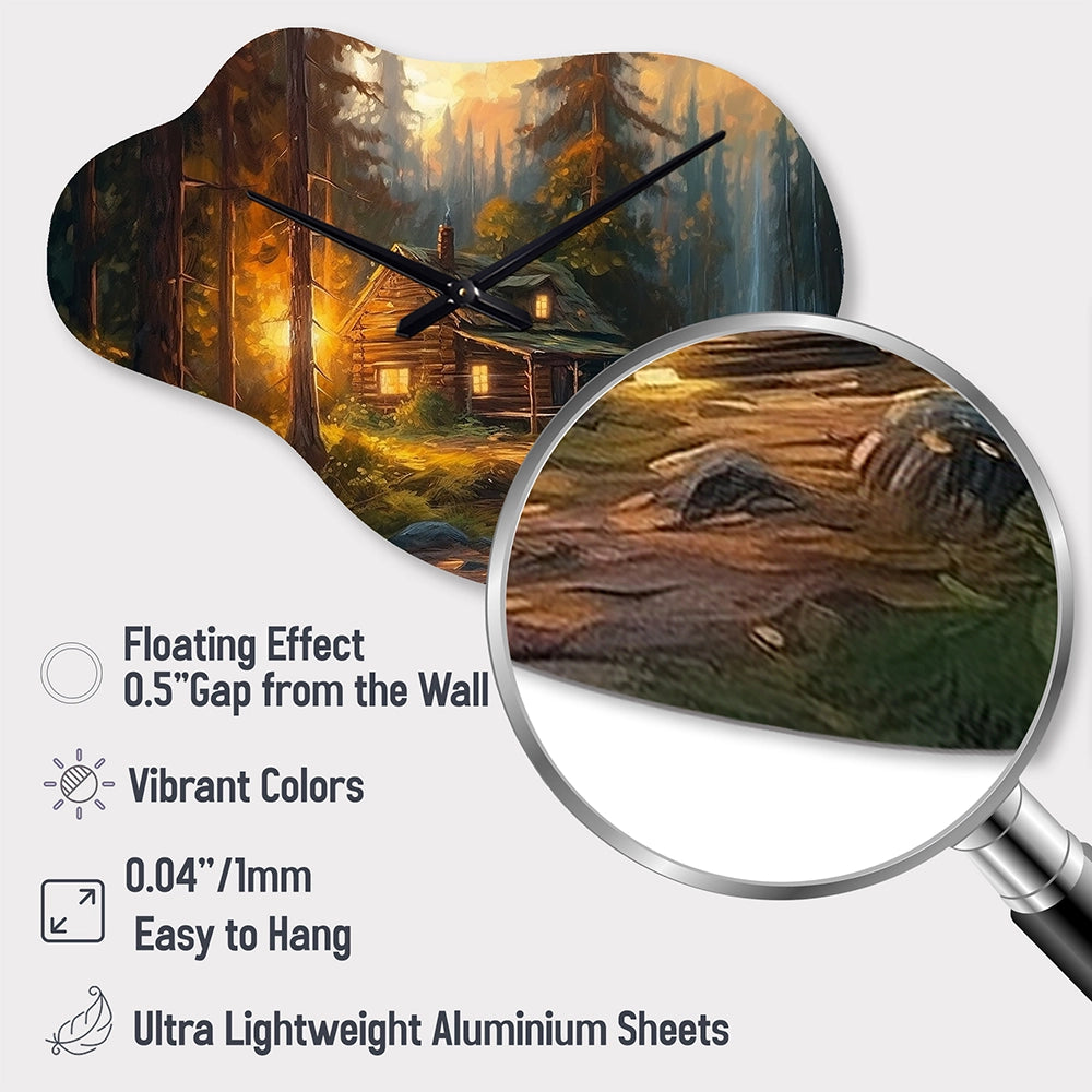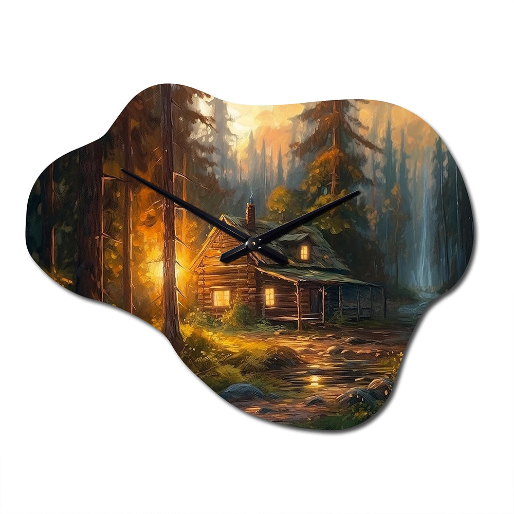 Forest Escape Cabin I - Asymmetric Metal Wall Clock