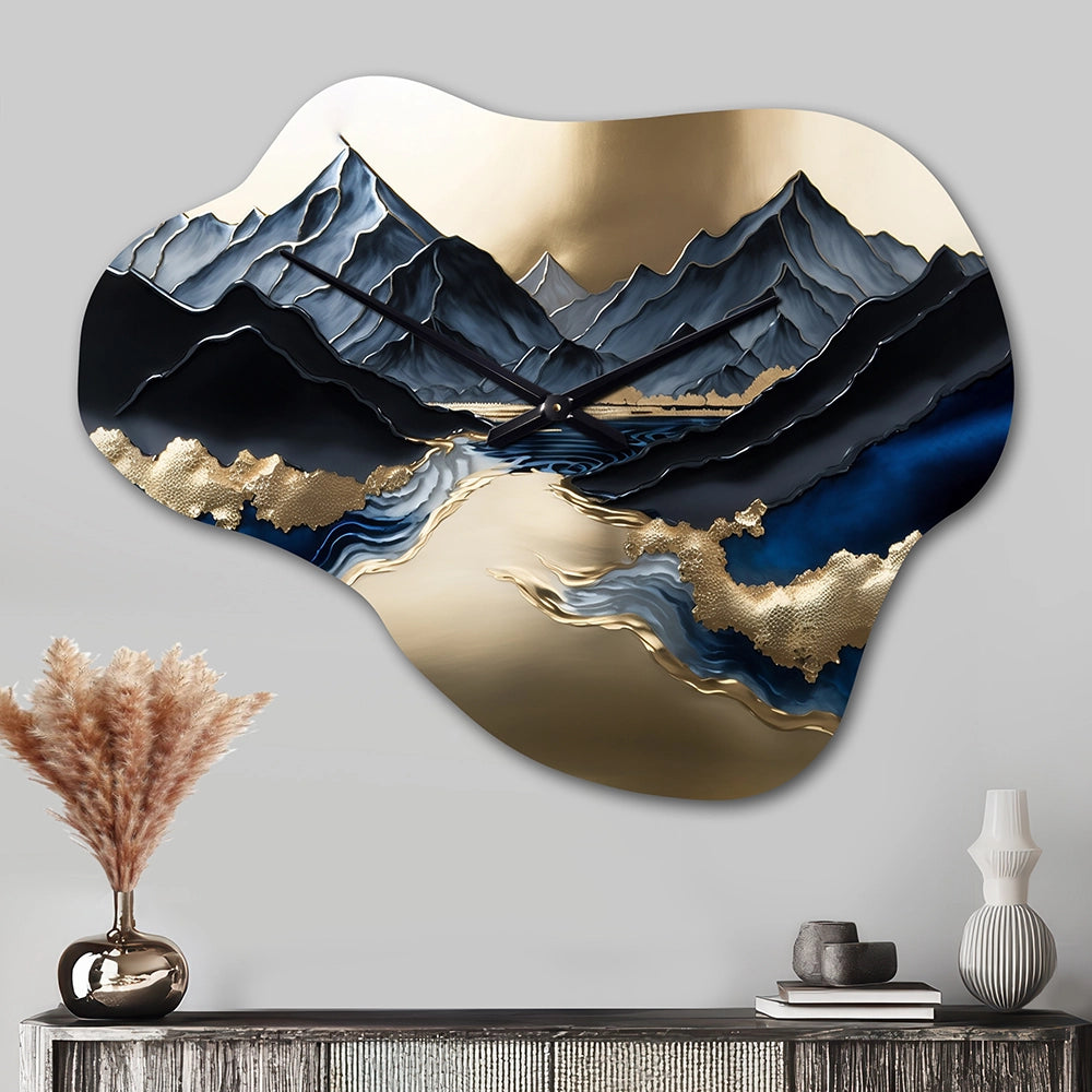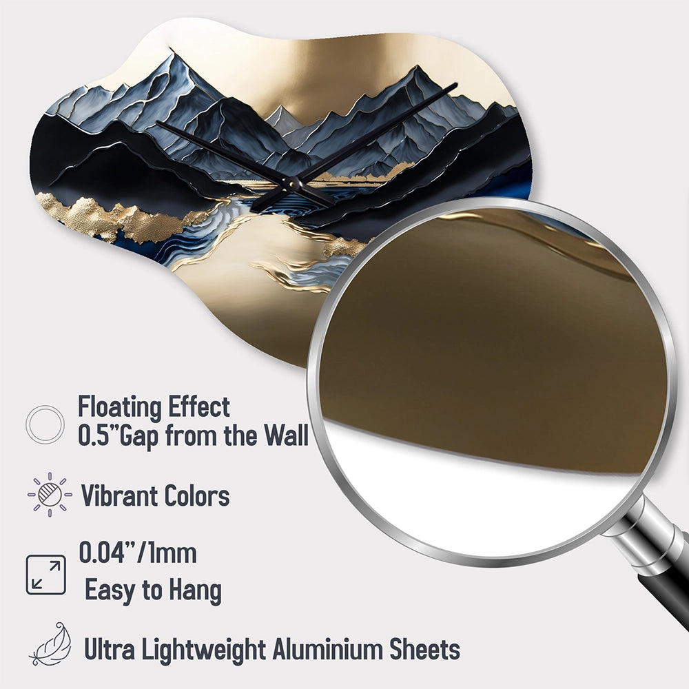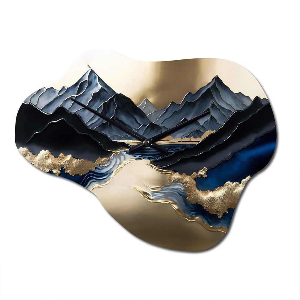 Golden Mountains And River - Asymmetric Metal Wall Clock