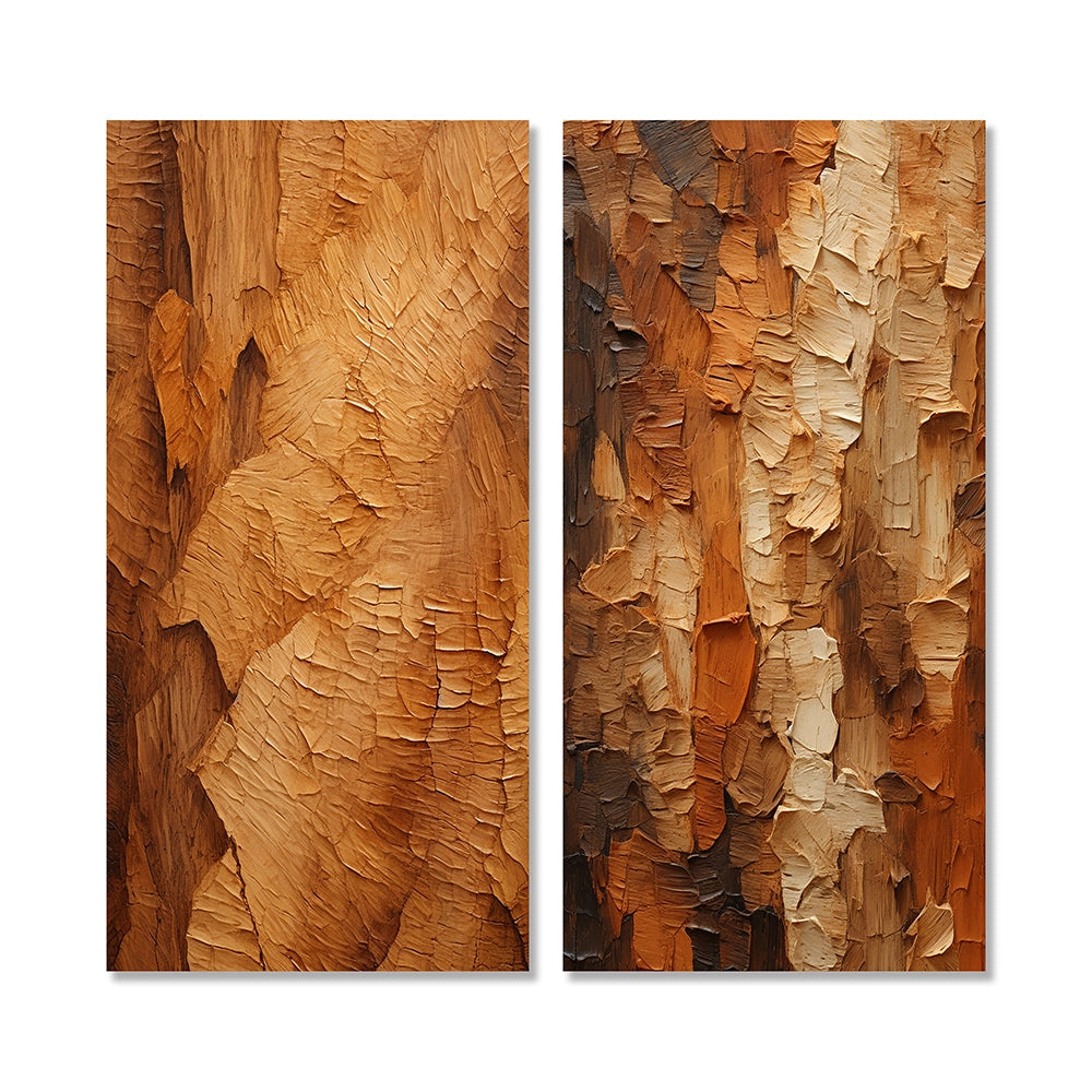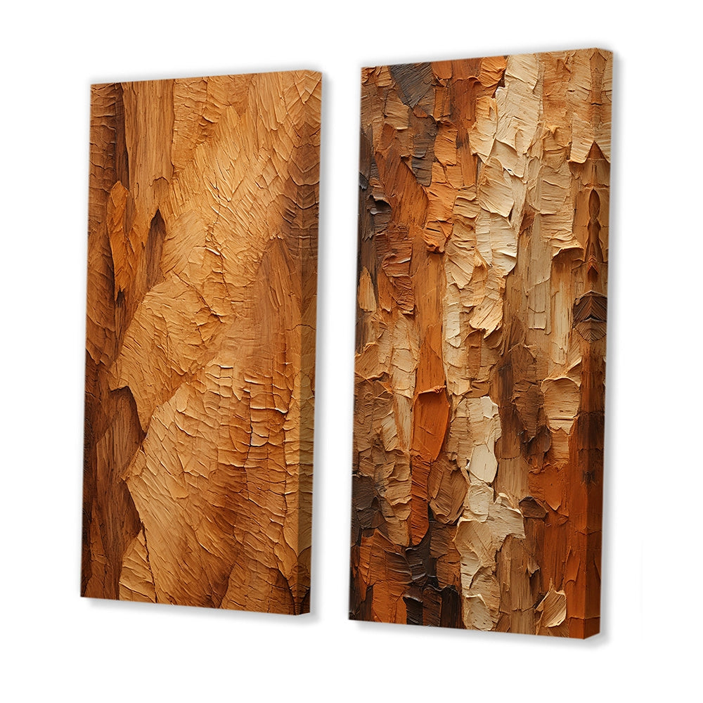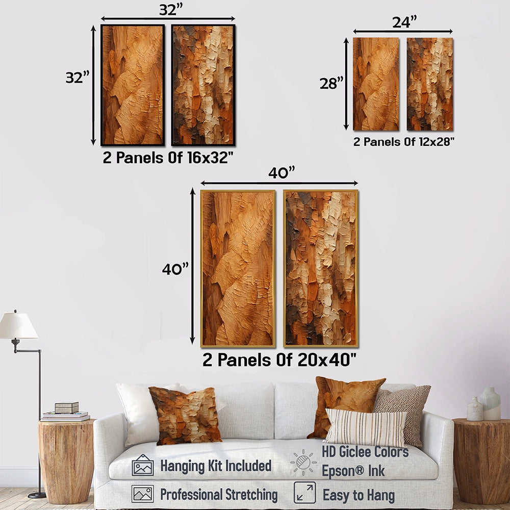 Modern Wall Art Canvas Set - Brown Tree Bark Essence II - 2 Pieces