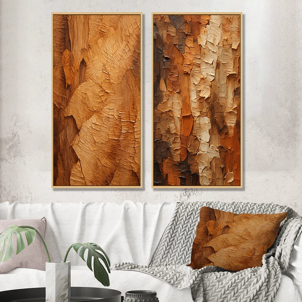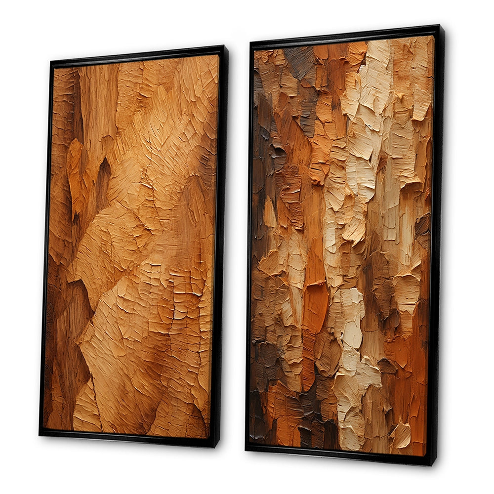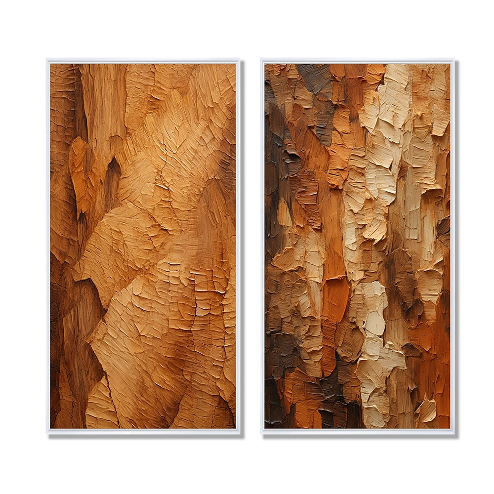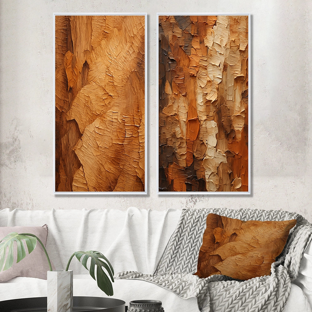 Modern Wall Art Canvas Set - Brown Tree Bark Essence II - 2 Pieces