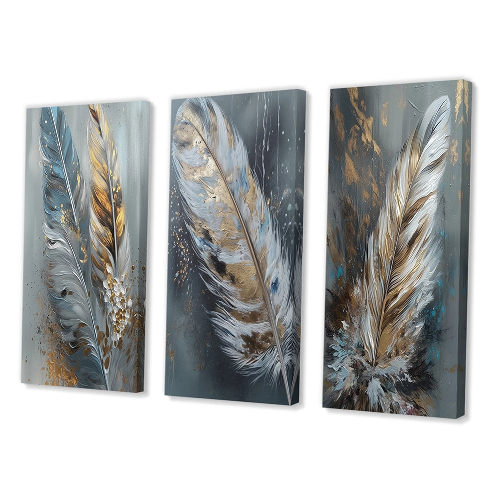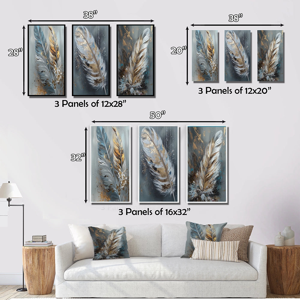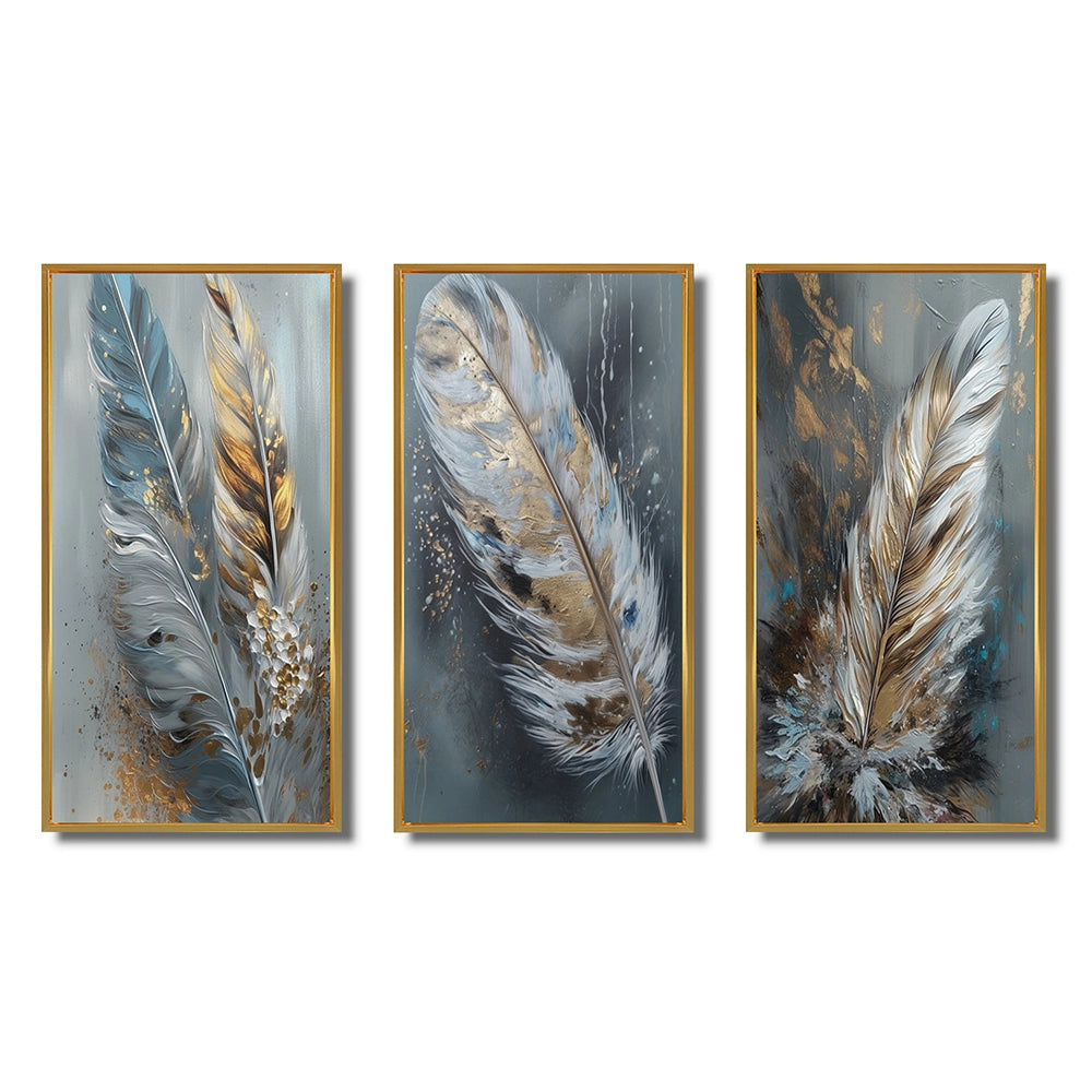This beautiful Gold Feather Wanderlust Collage Set of 3 Wall art is printed on premium quality cotton canvas using the finest fade-resistant ink. With options like Wrapped Canvas and Floater Framed Wall Decor, we offer a versatile range to cater to your unique aesthetic preferences. The Wrapped Canvas Art is stretched tautly over a sturdy wooden frame, giving your artwork a sleek, borderless appearance. For those who desire a touch of elegance and depth, our floater-framed canvas art is the ideal choice. The Canvas set is delicately mounted within a floating frame, creating a striking visual contrast between the artwork and the frame. Our collection offers an array of frame colors to complement your interior design, Ensuring that your wall art set seamlessly integrates with your home or office decor.