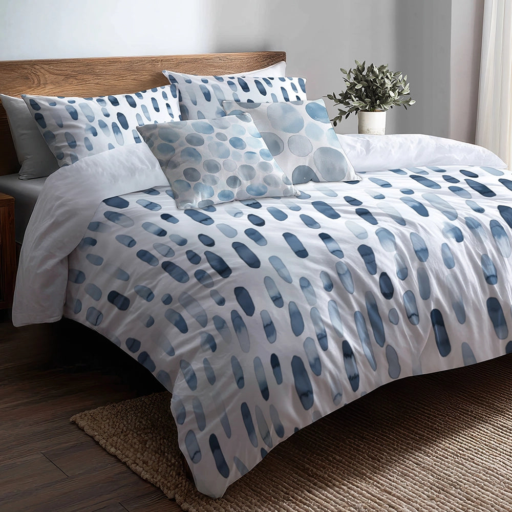 Modern Bedding Set of 5 - Dash Flow Silver Blue Duvet Cover And Throw Pillow Set