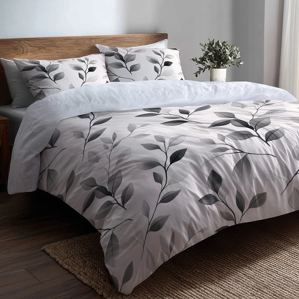 Modern Bedding Set - Soft Charcoal Flowers Duvet Cover And Cushion Set