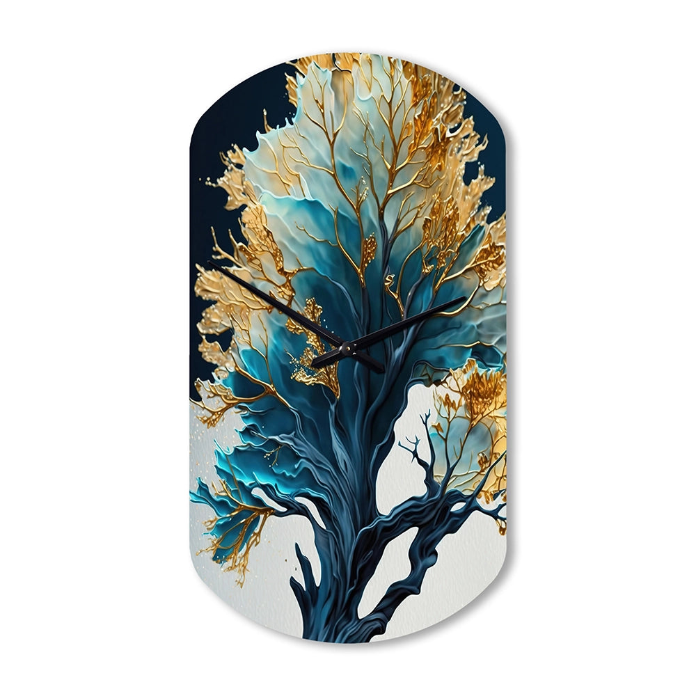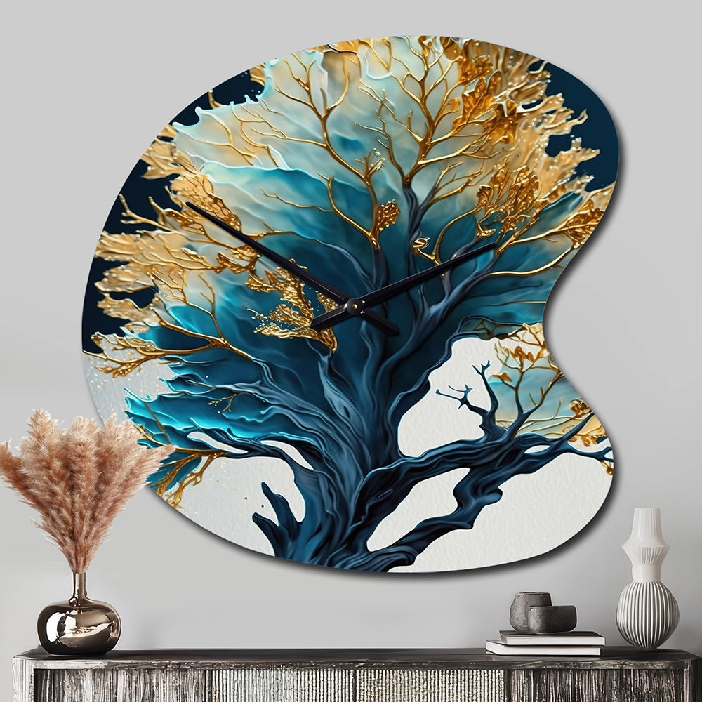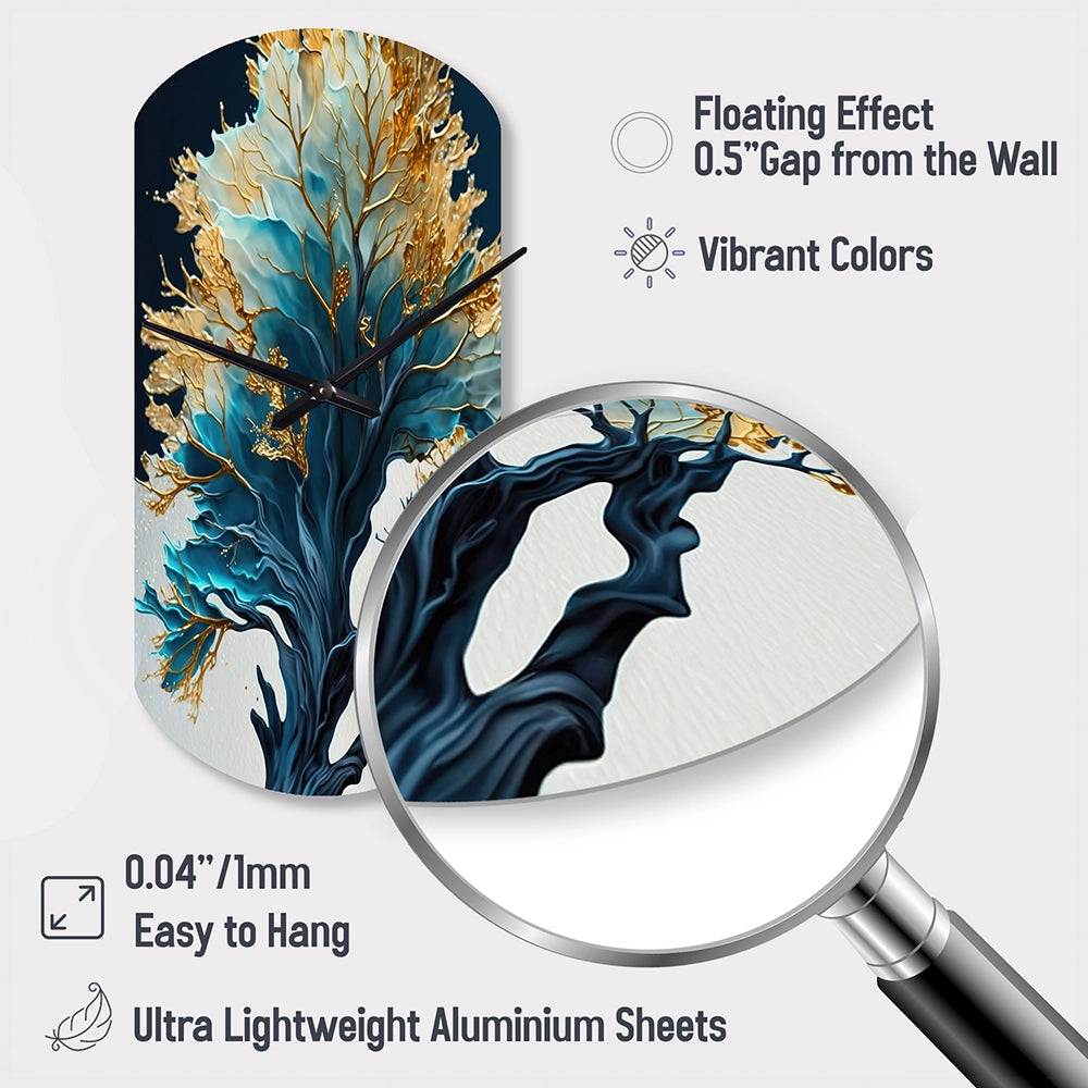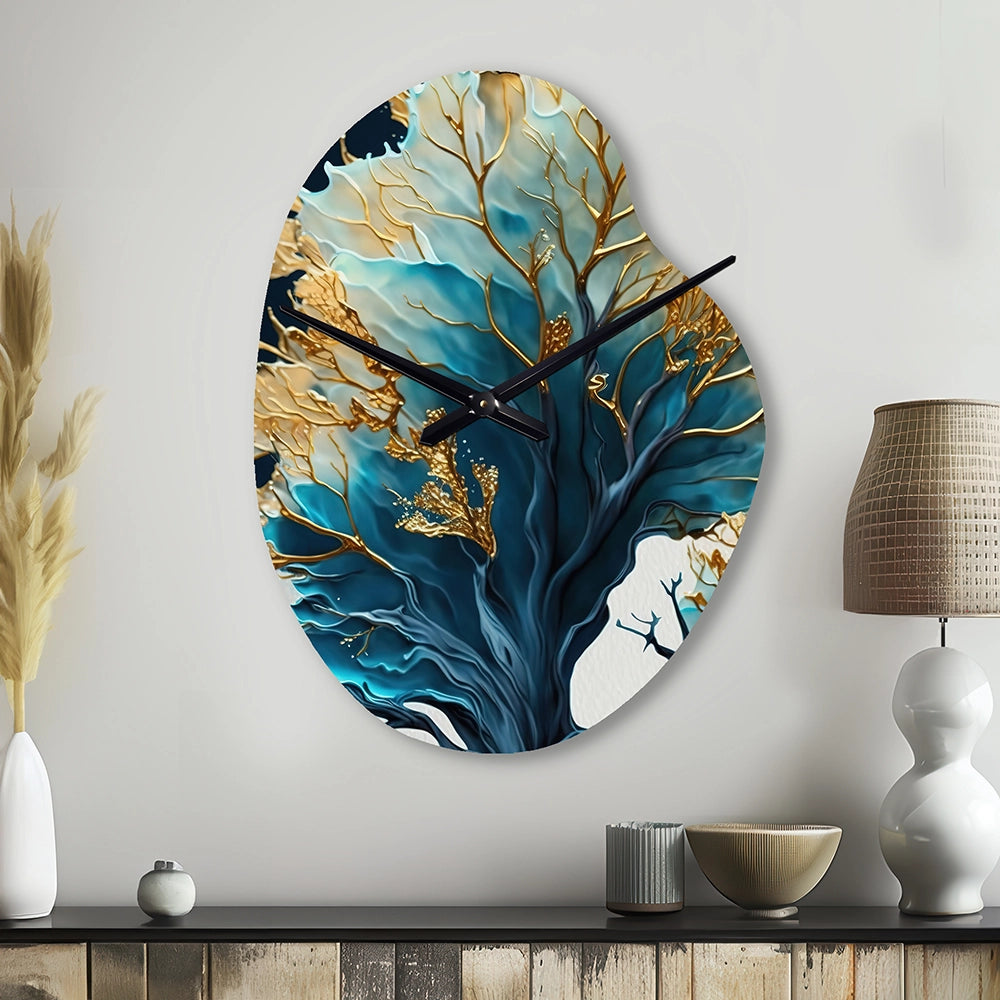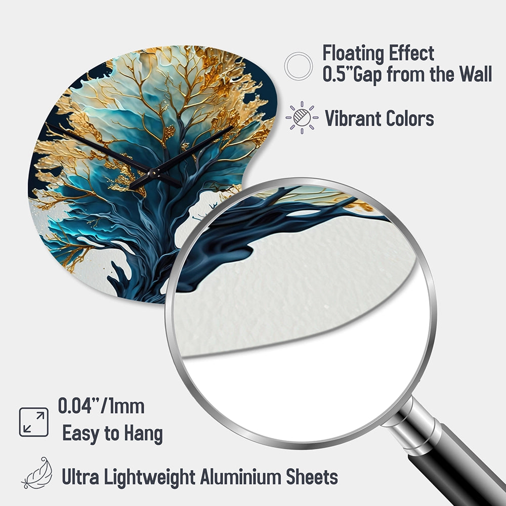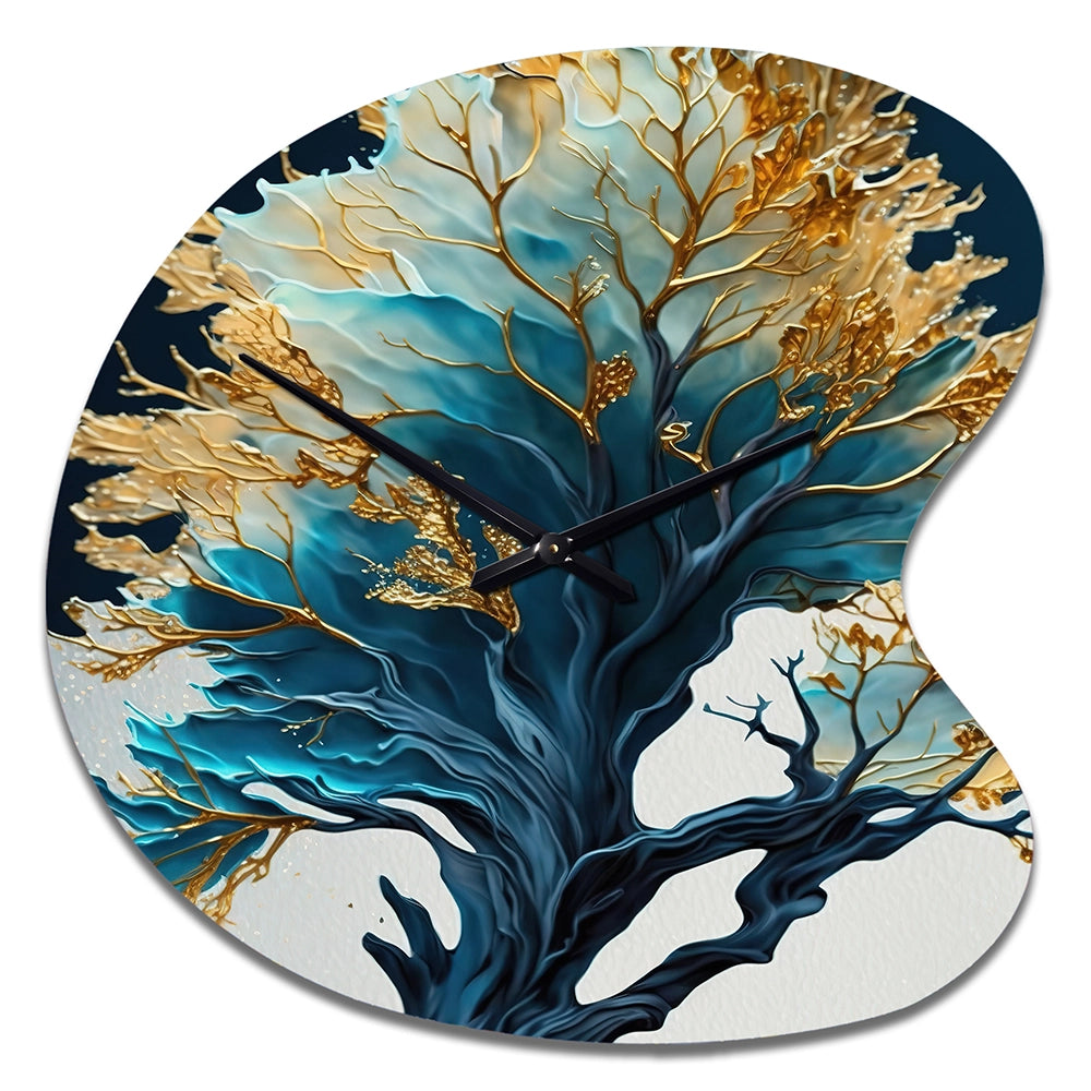 Abstract Blue And Gold Leaves IV - Asymmetric Metal Wall Clock