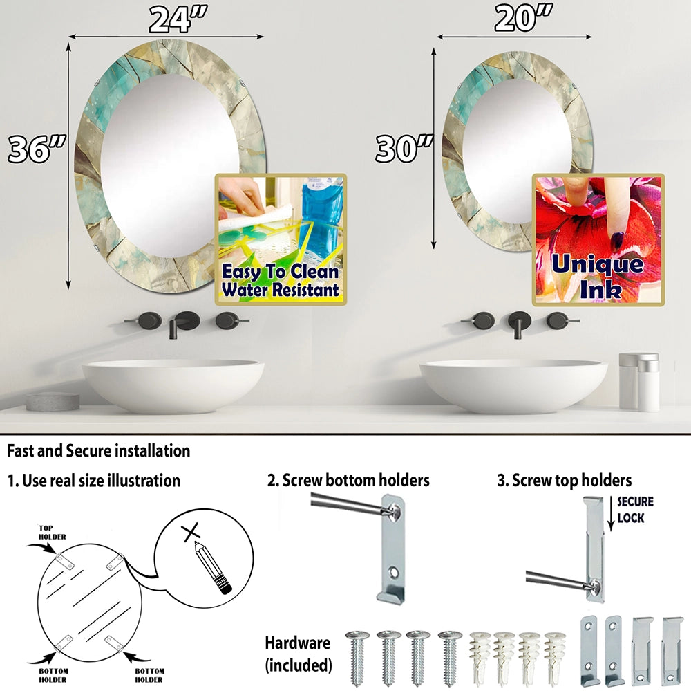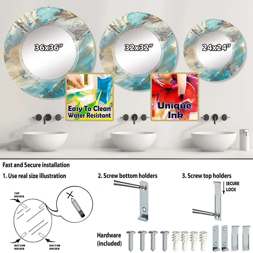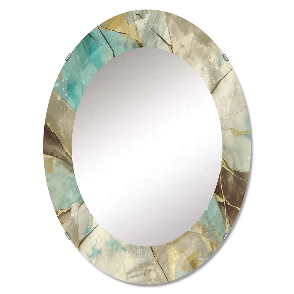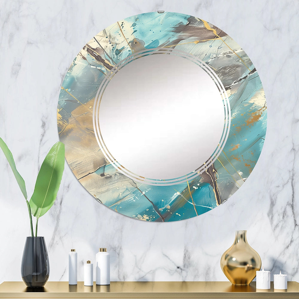 Abstract Large Wall Mirror - Mineral Landscape in Blue, Cream and Brown - Round Mirror