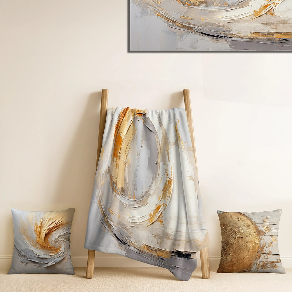 Abstract Spirals Throw Blanket - Abstract gold and white paint spiral III