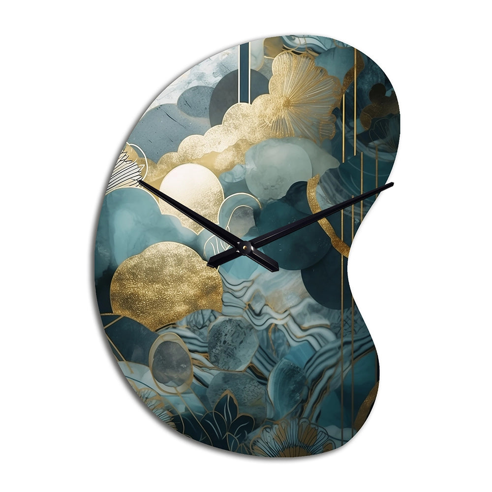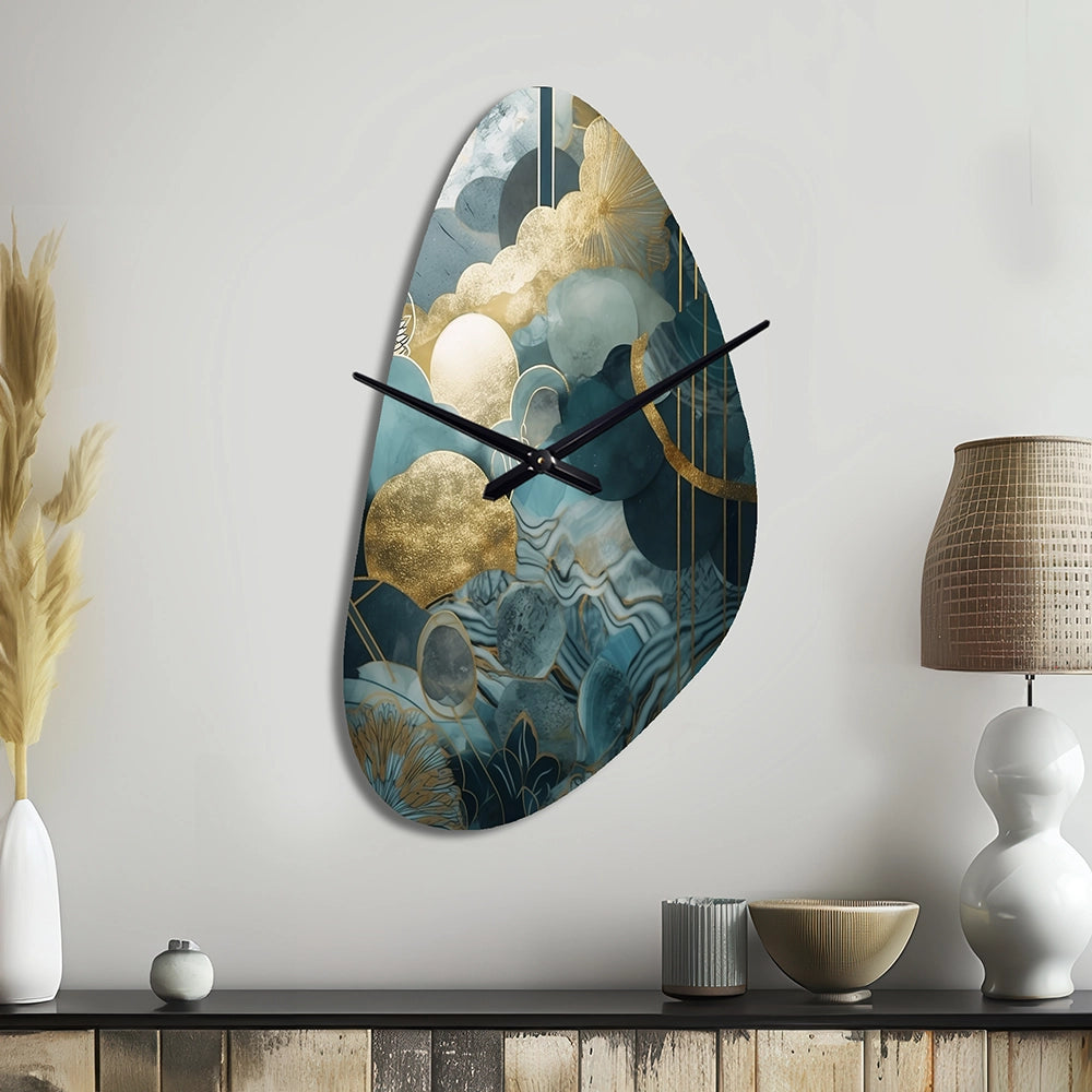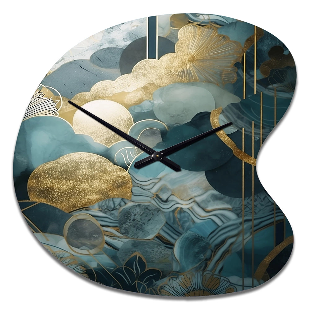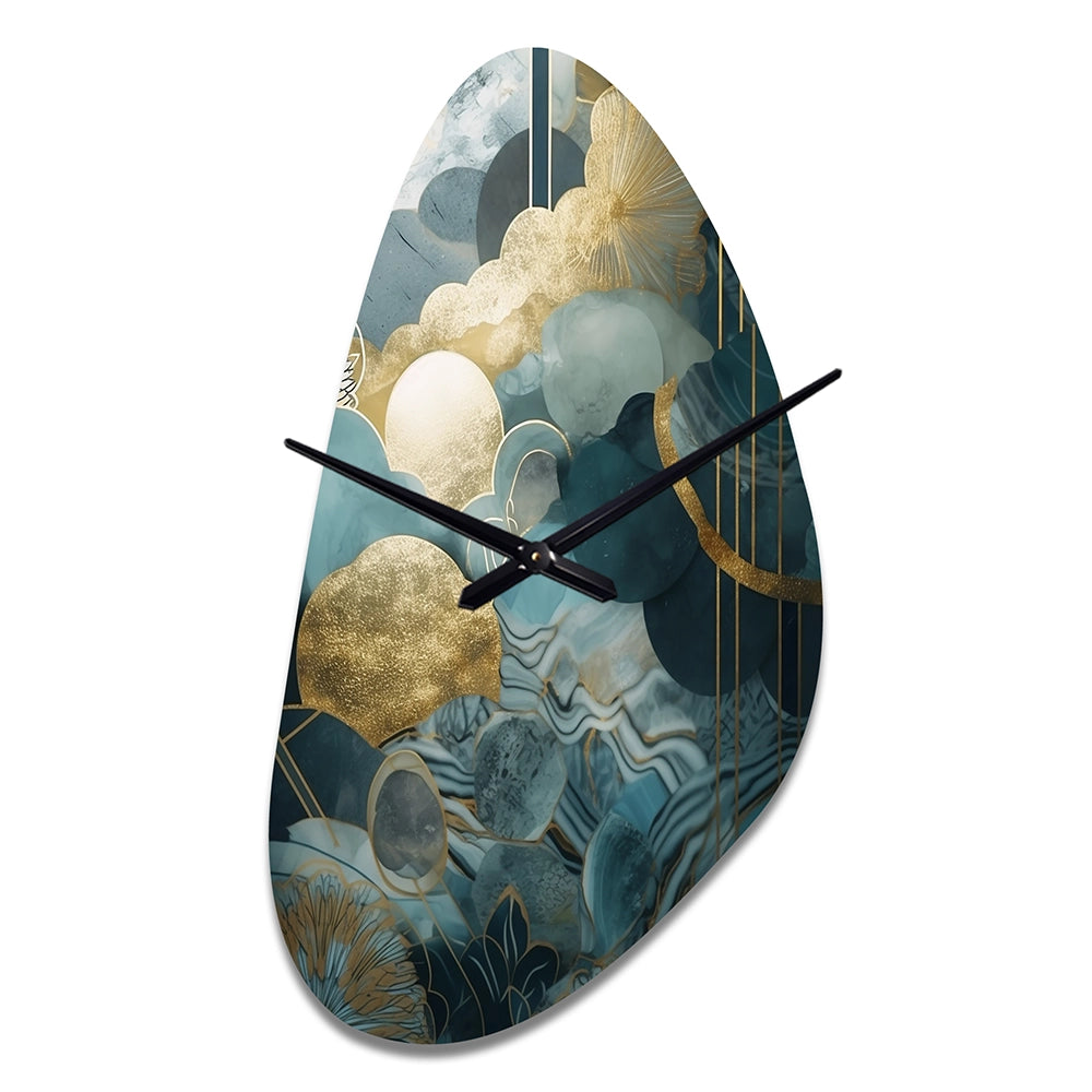 Blue And Gold Abstracted Harmonies Of Nature - Asymmetric Metal Wall Clock