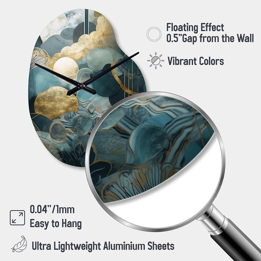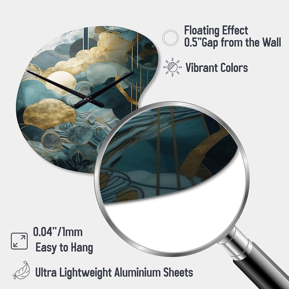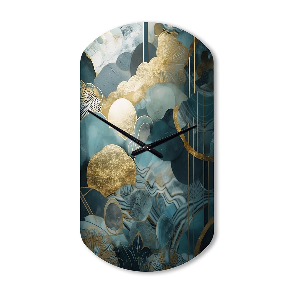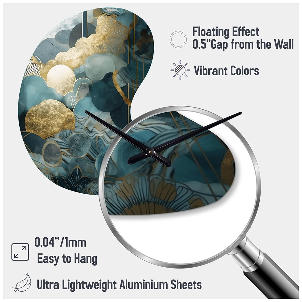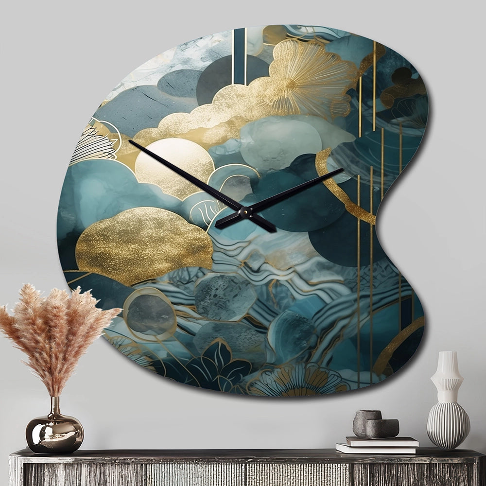 Blue And Gold Abstracted Harmonies Of Nature - Asymmetric Metal Wall Clock