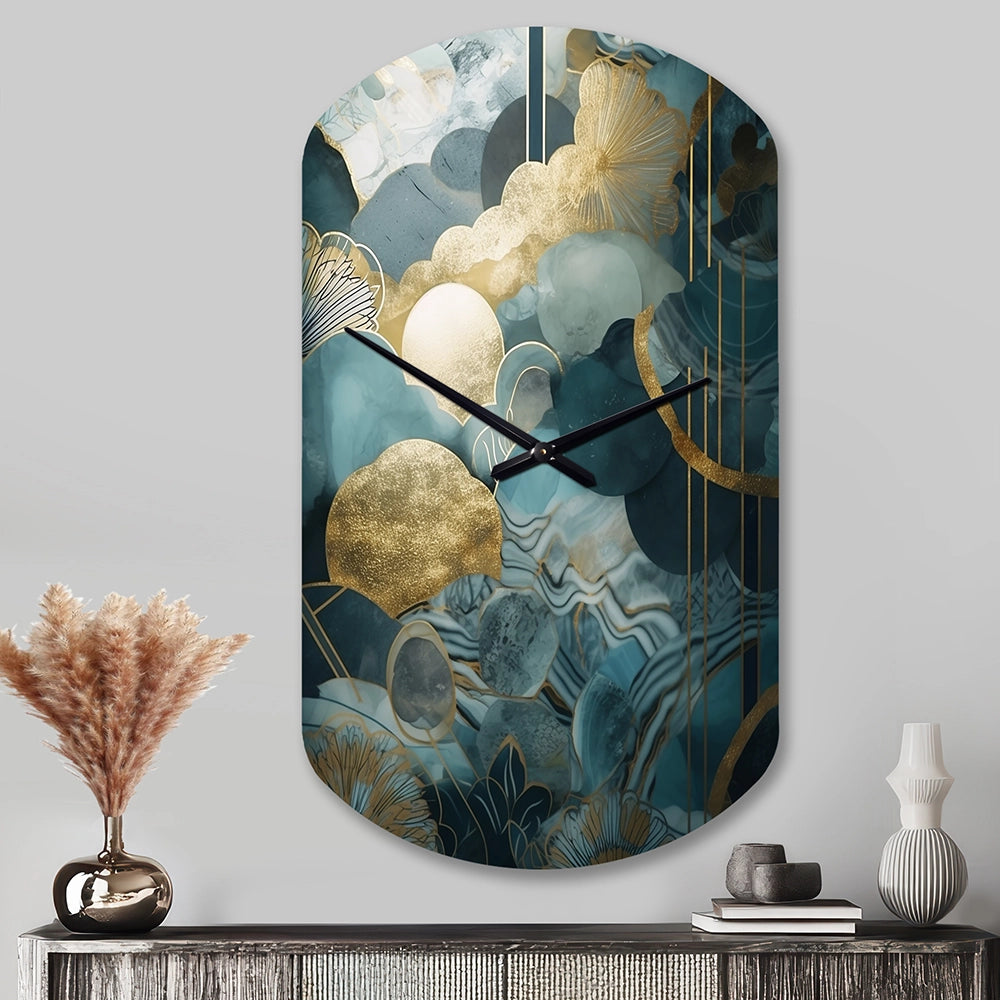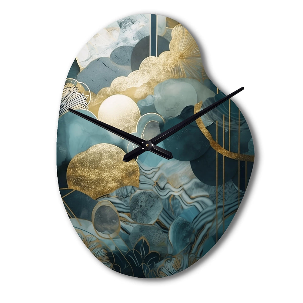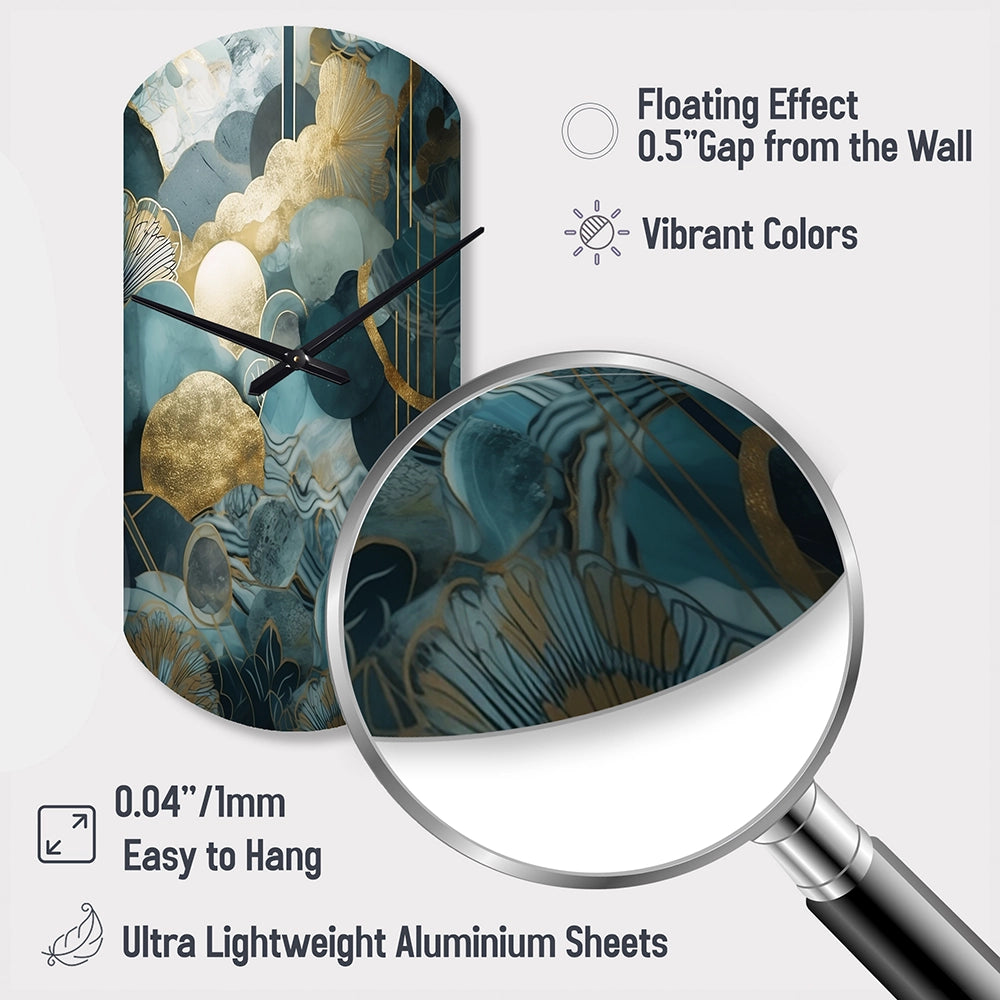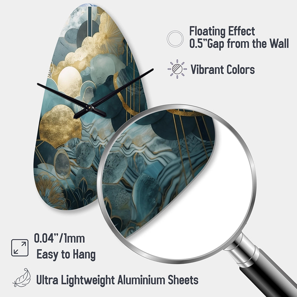Blue And Gold Abstracted Harmonies Of Nature - Asymmetric Metal Wall Clock
