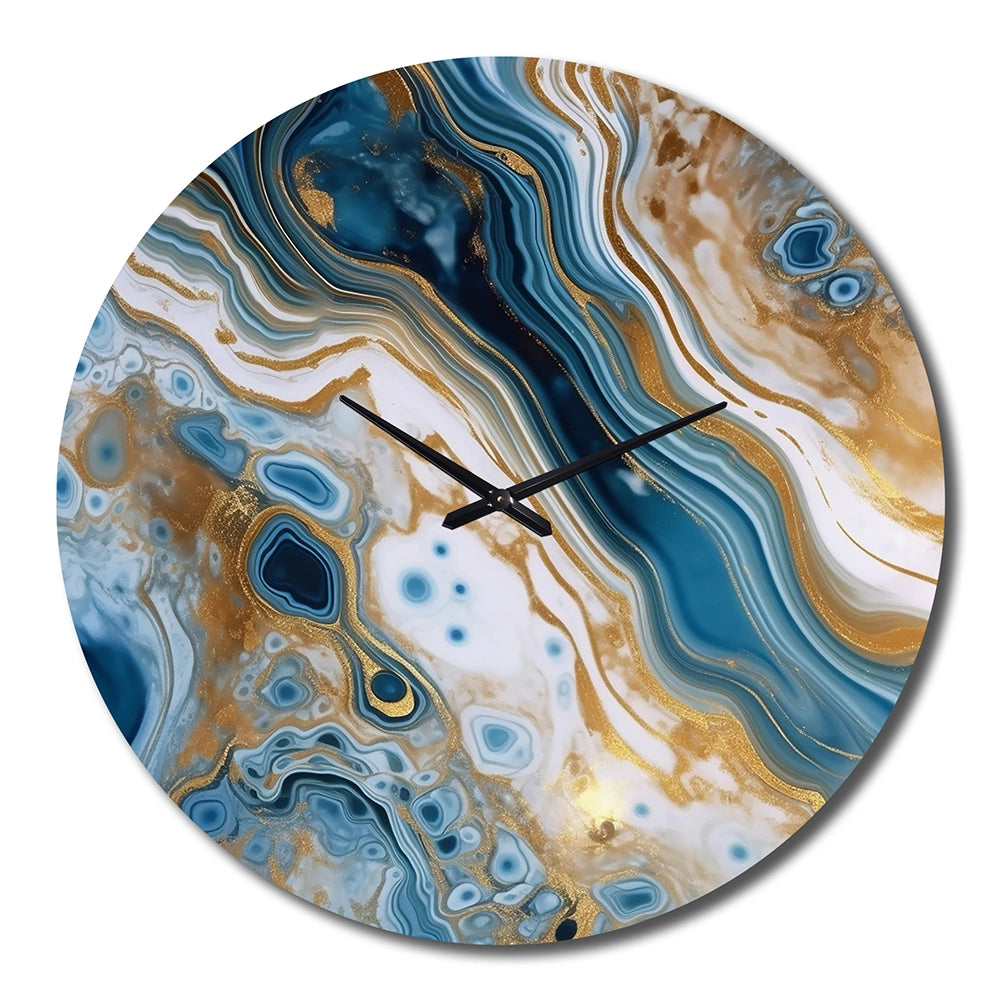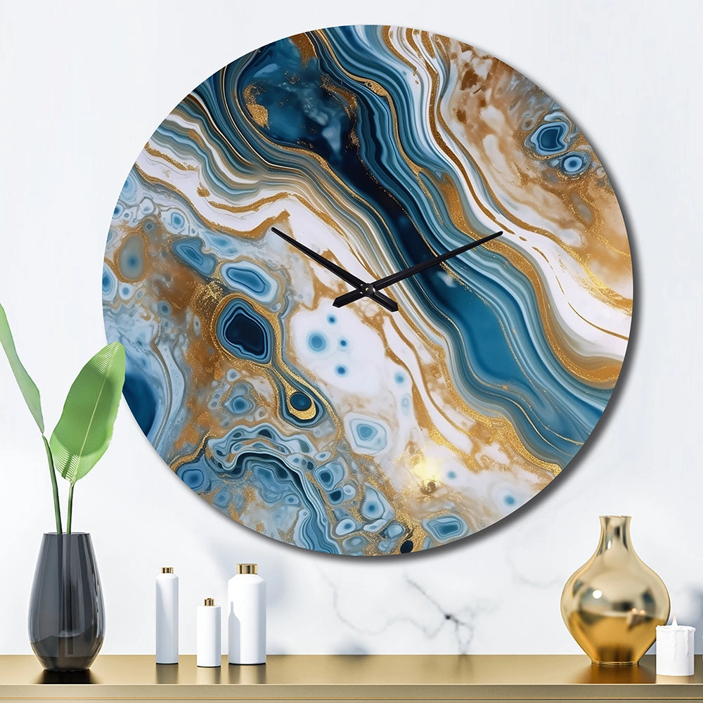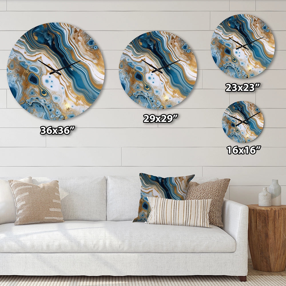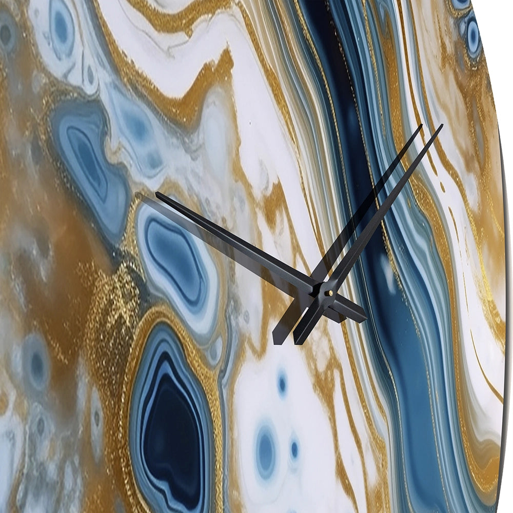 Blue and White Marble Dreams - Abstract Metal Wall Clock