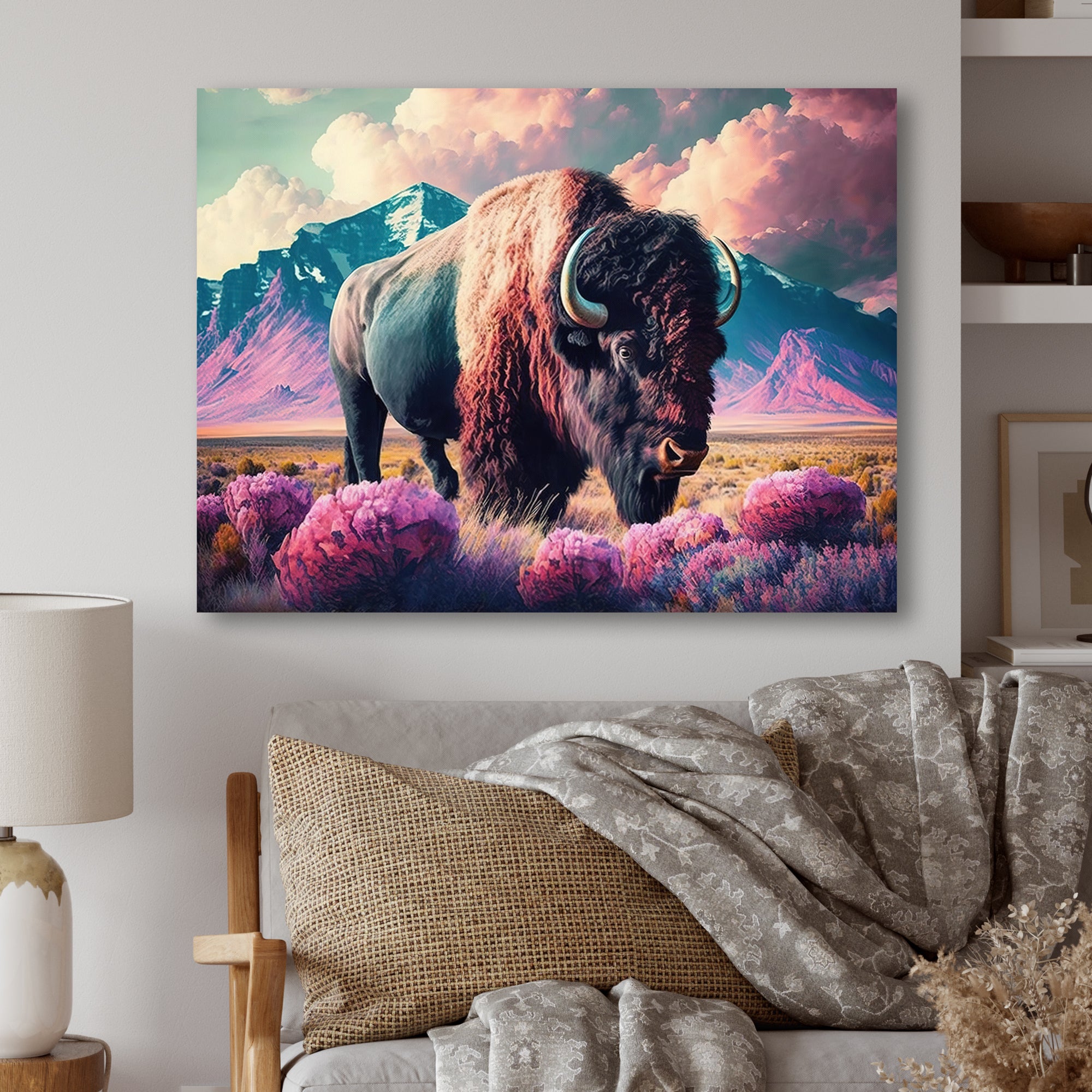 This beautiful Buffalo With Landscape Canvas Art is printed using the highest quality fade-resistant ink on canvas. Every one of our fine art giclee canvas prints is printed on premium quality cotton canvas, using the finest quality inks which will not fade over time. Each giclee print is stretched tightly over a 1-inch wood sub frame for small size prints or a 1.5-inch wood subframe for large size prints ensuring the canvas is taught and does not buckle. This canvas art print is gallery-wrapped (the design continues on the sides), giving it a real art gallery feel. All of our canvas prints are carefully packaged with plastic protection, fragile labeling, and sturdy boxes to ensure safe delivery. Every canvas print arrives ready to hang on the wall, with the hanging kits included.