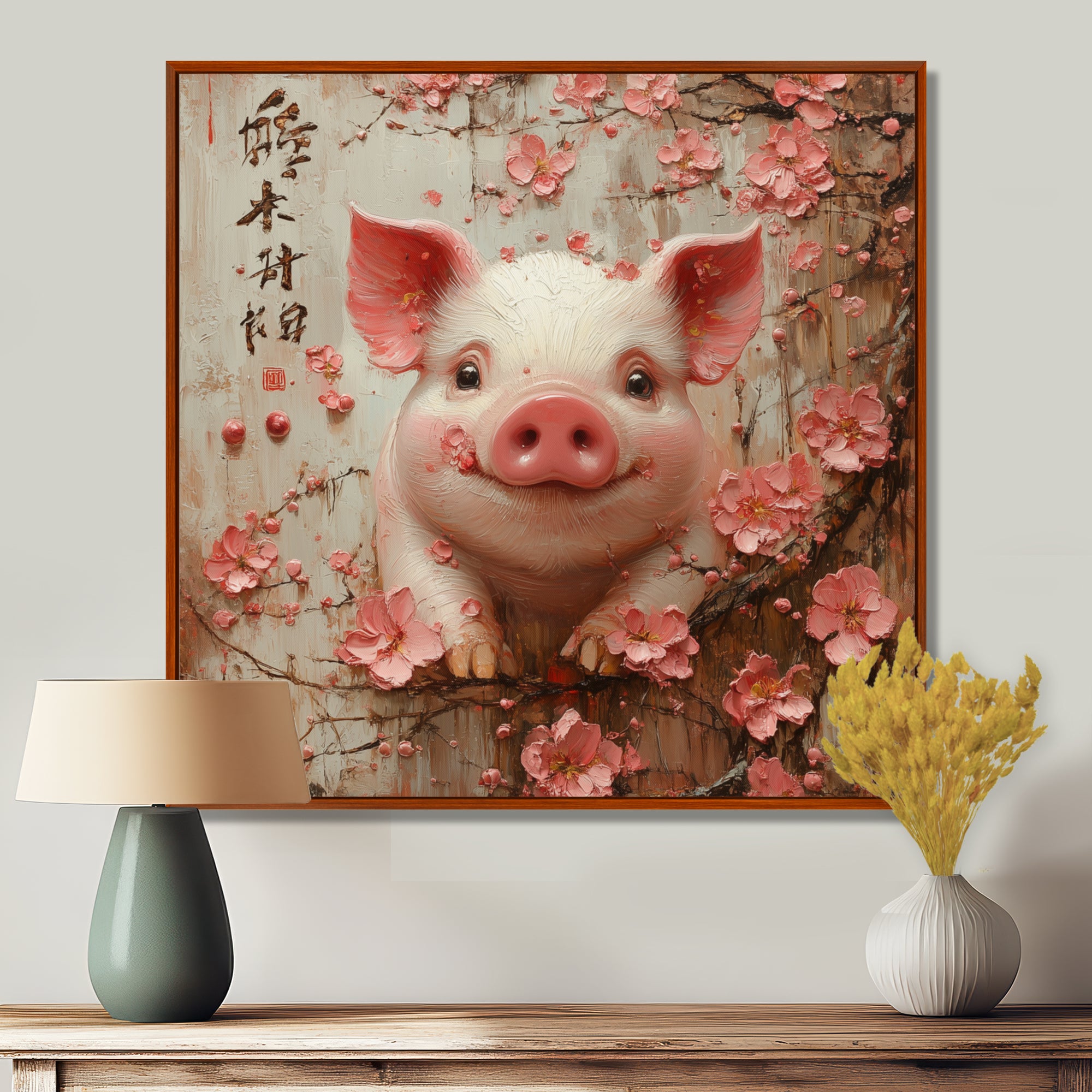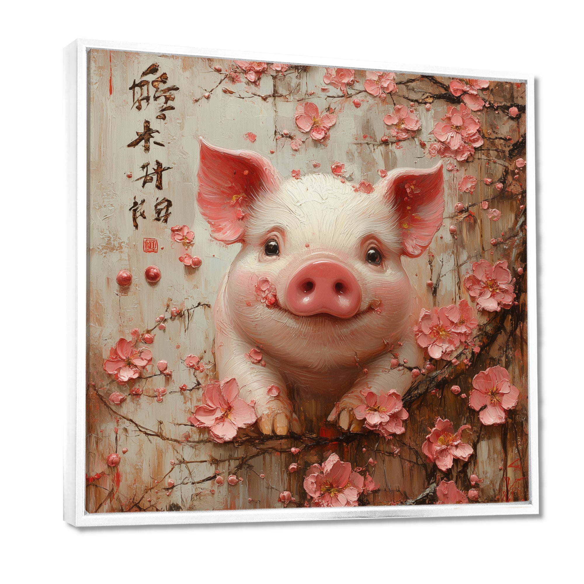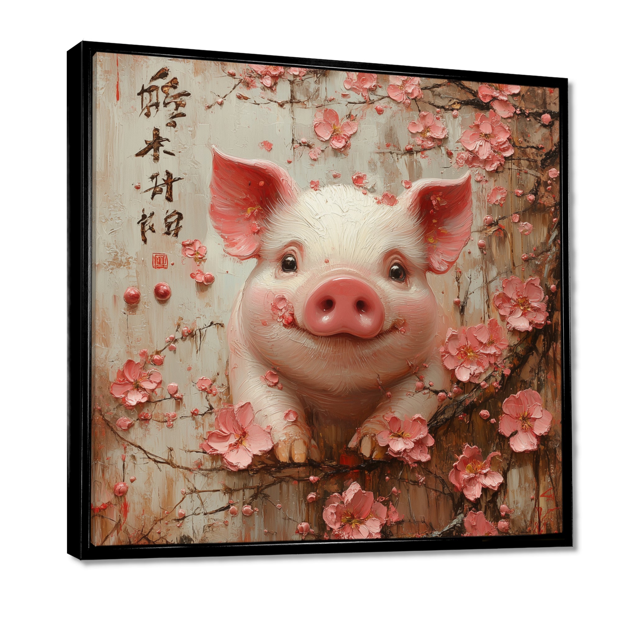 Chinese Pig Joyful Abundance - Pig Canvas Wall Art
