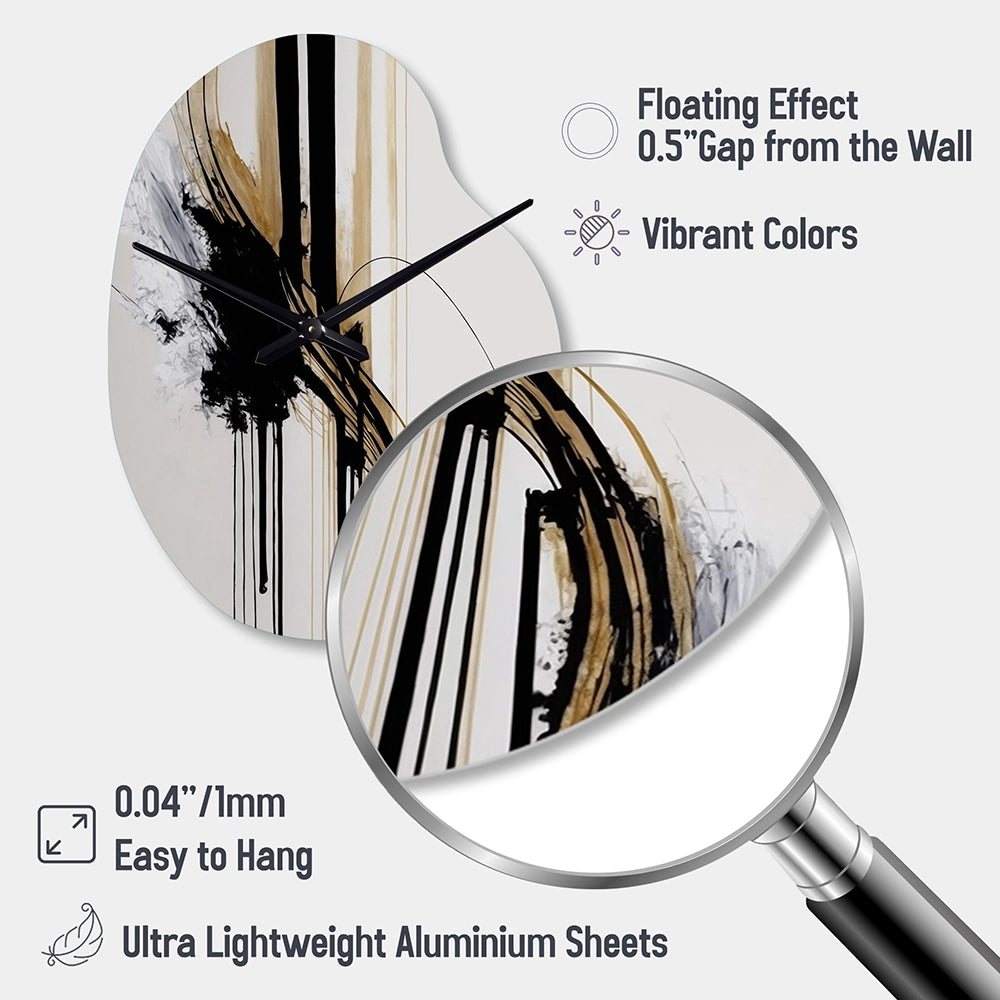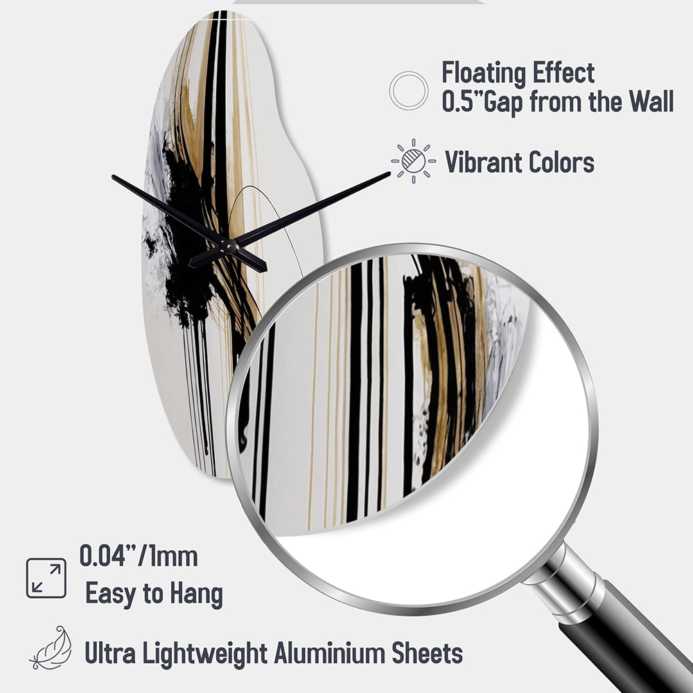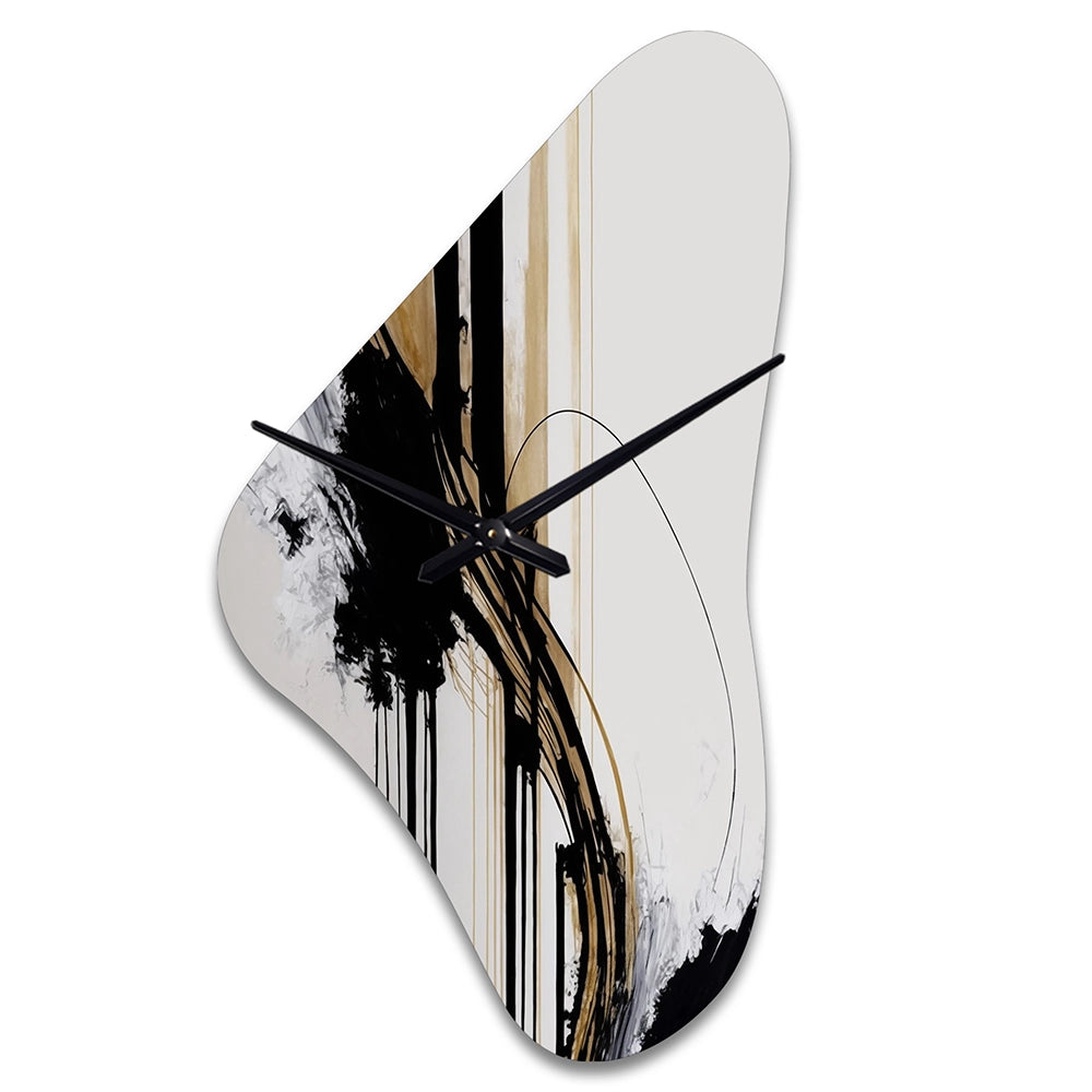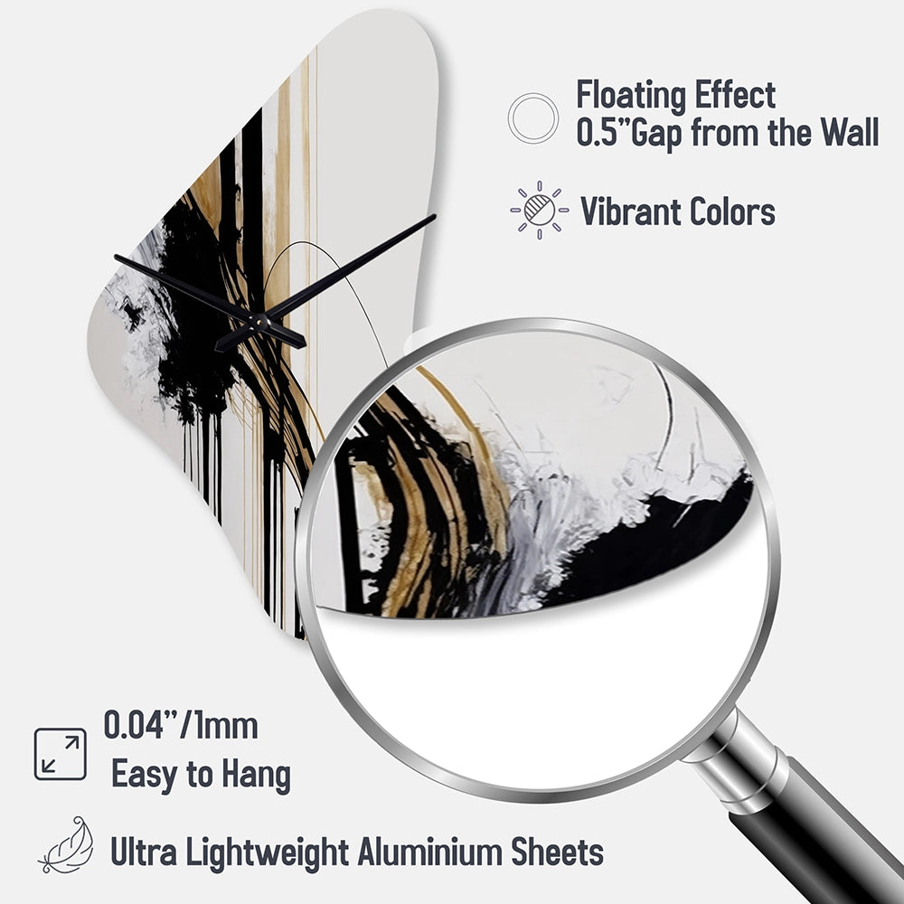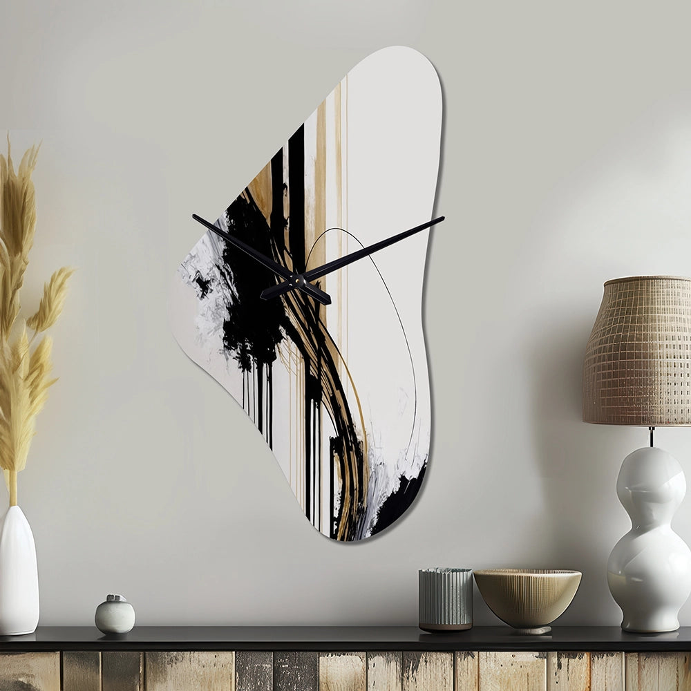 Elevate your space with this Modern asymmetrical metal wall Clock. Our handcrafted metal wall sculptures combine modern design with artistic elegance, creating a striking focal point in any room. This asymmetric metal wall Clock features unique, irregular shapes that bring dynamic movement and depth to your walls. Perfect for Abstract decor, these Black irregular metal wall sculptures are printed on aluminum panel, with extra gloss ensuring long-lasting beauty. Ideal for living rooms, offices decor, or entrance, this statement piece adds a bold, Abstract touch to any decor.