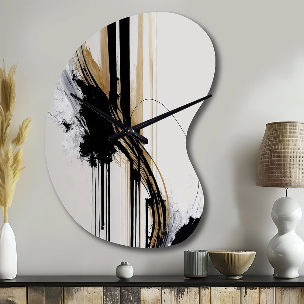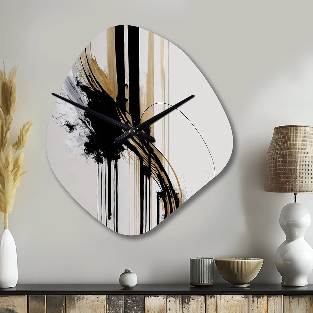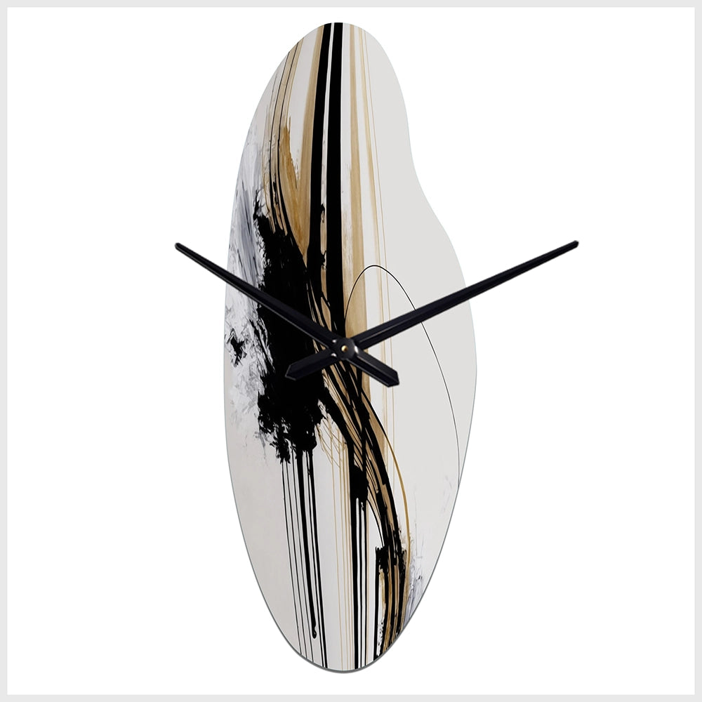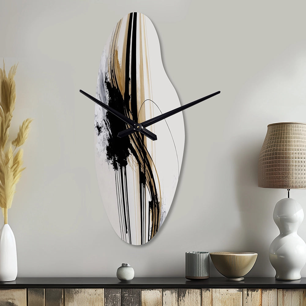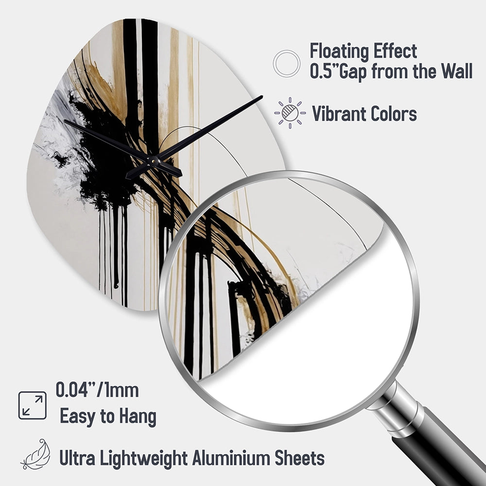 Elevate your space with this Modern asymmetrical metal wall Clock. Our handcrafted metal wall sculptures combine modern design with artistic elegance, creating a striking focal point in any room. This asymmetric metal wall Clock features unique, irregular shapes that bring dynamic movement and depth to your walls. Perfect for Abstract decor, these Black irregular metal wall sculptures are printed on aluminum panel, with extra gloss ensuring long-lasting beauty. Ideal for living rooms, offices decor, or entrance, this statement piece adds a bold, Abstract touch to any decor.