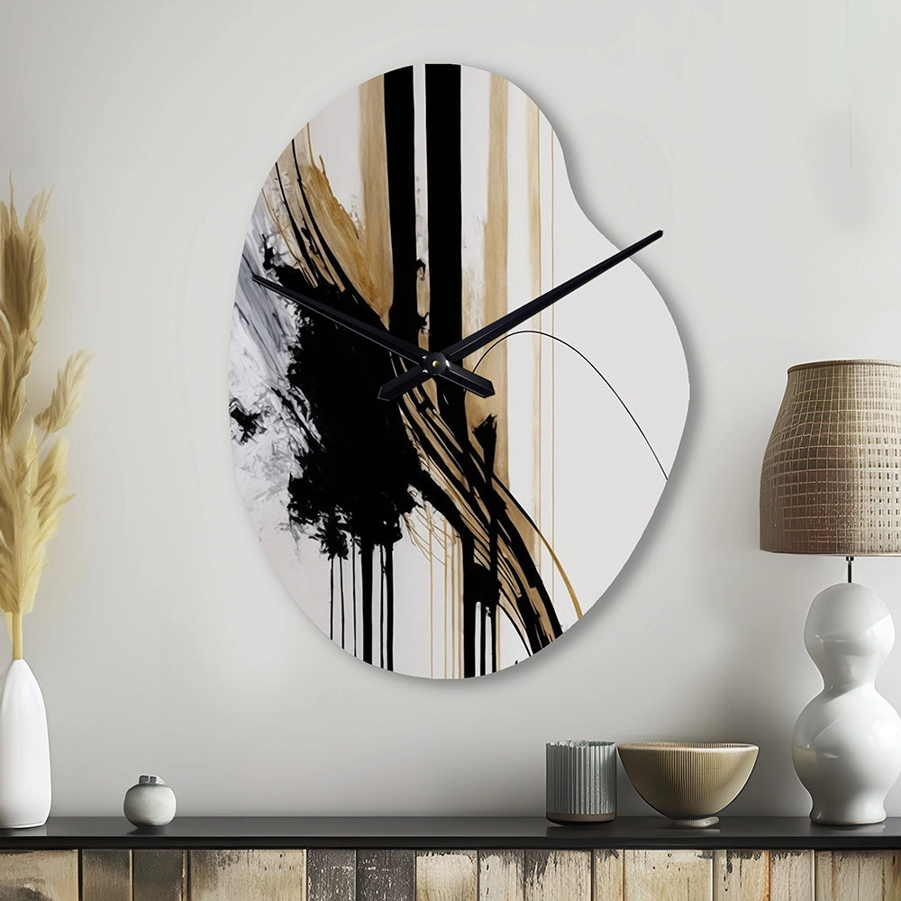 Golden Minimalist Abstract II - Asymmetric Metal Wall Clock