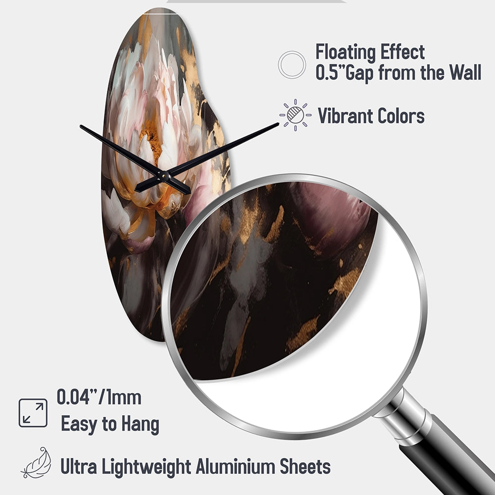Marble Pink Gold Peony Flower V - Asymmetric Metal Wall Clock