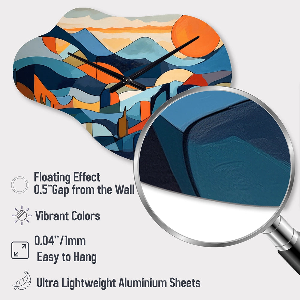 Elevate your space with this Modern asymmetrical metal wall Clock. Our handcrafted metal wall sculptures combine modern design with artistic elegance, creating a striking focal point in any room. This asymmetric metal wall Clock features unique, irregular shapes that bring dynamic movement and depth to your walls. Perfect for Abstract decor, these Blue irregular metal wall sculptures are printed on aluminum panel, with extra gloss ensuring long-lasting beauty. Ideal for living rooms, offices decor, or entrance, this statement piece adds a bold, Abstract touch to any decor.