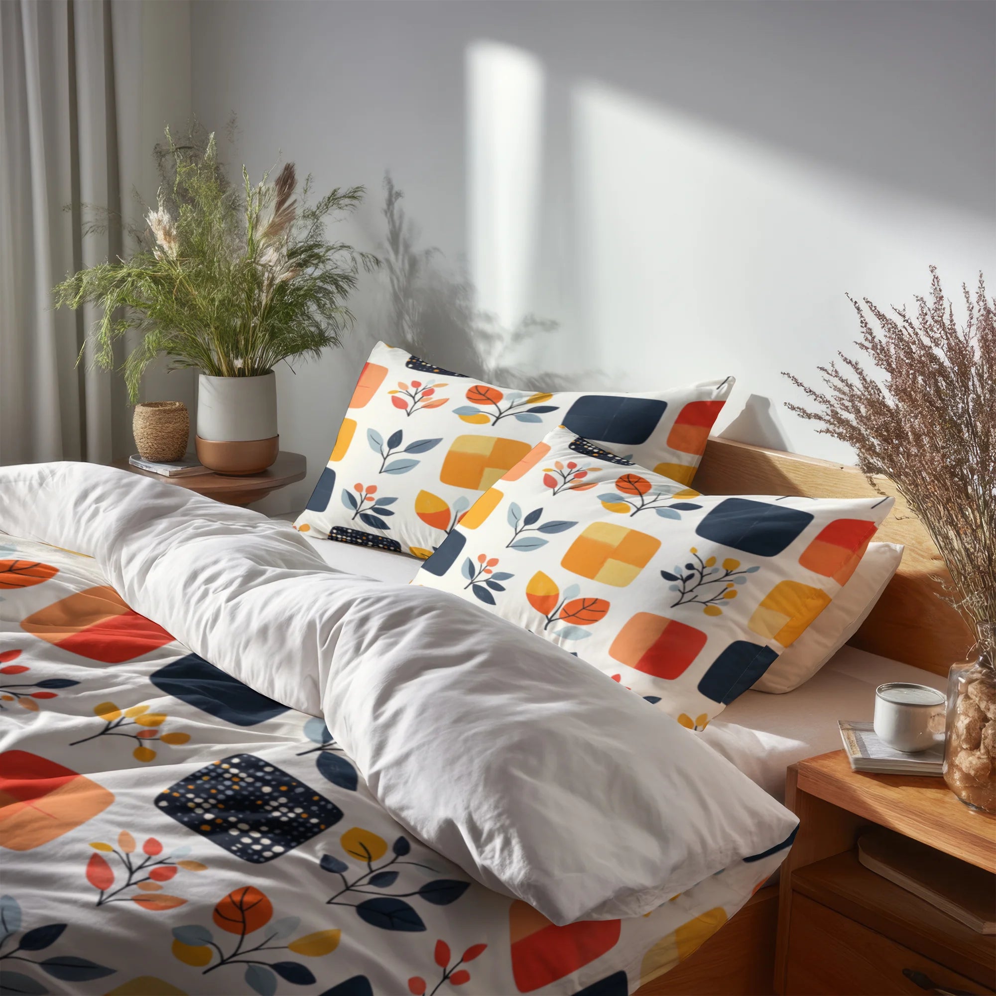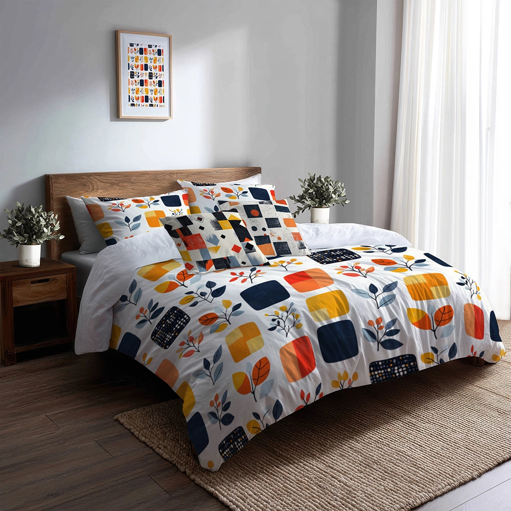 Modern Bedding Set of 5 - Minimal Quilt Duvet Cover And Throw Pillow Set
