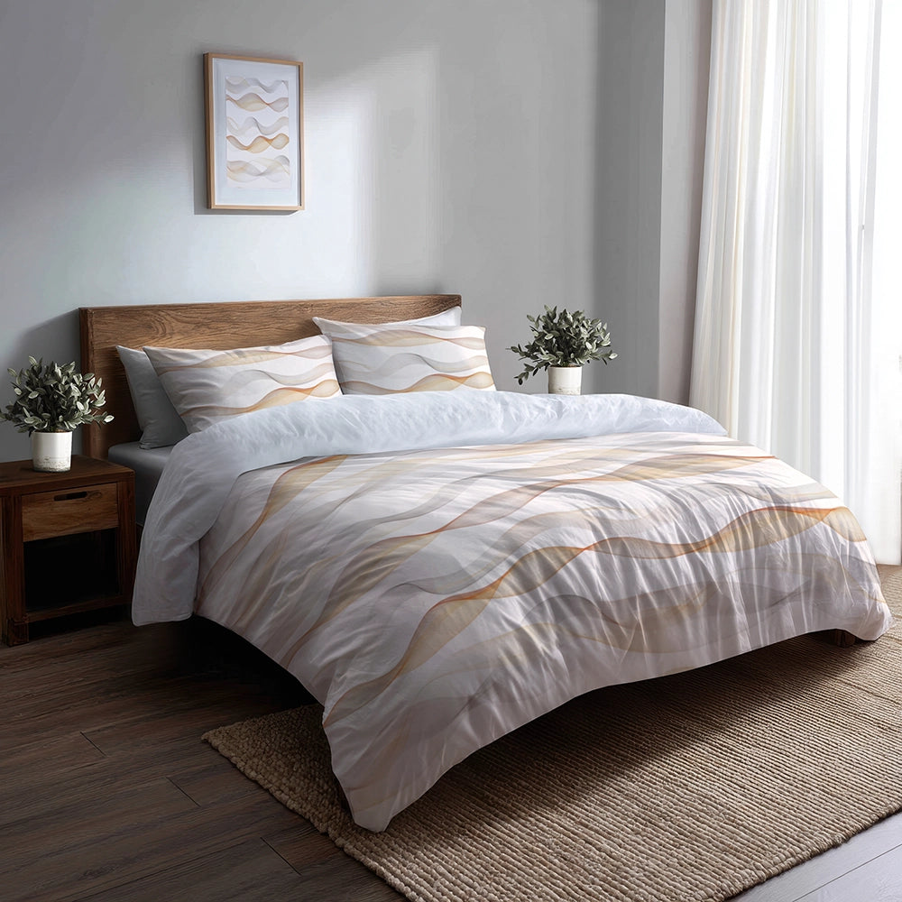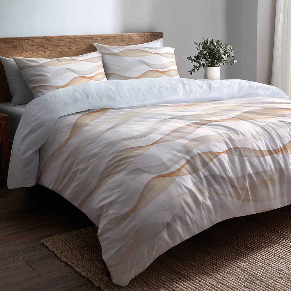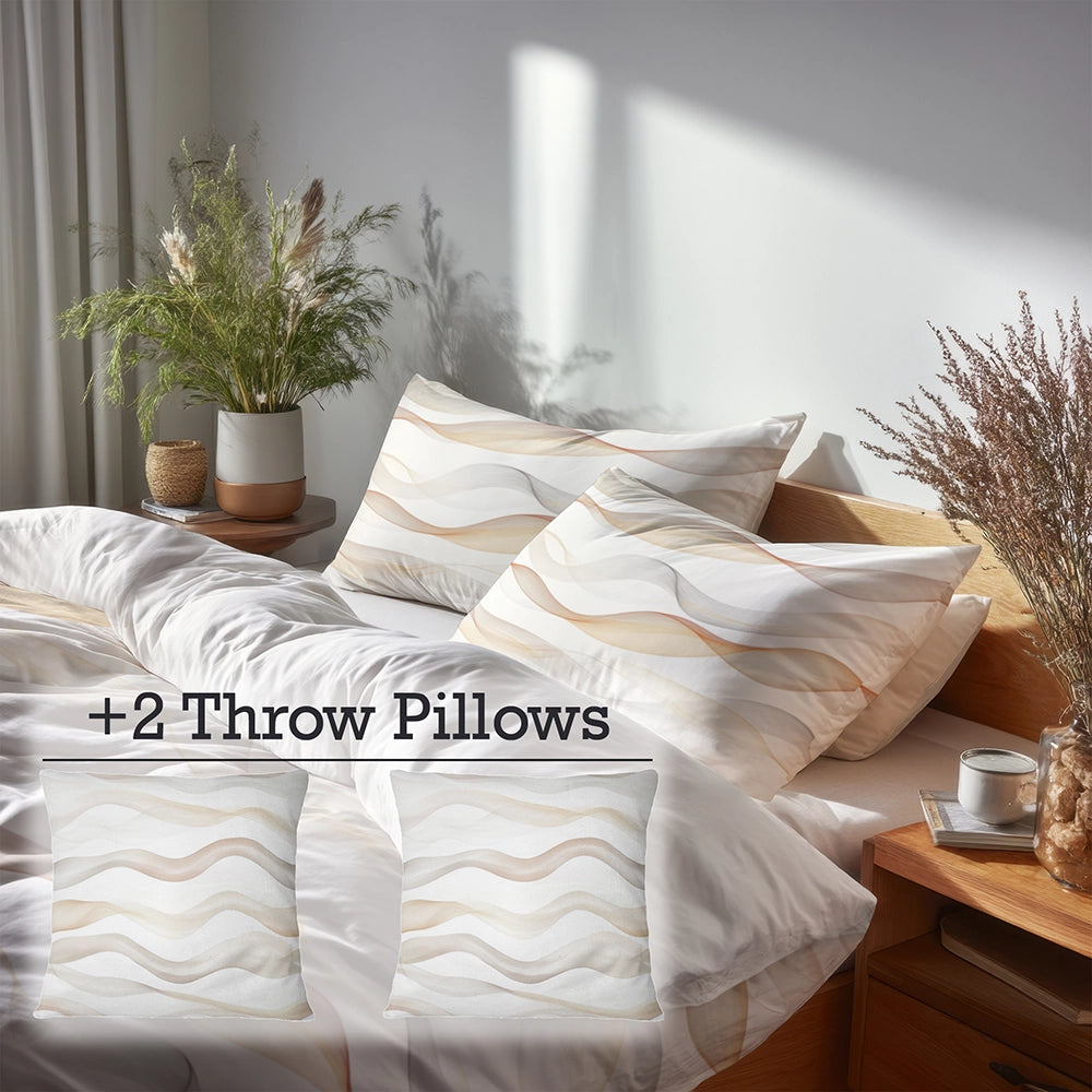 Modern Bedding Set of 5 - Neutral Waves Duvet Cover And Throw Cushion Set