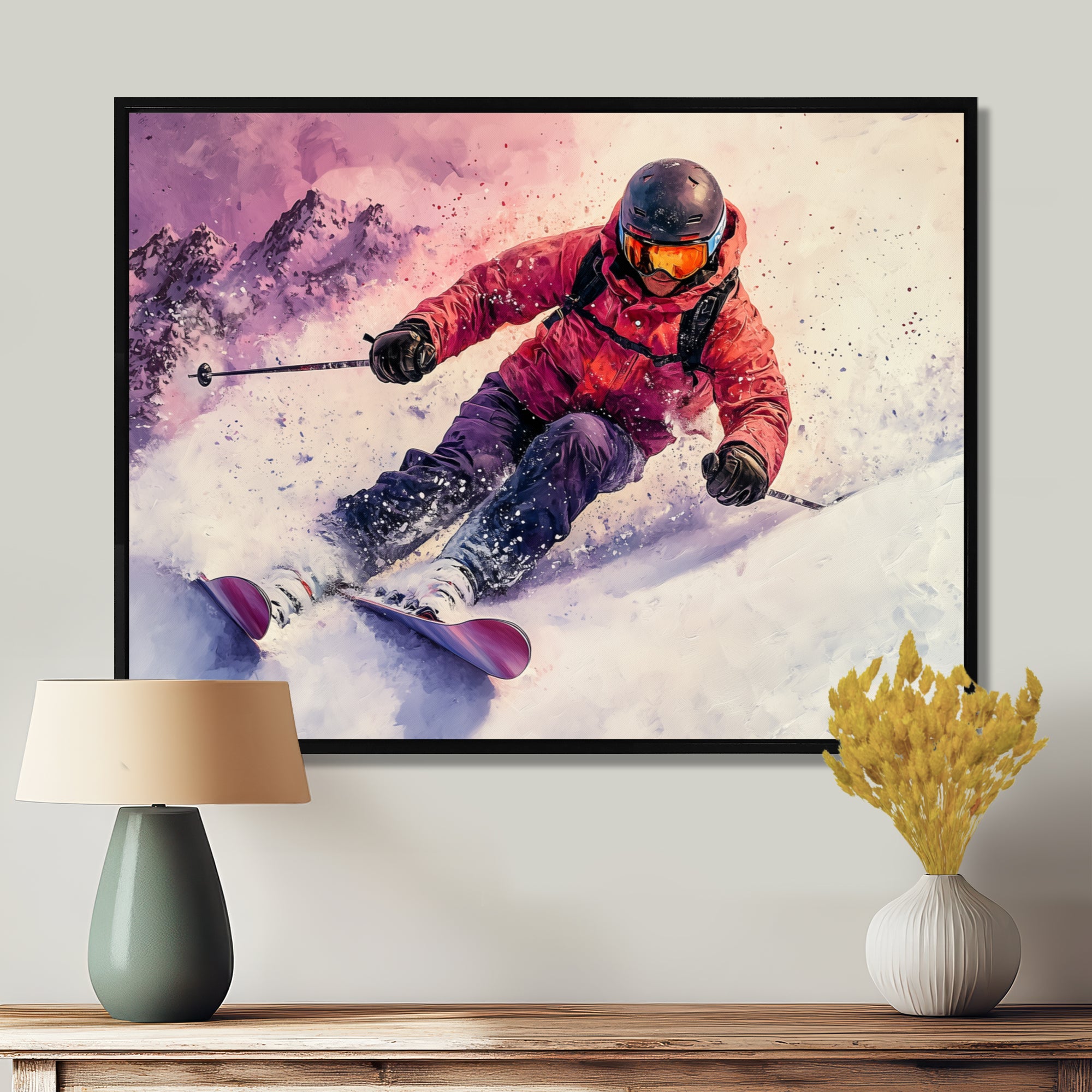Orange Ski Slopestyle Mens Accented With Pink - Skiing Canvas Wall Art
