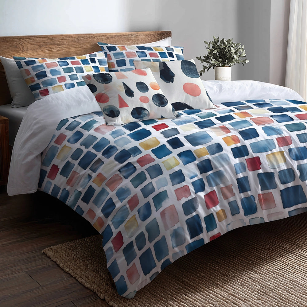 There is just nothing better than a beautiful, inviting comfortable bed after a long day. This Modern bed set is created using the richest colors stemming from high-density Italian ink and the softest fabrics making it the perfect way to spruce up your bedroom while keeping it ultra-comfortable. This luxurious "Blue And Pink Patchwork" bed design is made with 100% microfiber polyester, making it ultra-soft to ensure you sleep comfortably all night long. This Abstract Bedding Set is easily integrated into your already decorated space.