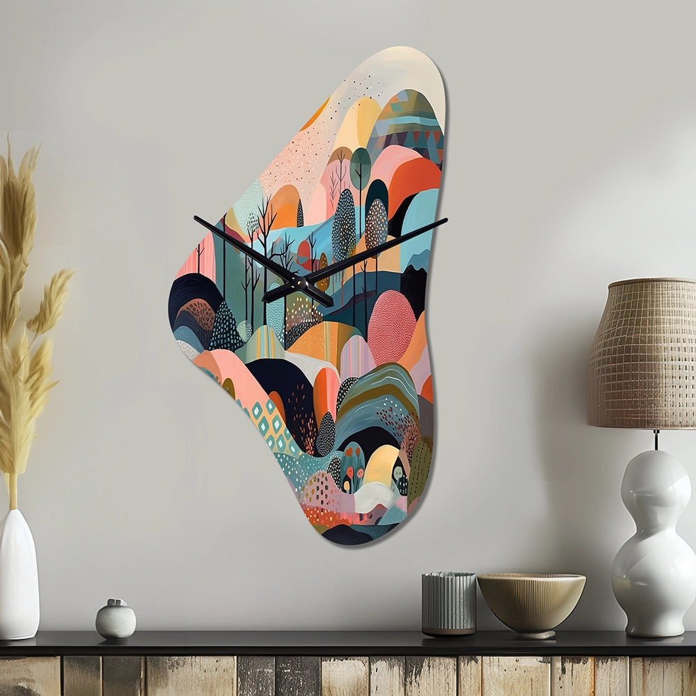Elevate your space with this Modern asymmetrical metal wall Clock. Our handcrafted metal wall sculptures combine modern design with artistic elegance, creating a striking focal point in any room. This asymmetric metal wall Clock features unique, irregular shapes that bring dynamic movement and depth to your walls. Perfect for Abstract decor, these Pink irregular metal wall sculptures are printed on aluminum panel, with extra gloss ensuring long-lasting beauty. Ideal for living rooms, offices decor, or entrance, this statement piece adds a bold, Abstract touch to any decor.