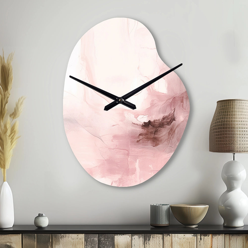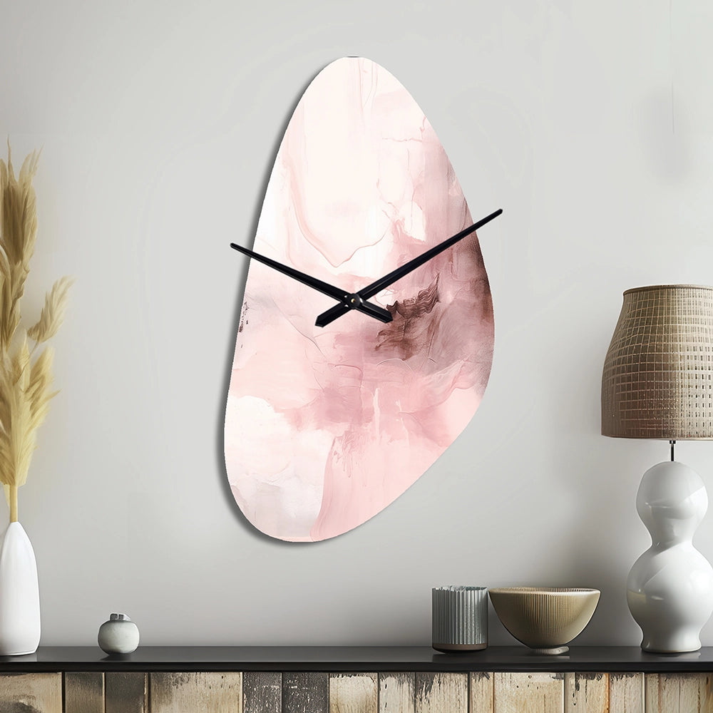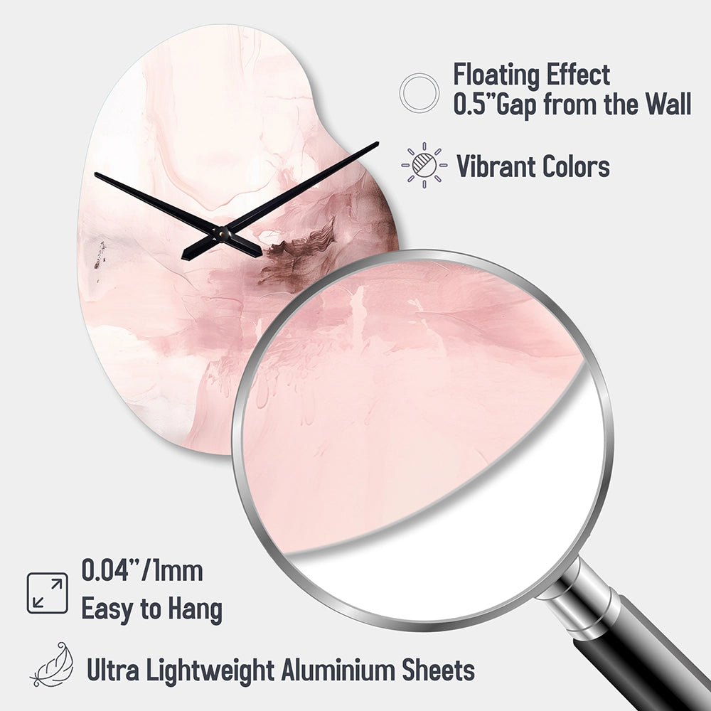 Pink Delicate Abstract Marble IV - Asymmetric Metal Wall Clock