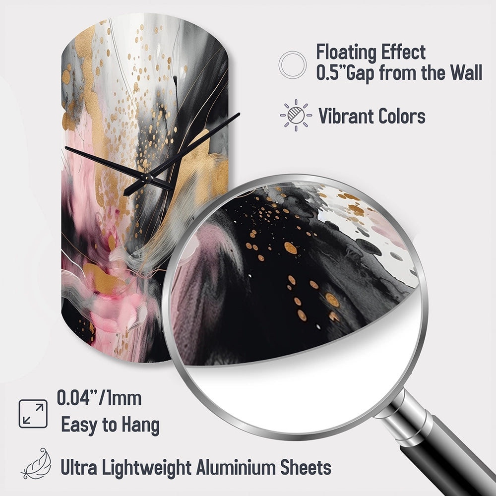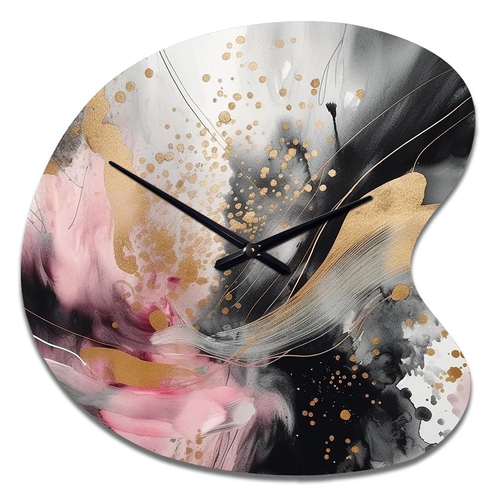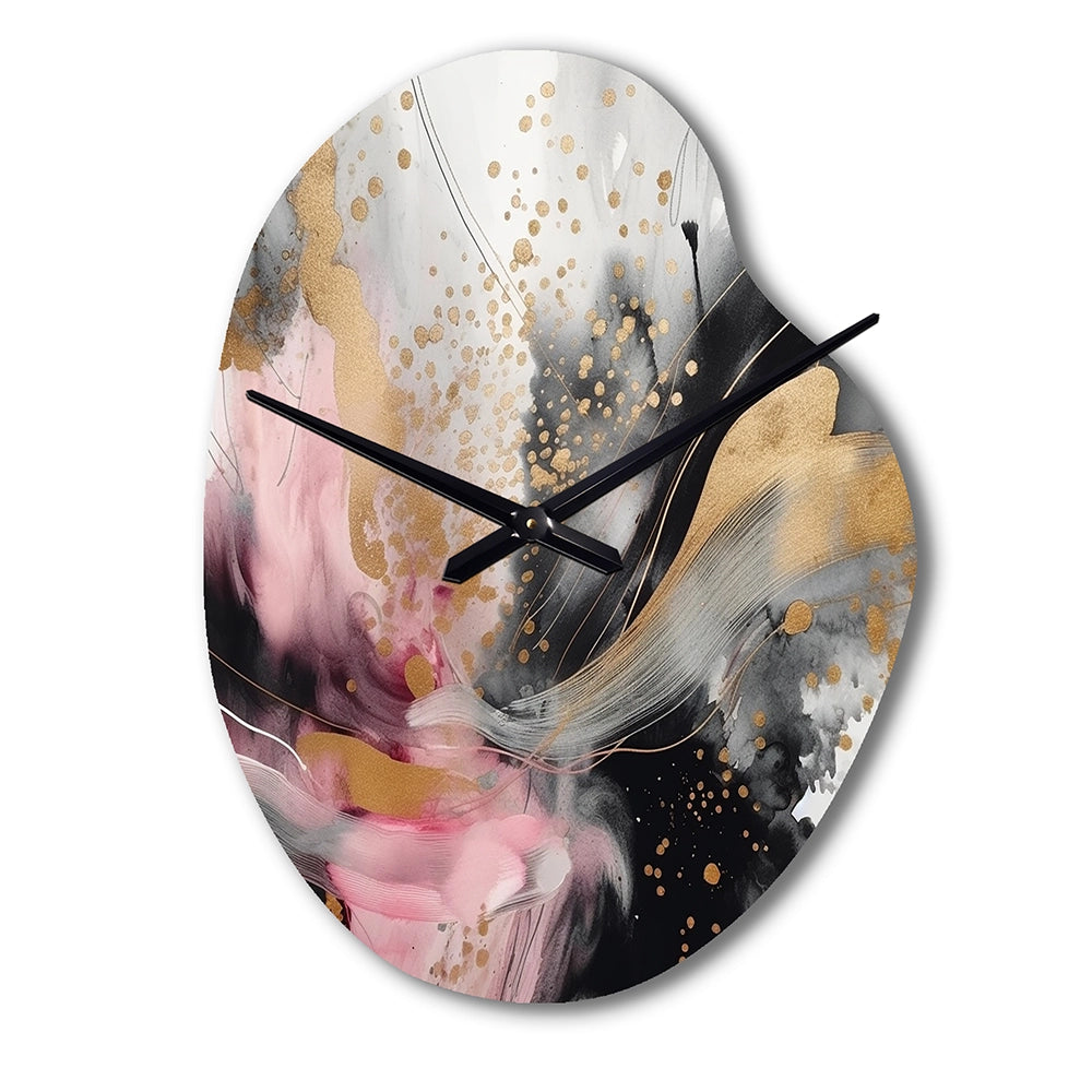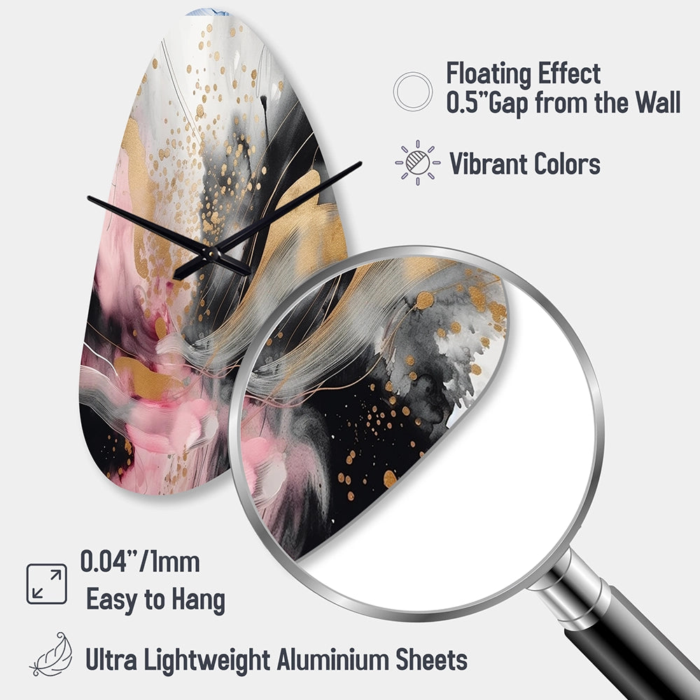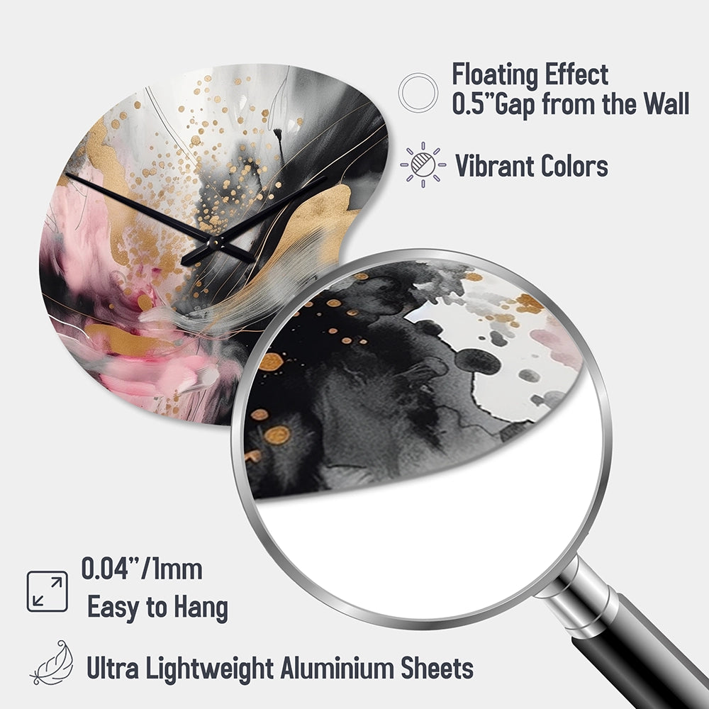 Pink Gold Texture Splash Marble III - Asymmetric Metal Wall Clock