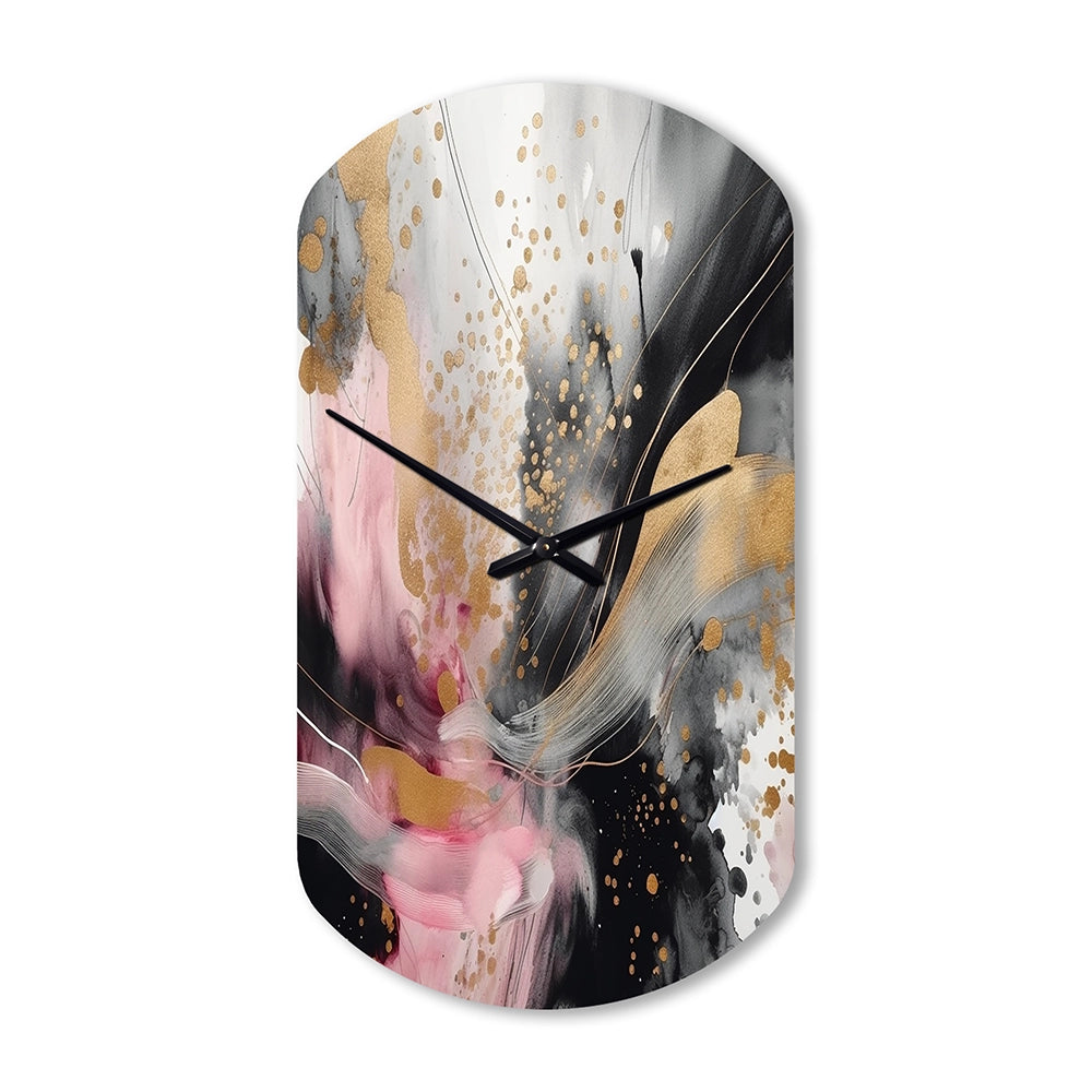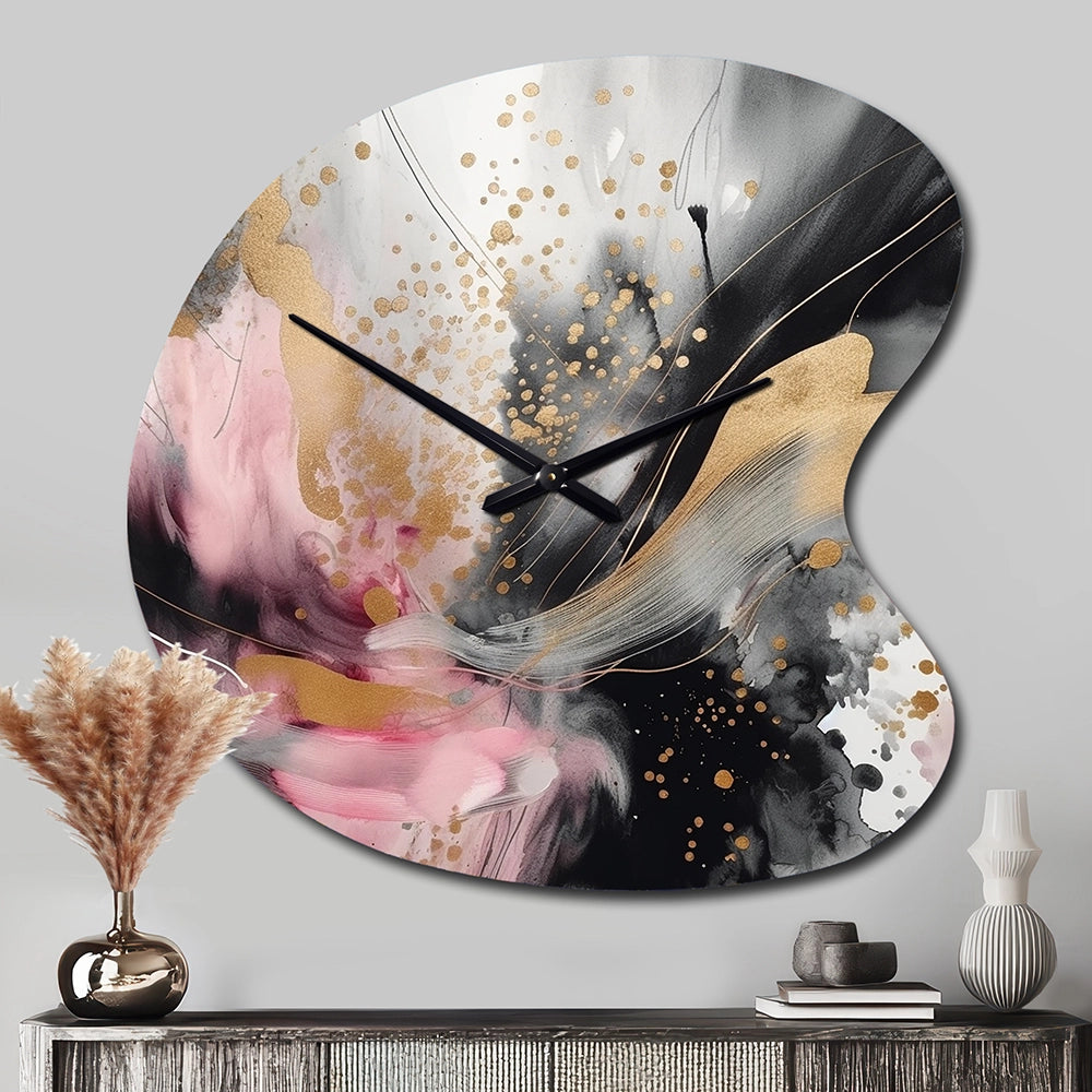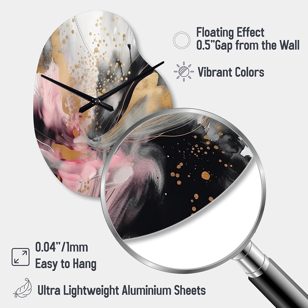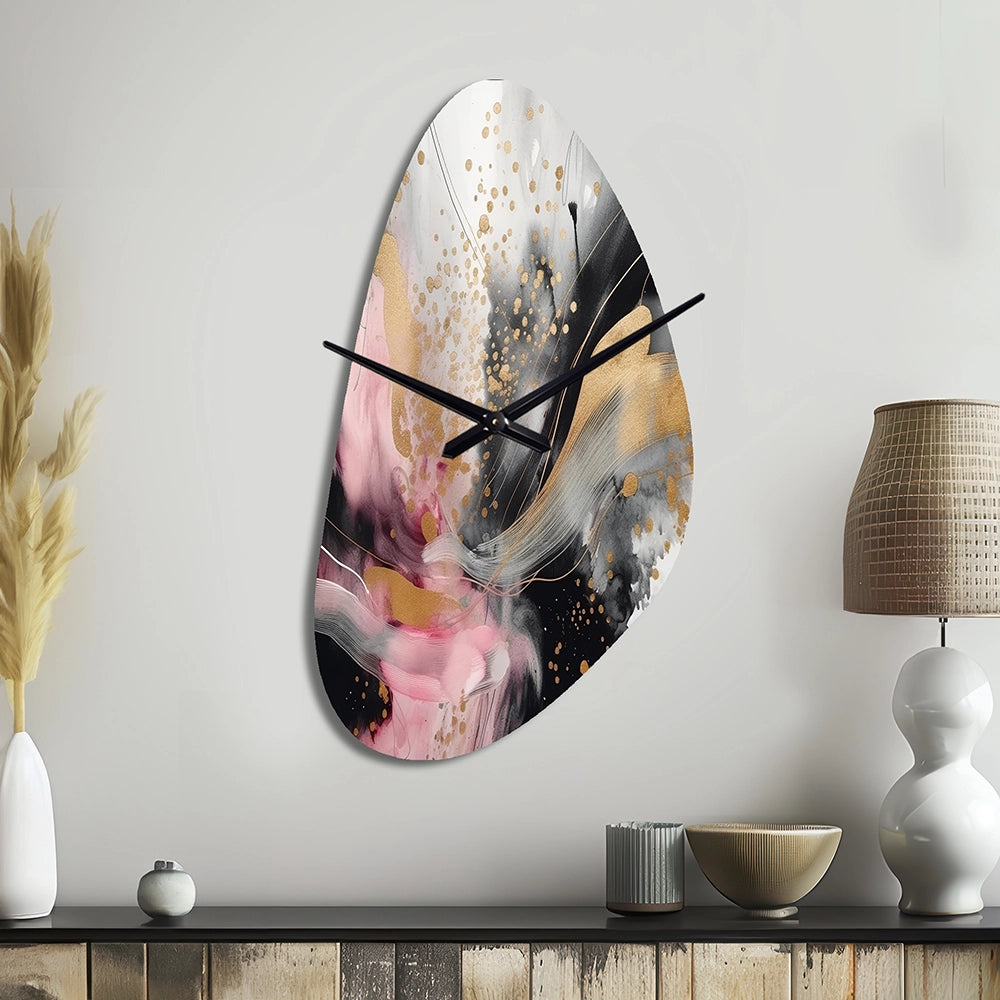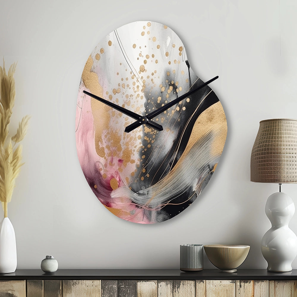 Pink Gold Texture Splash Marble III - Asymmetric Metal Wall Clock