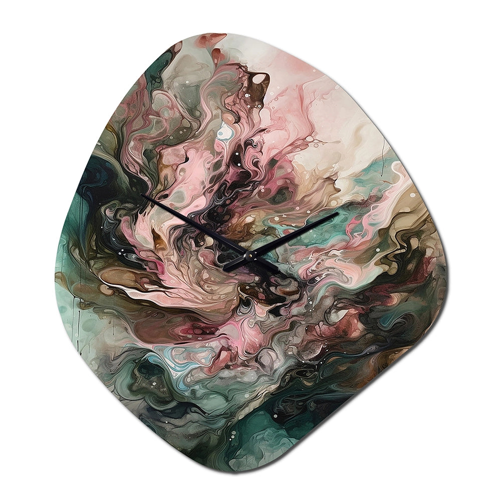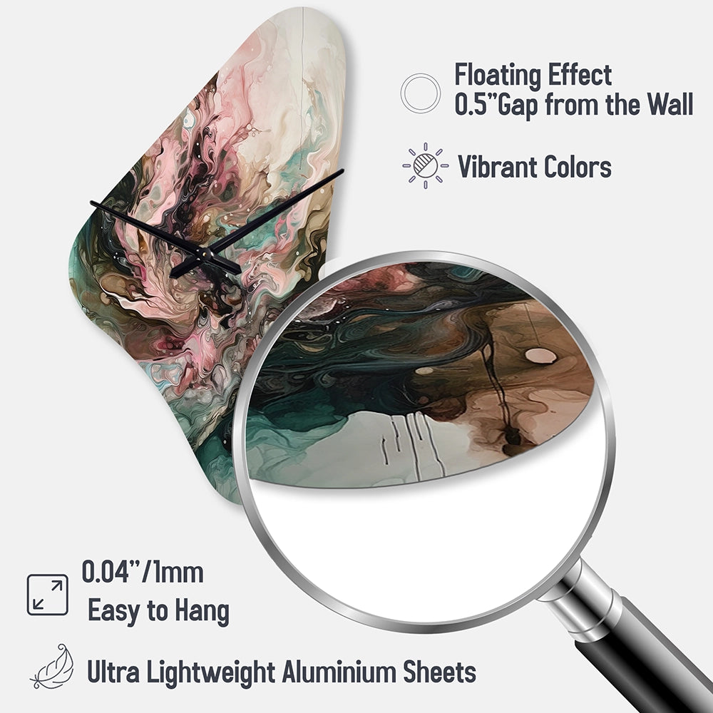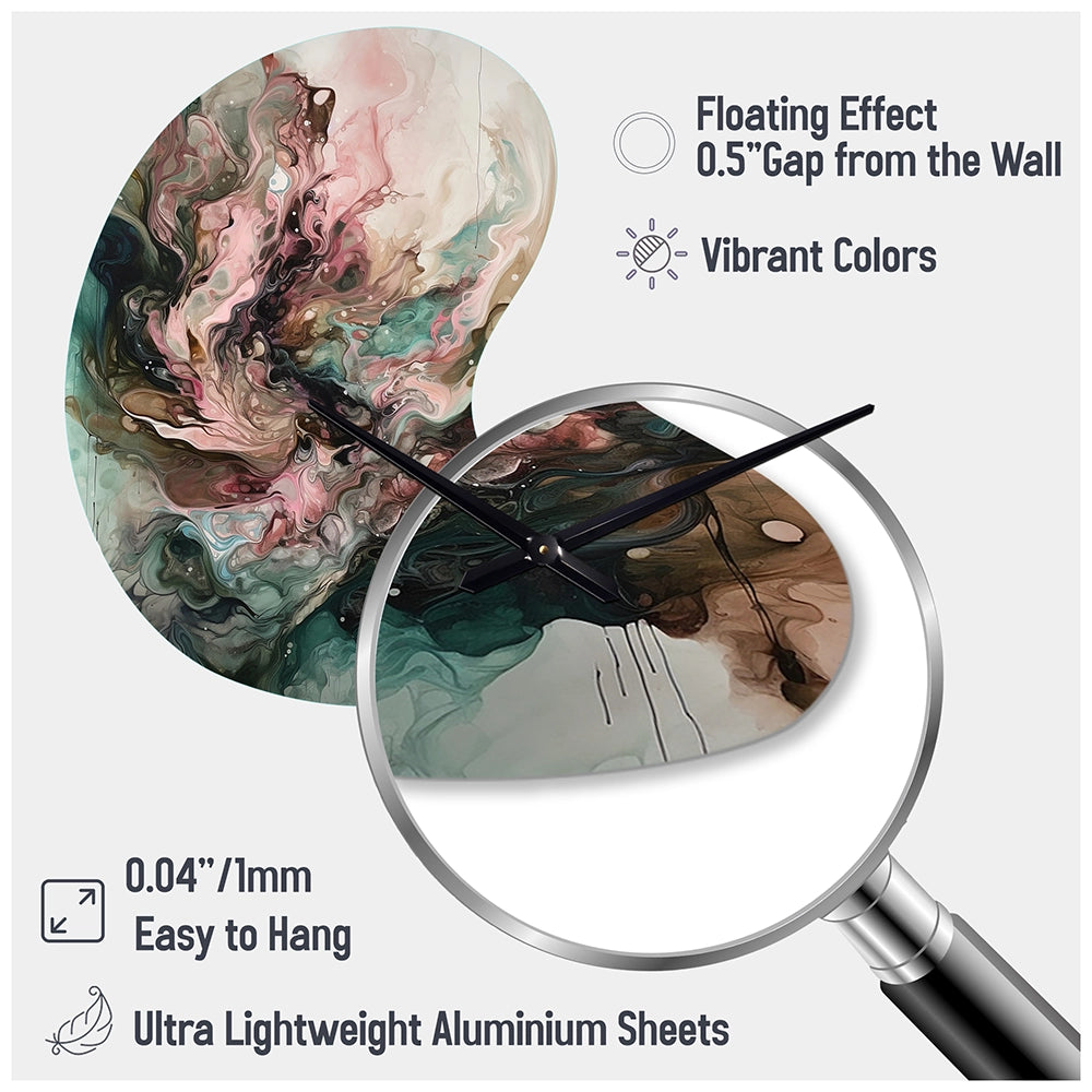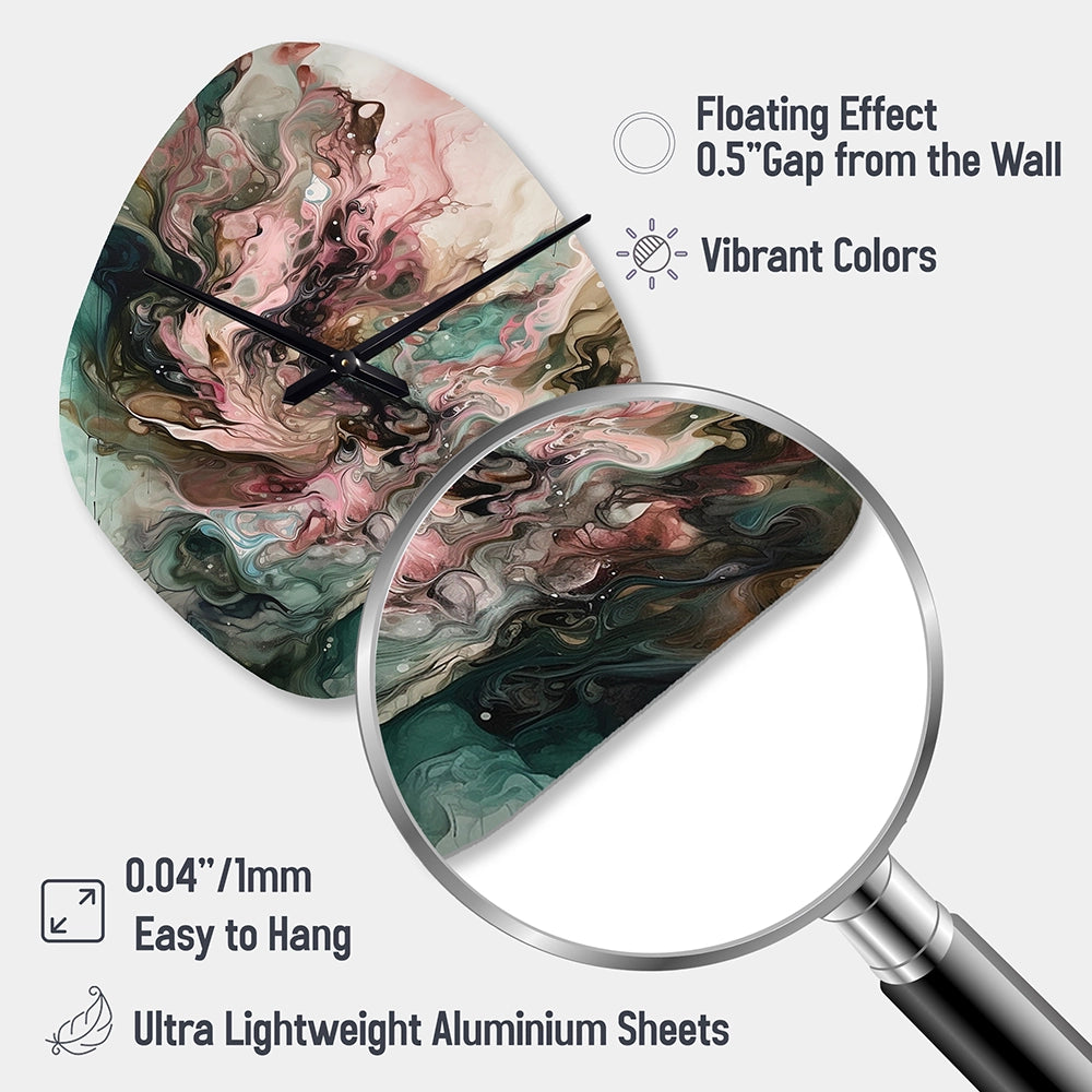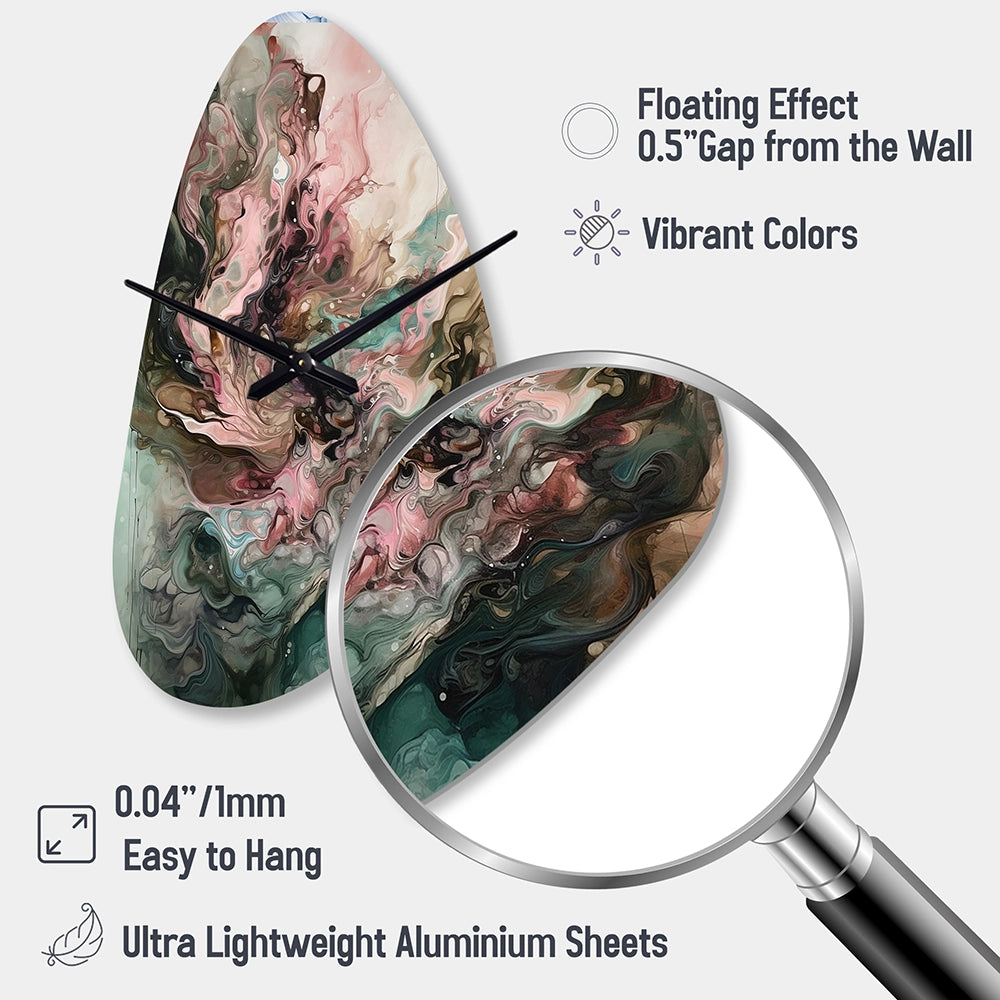 Pink Green Inner Worlds Of Marble III - Asymmetric Metal Wall Clock