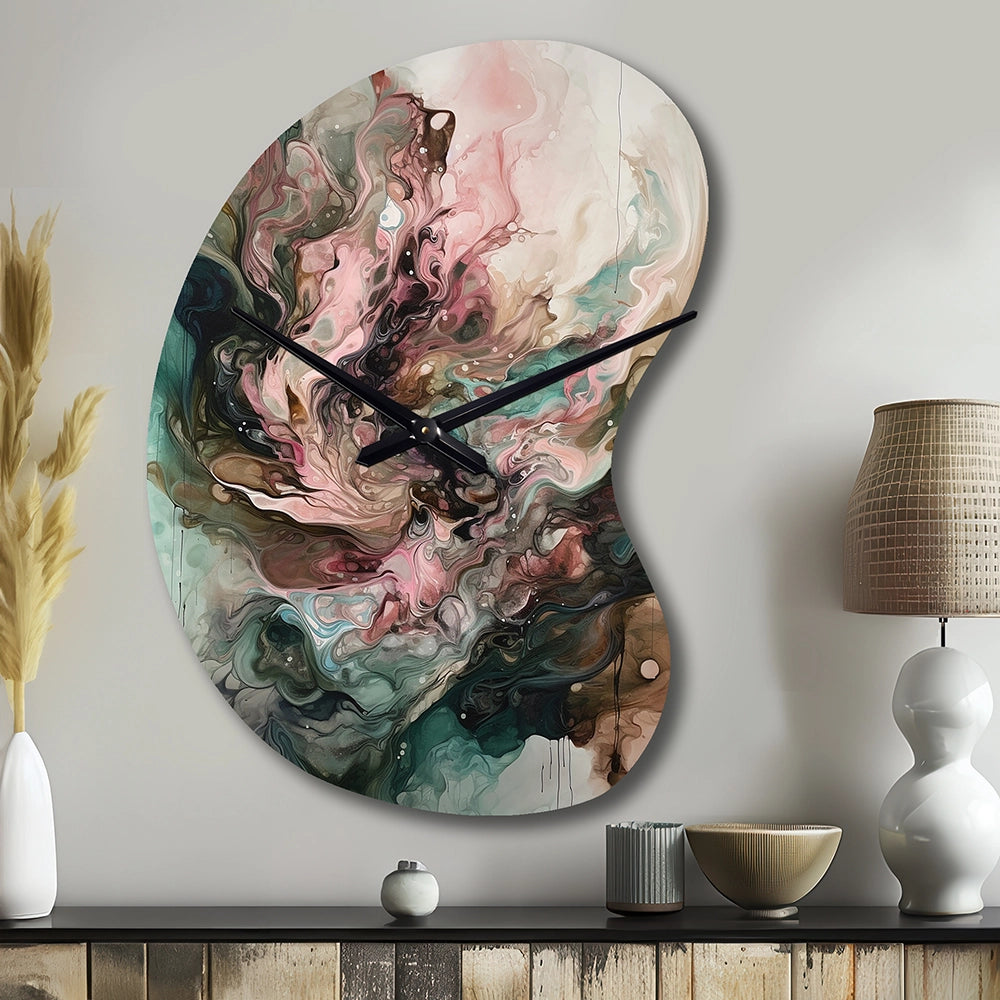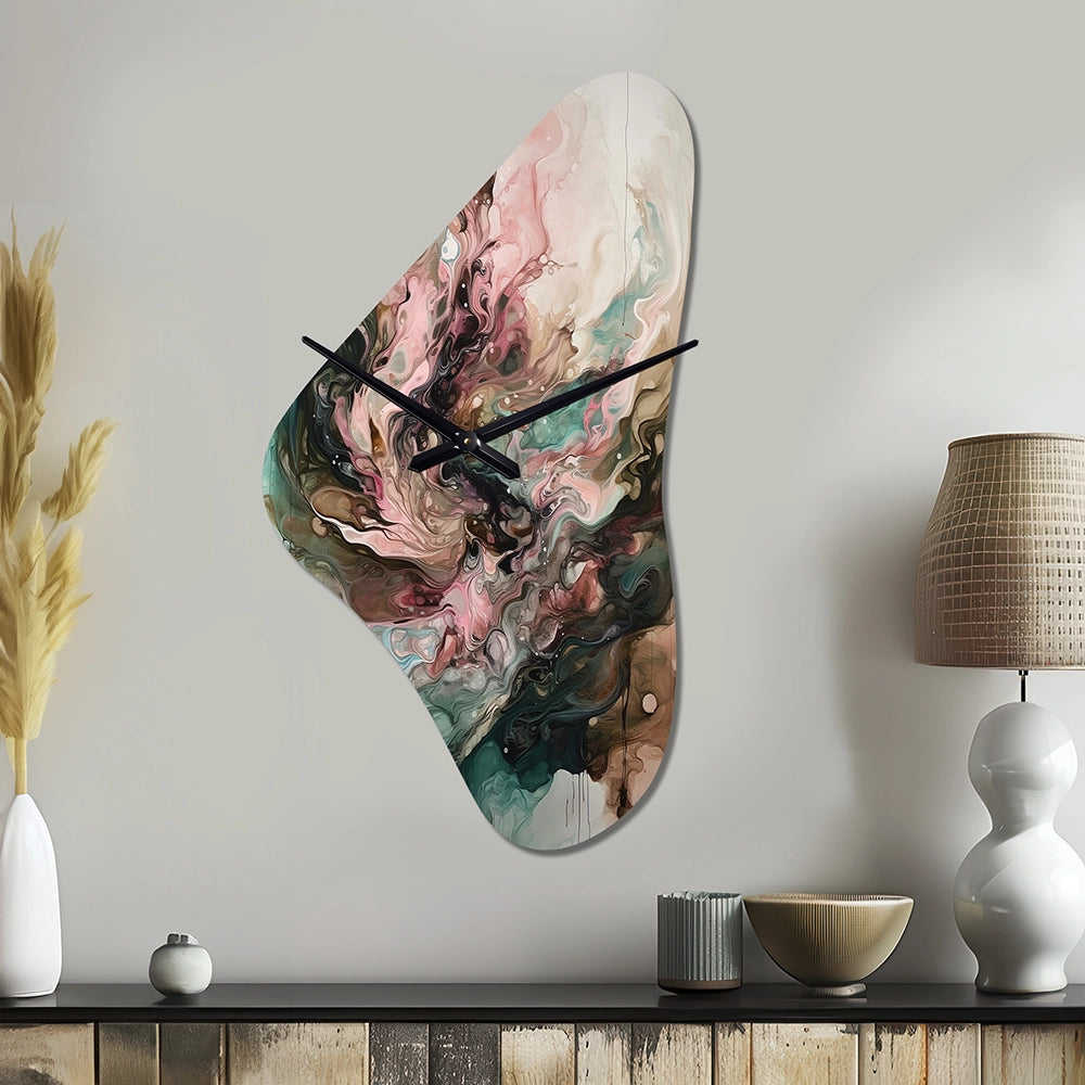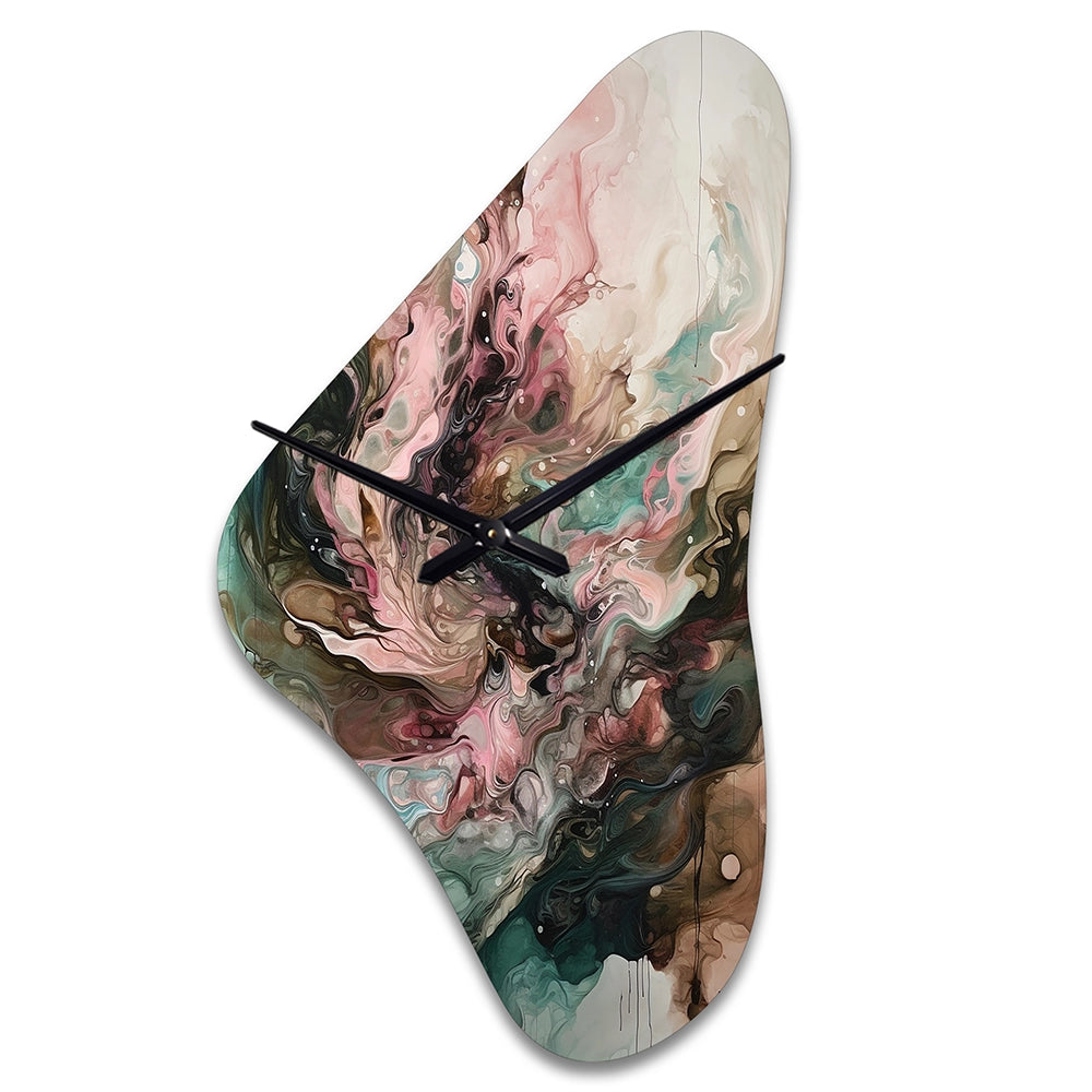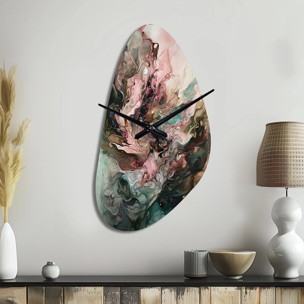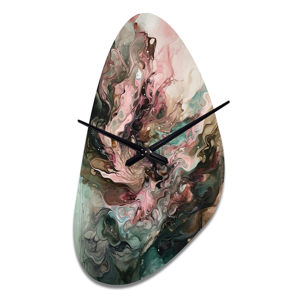 Pink Green Inner Worlds Of Marble III - Asymmetric Metal Wall Clock