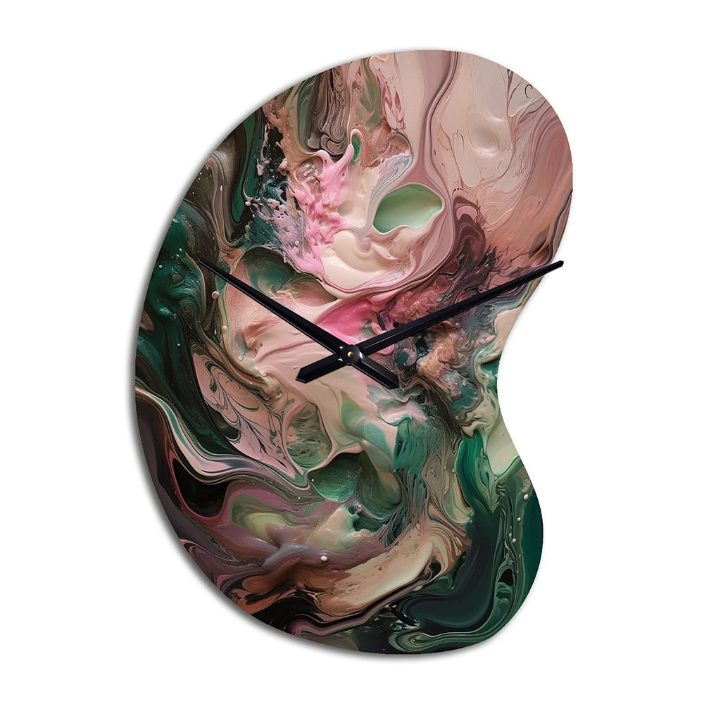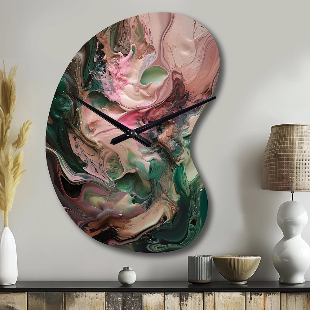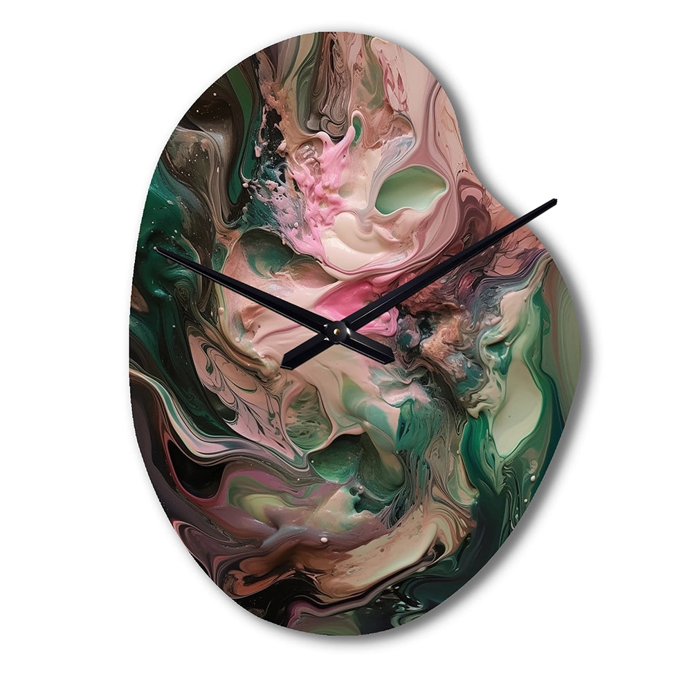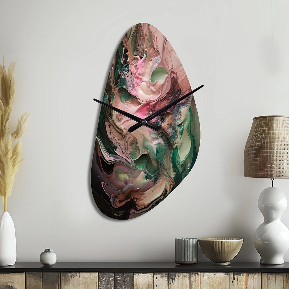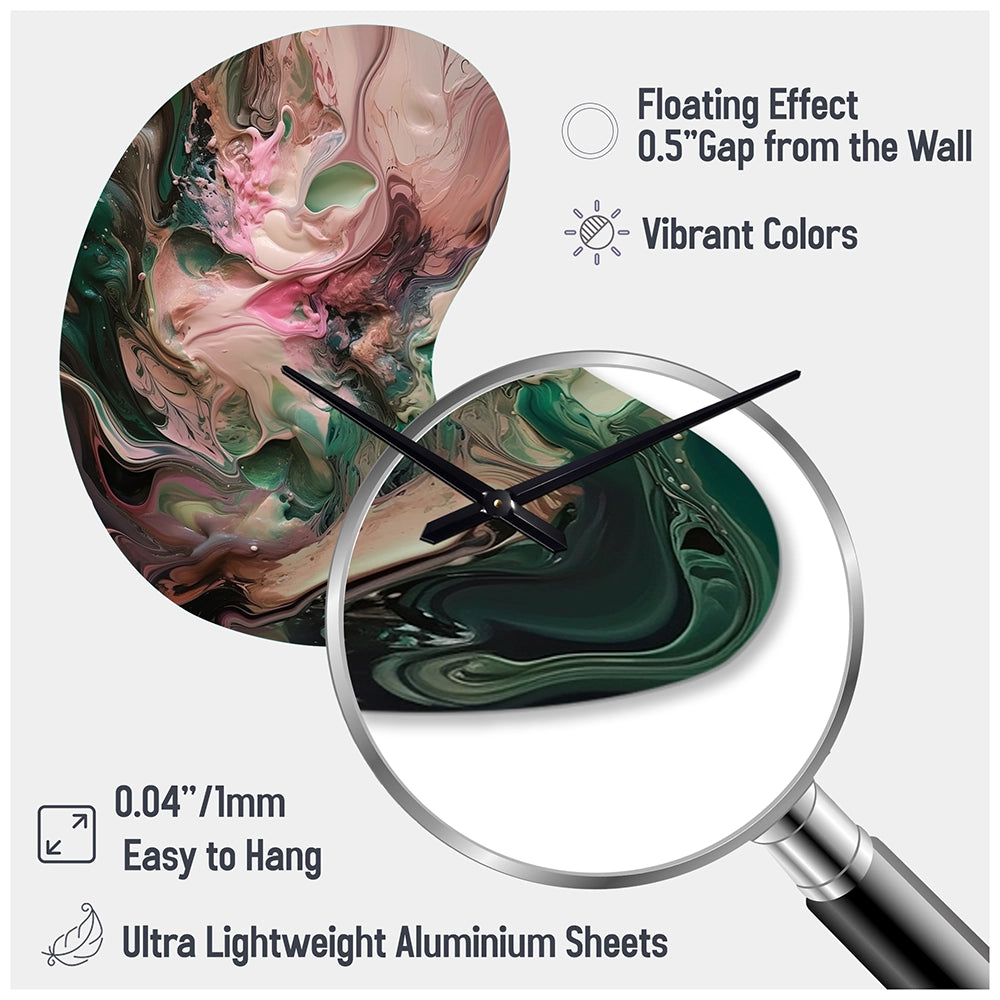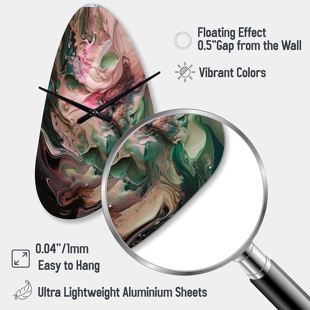 Pink Green Inner Worlds Of Marble IV - Asymmetric Metal Wall Clock