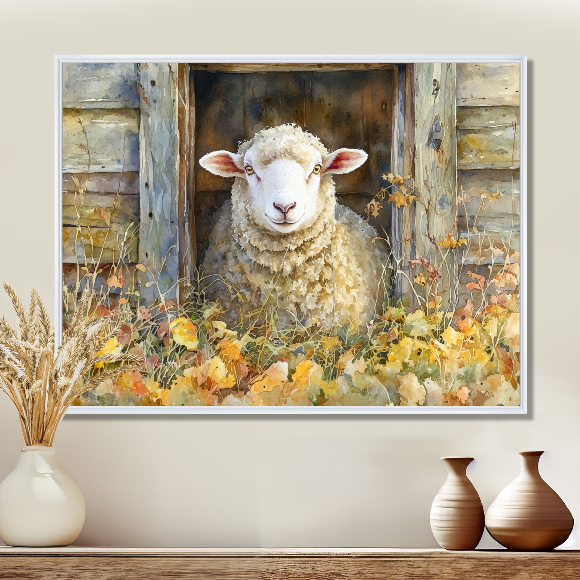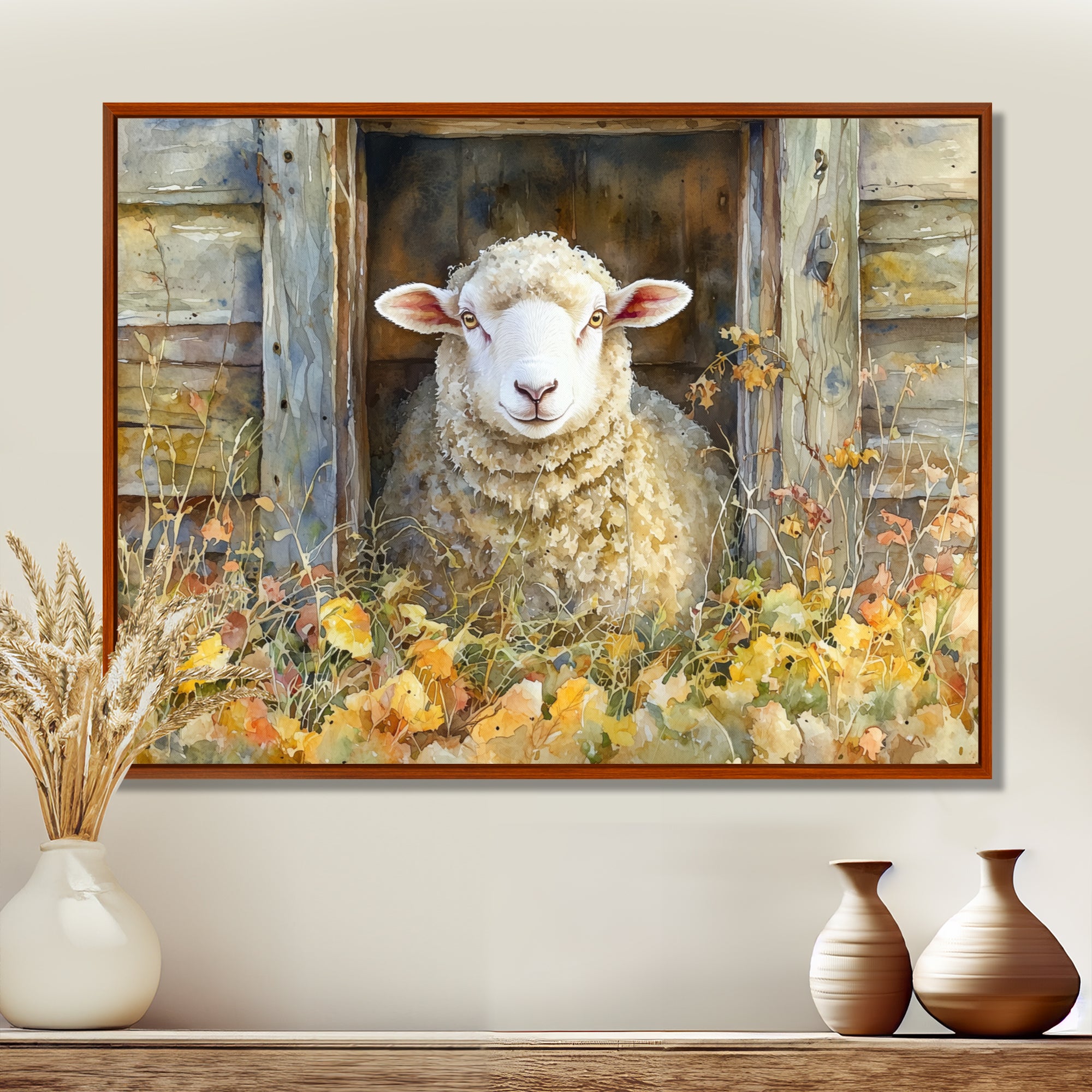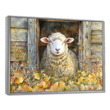 Sheep Floral Portrait At The Barn - Sheep Bedroom Wall Art