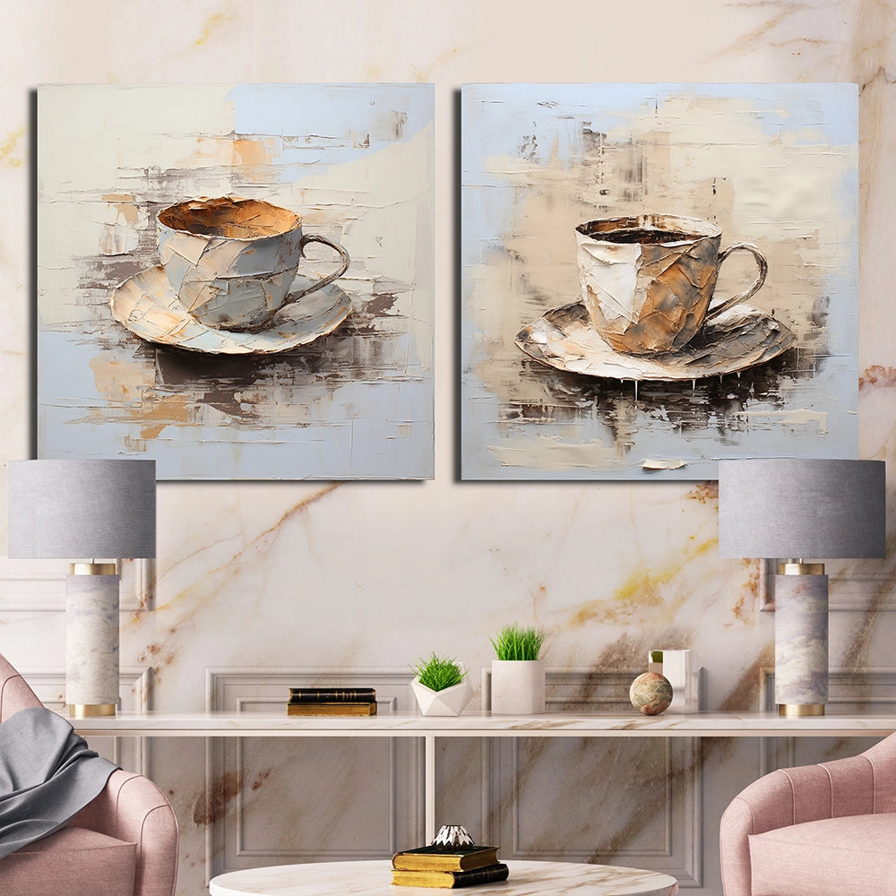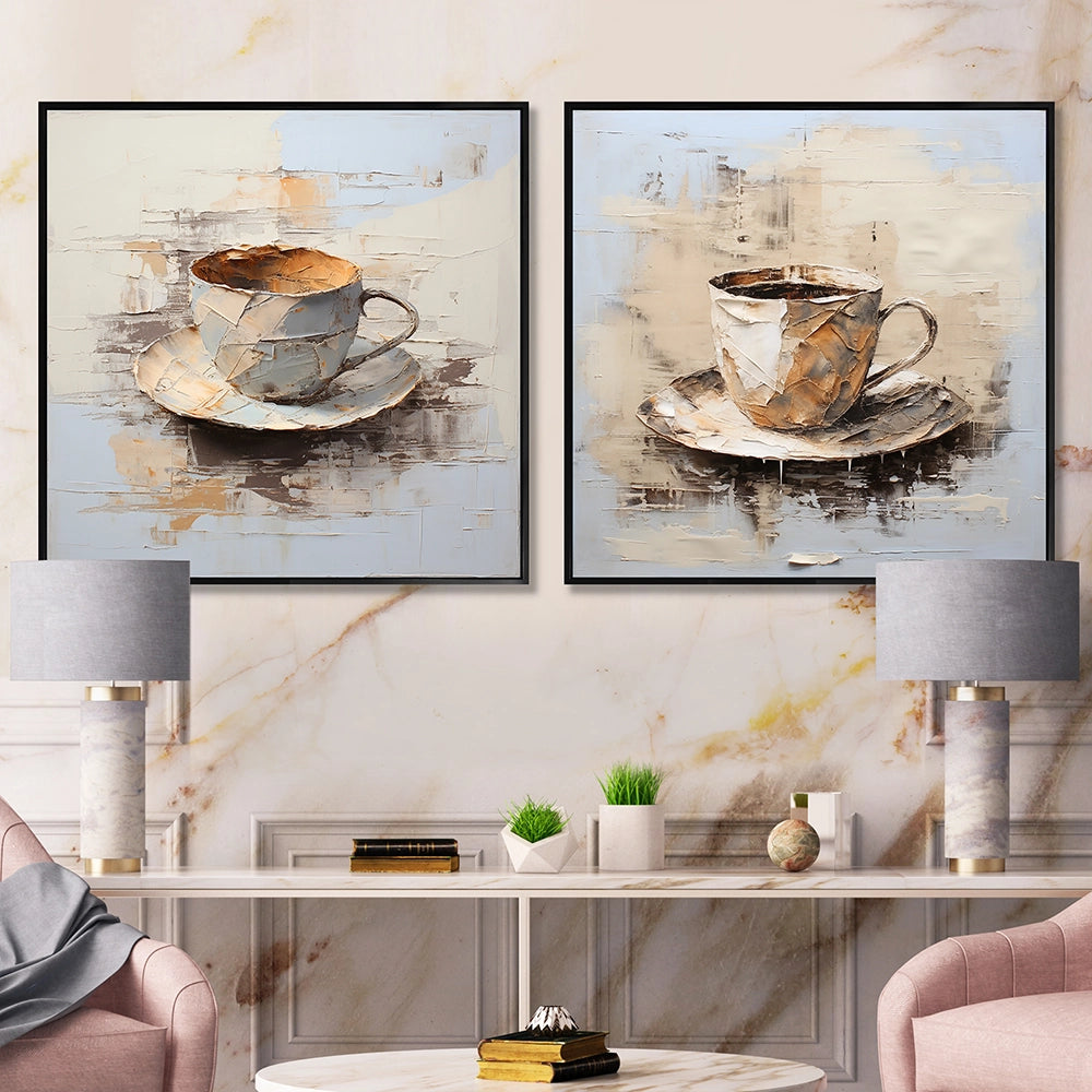 Traditional Canvas Wall Art Set - Simple Coffee Cup - 2 Pieces