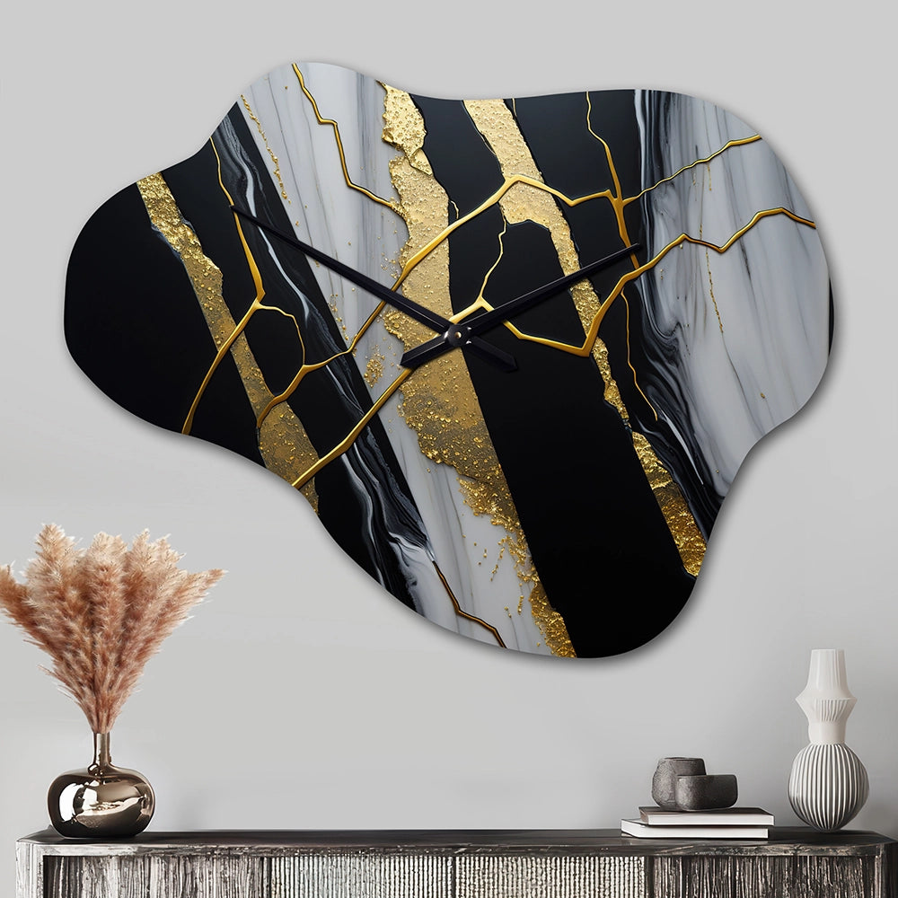 Abstract Geode Black II - Asymmetric Metal Wall Clock