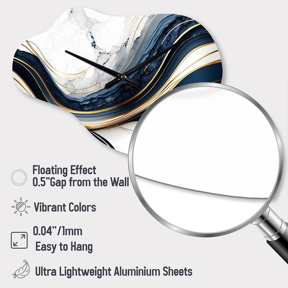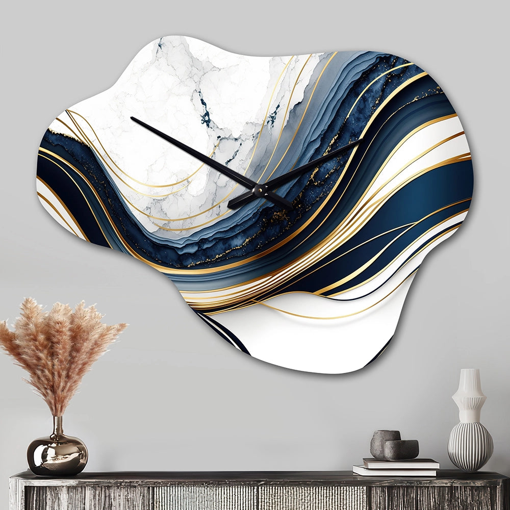 Abstract Geode Waves Blue And Gold III - Asymmetric Metal Wall Clock
