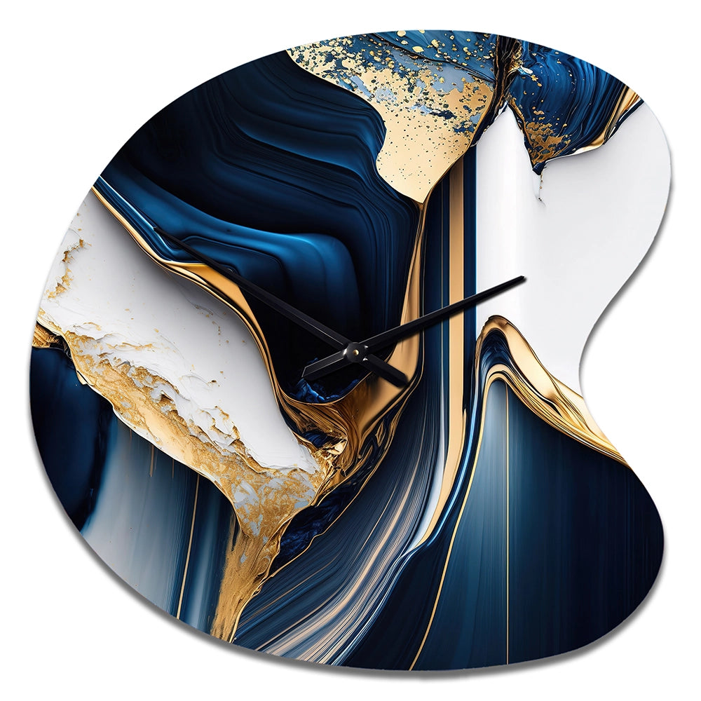 Abstract Geode Waves Gold I - Asymmetric Metal Wall Clock