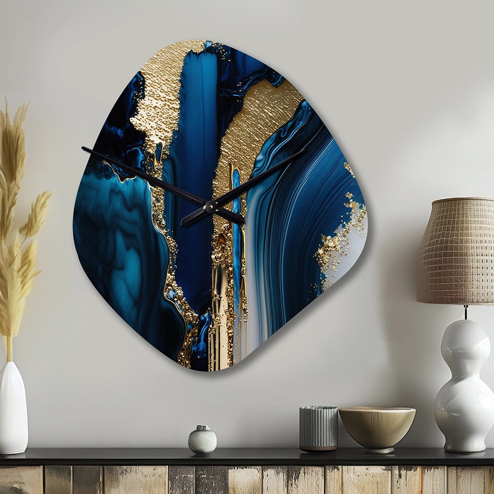 Abstract Geode Waves Gold II - Asymmetric Metal Wall Clock