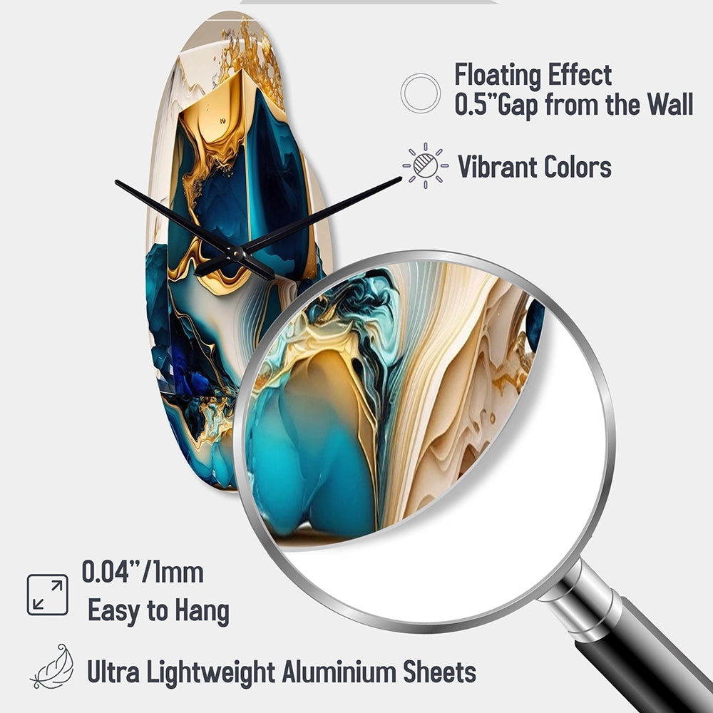 Abstract Marble Geode Blue Shape - Asymmetric Metal Wall Clock