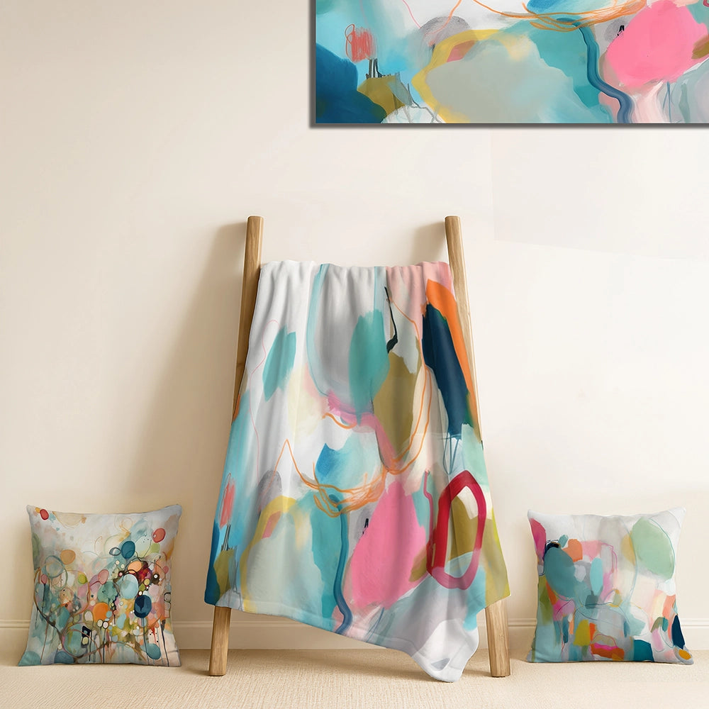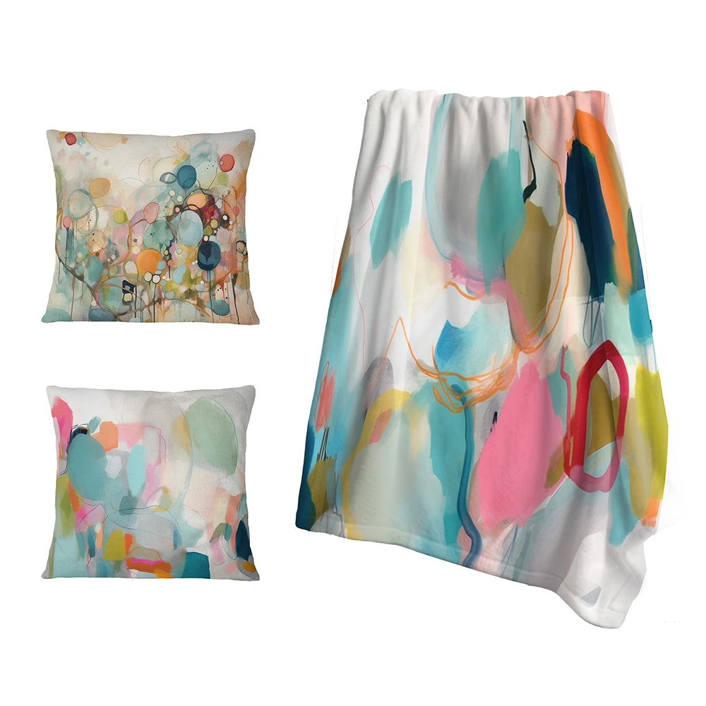 Abstract Minimalism Decorative Throw Blanket Set - Pink Blue Minimalism Fluidity II