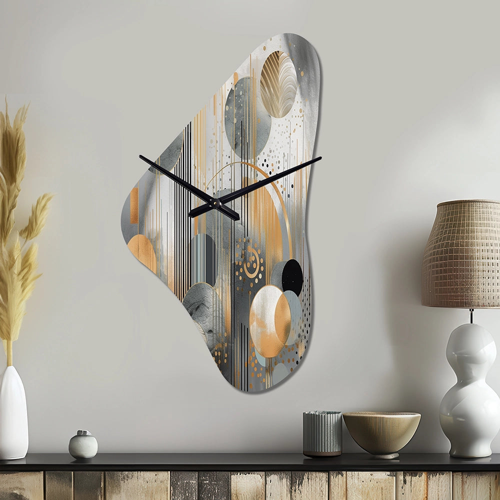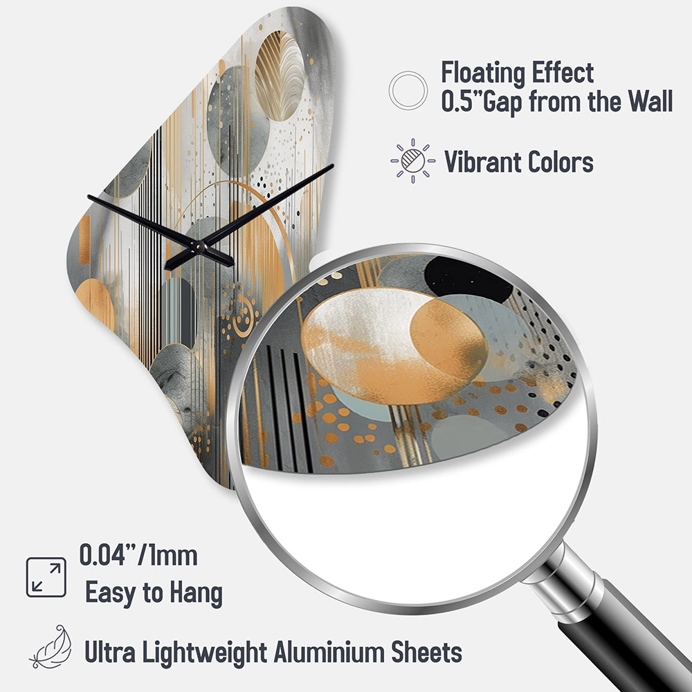 Elevate your space with this Modern asymmetrical metal wall Clock. Our handcrafted metal wall sculptures combine modern design with artistic elegance, creating a striking focal point in any room. This asymmetric metal wall Clock features unique, irregular shapes that bring dynamic movement and depth to your walls. Perfect for Abstract decor, these Gold irregular metal wall sculptures are printed on aluminum panel, with extra gloss ensuring long-lasting beauty. Ideal for living rooms, offices decor, or entrance, this statement piece adds a bold, Abstract touch to any decor.