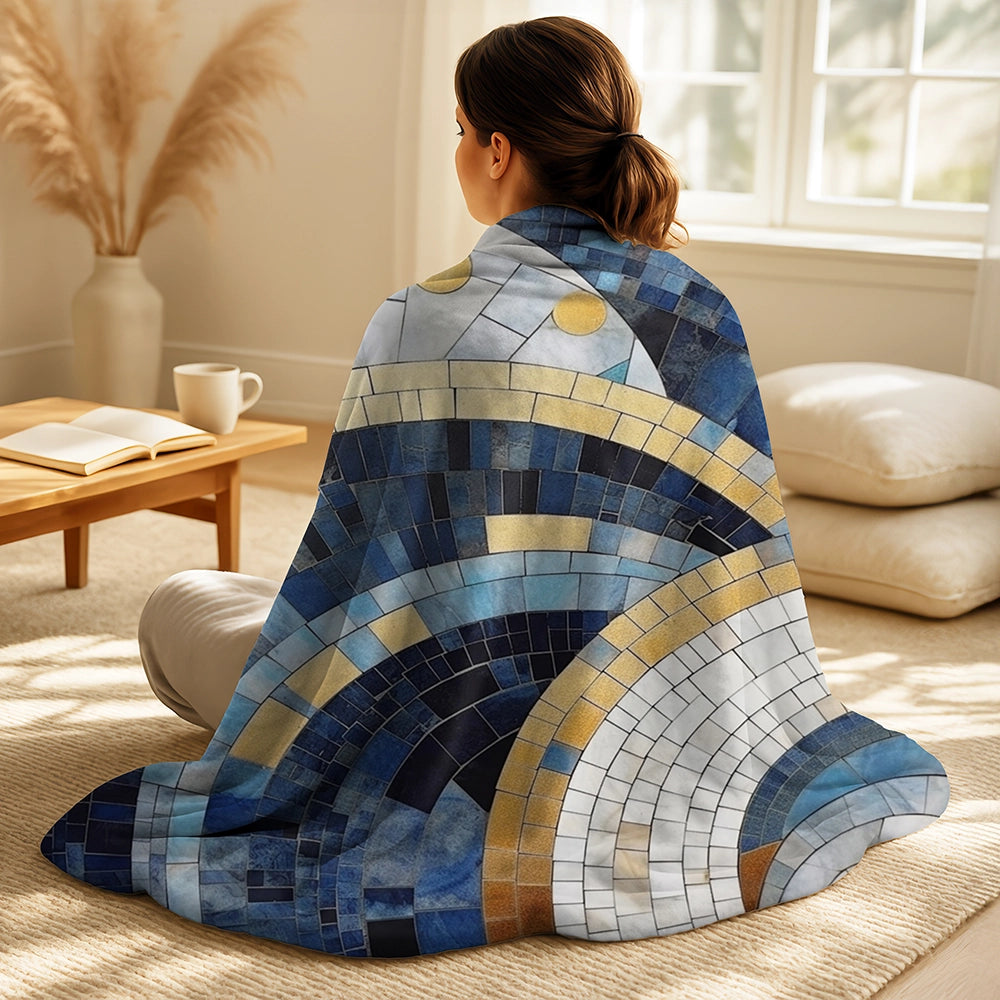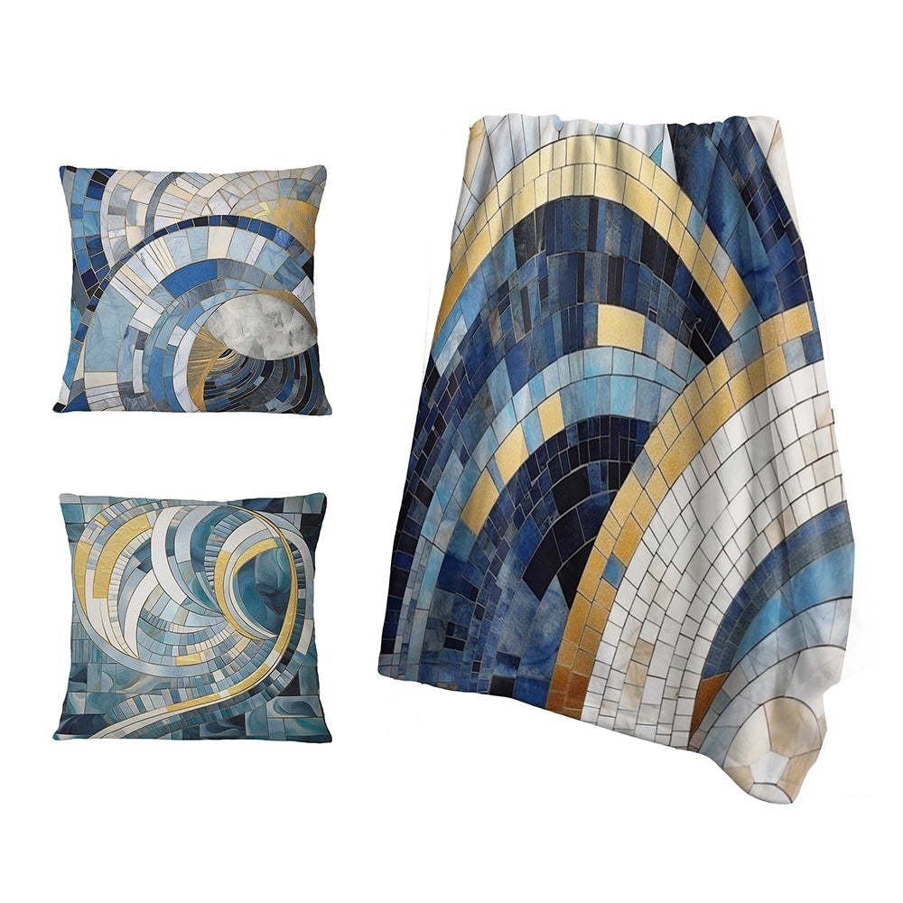 Abstract Shapes Decorative Throw Blanket - Gold Constructing Blue Realms III