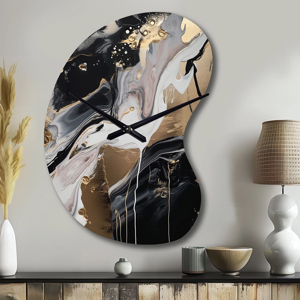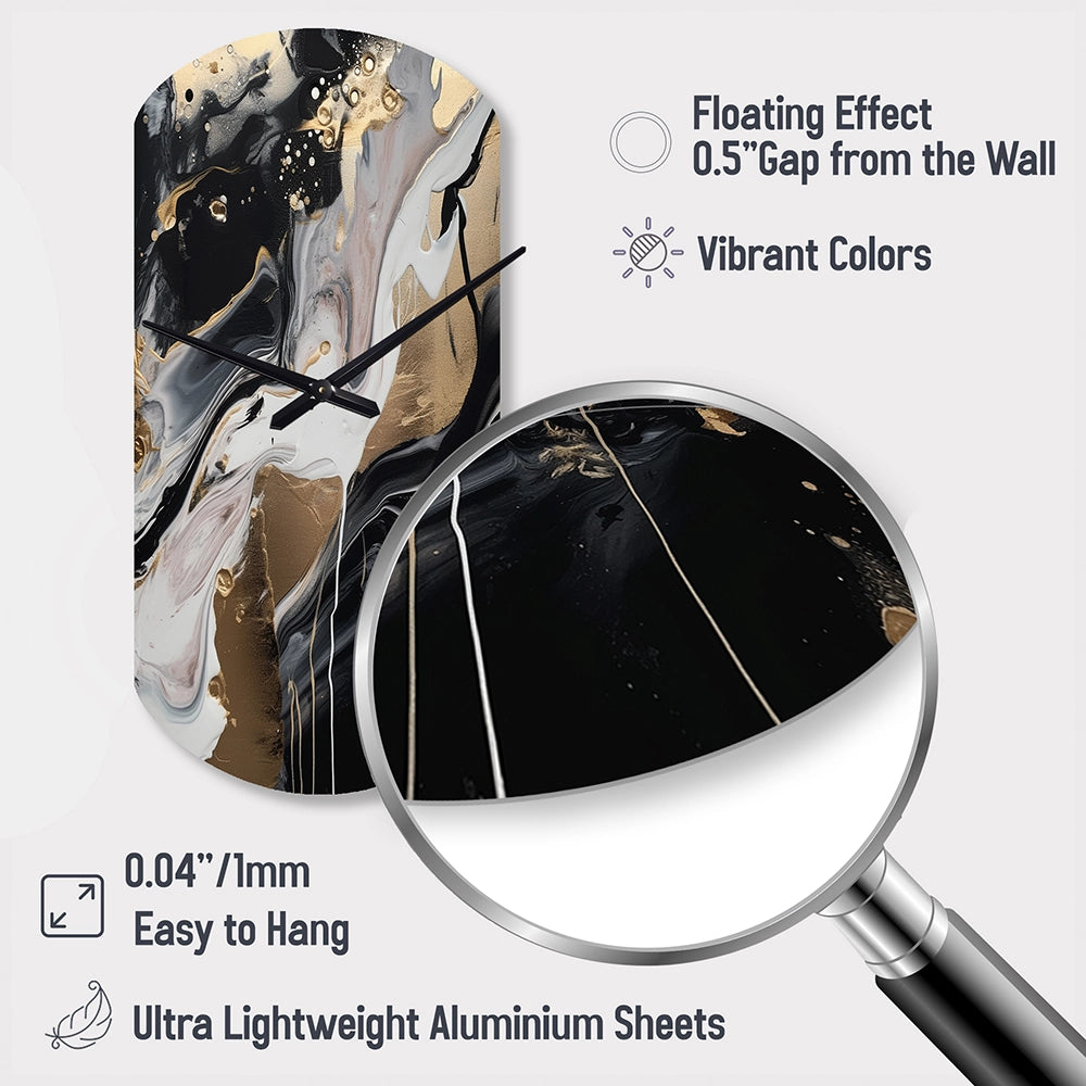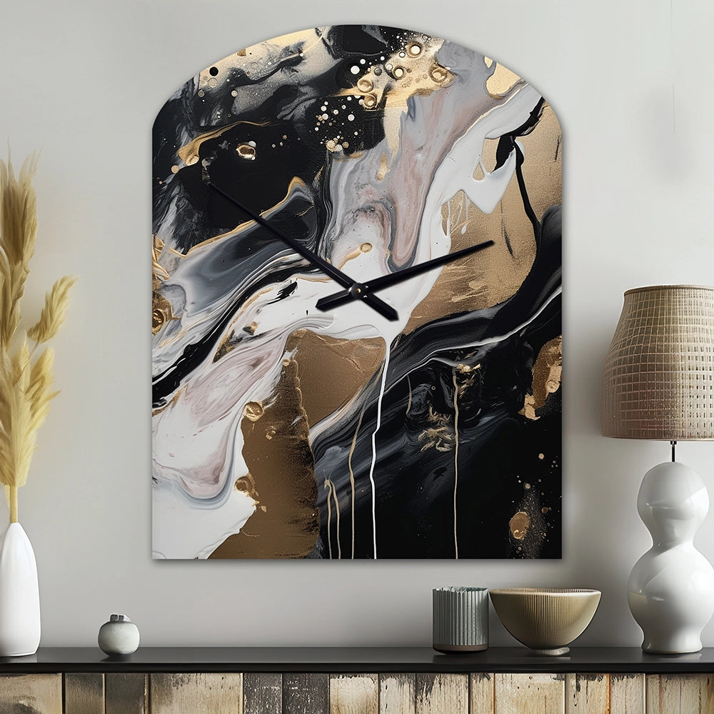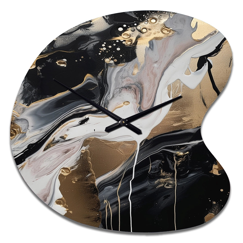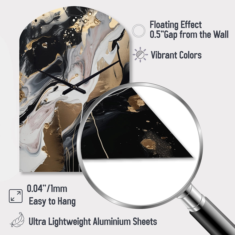Back And Gold Marble Medley III - Asymmetric Metal Wall Clock