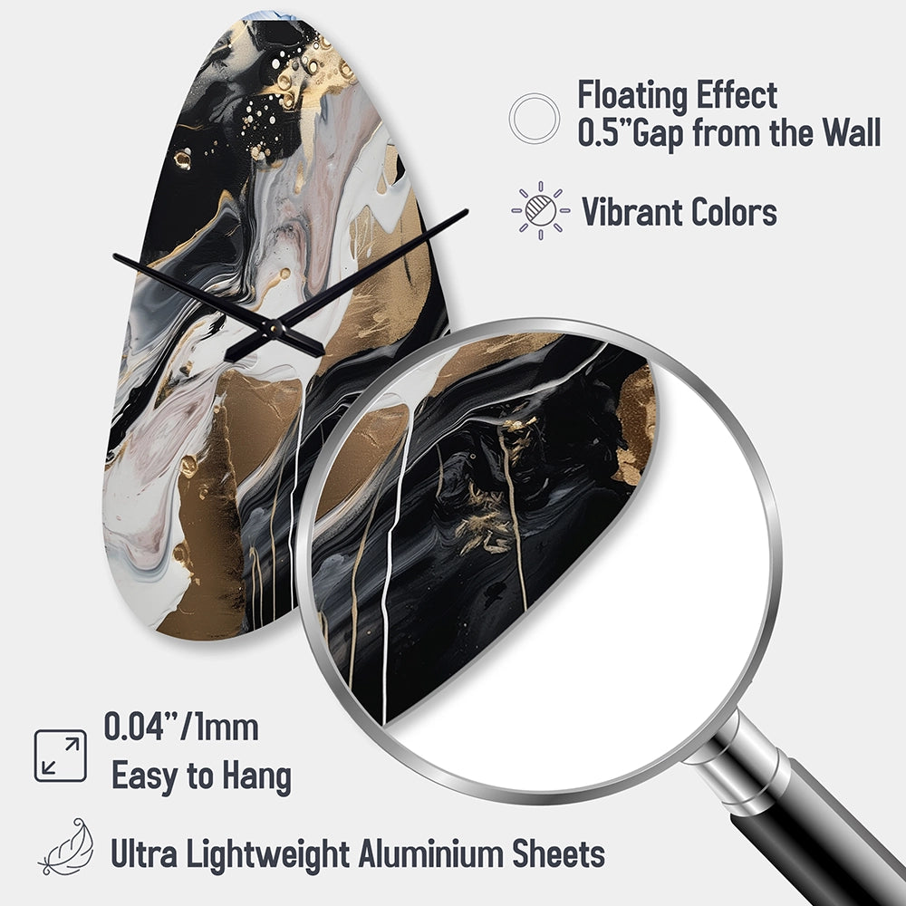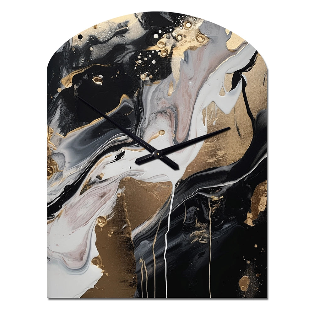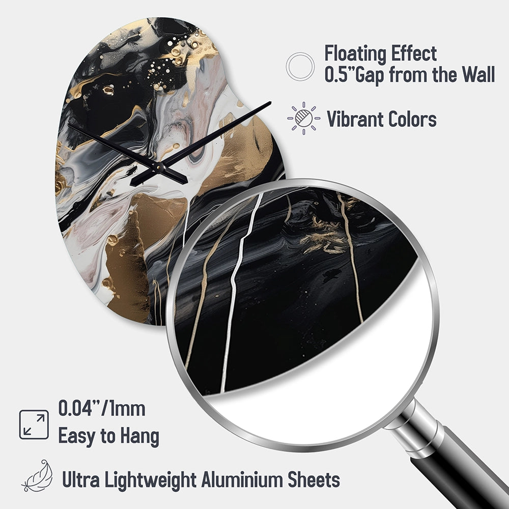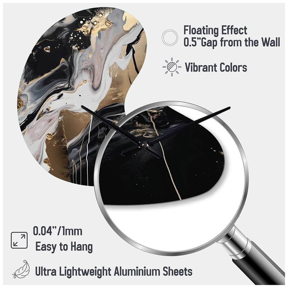Back And Gold Marble Medley III - Asymmetric Metal Wall Clock