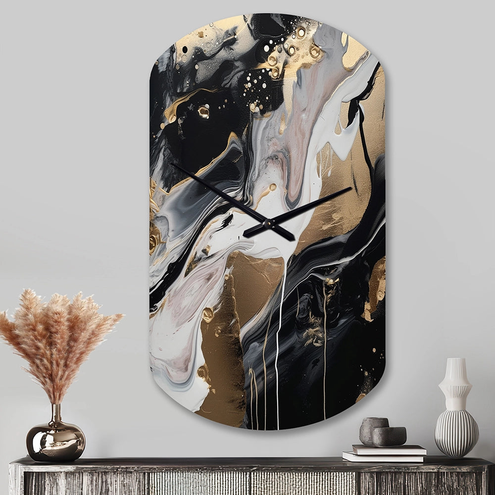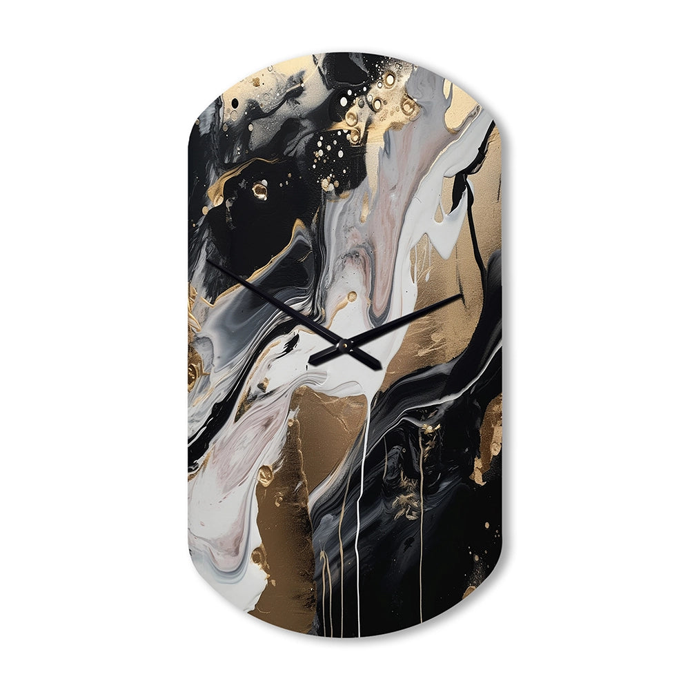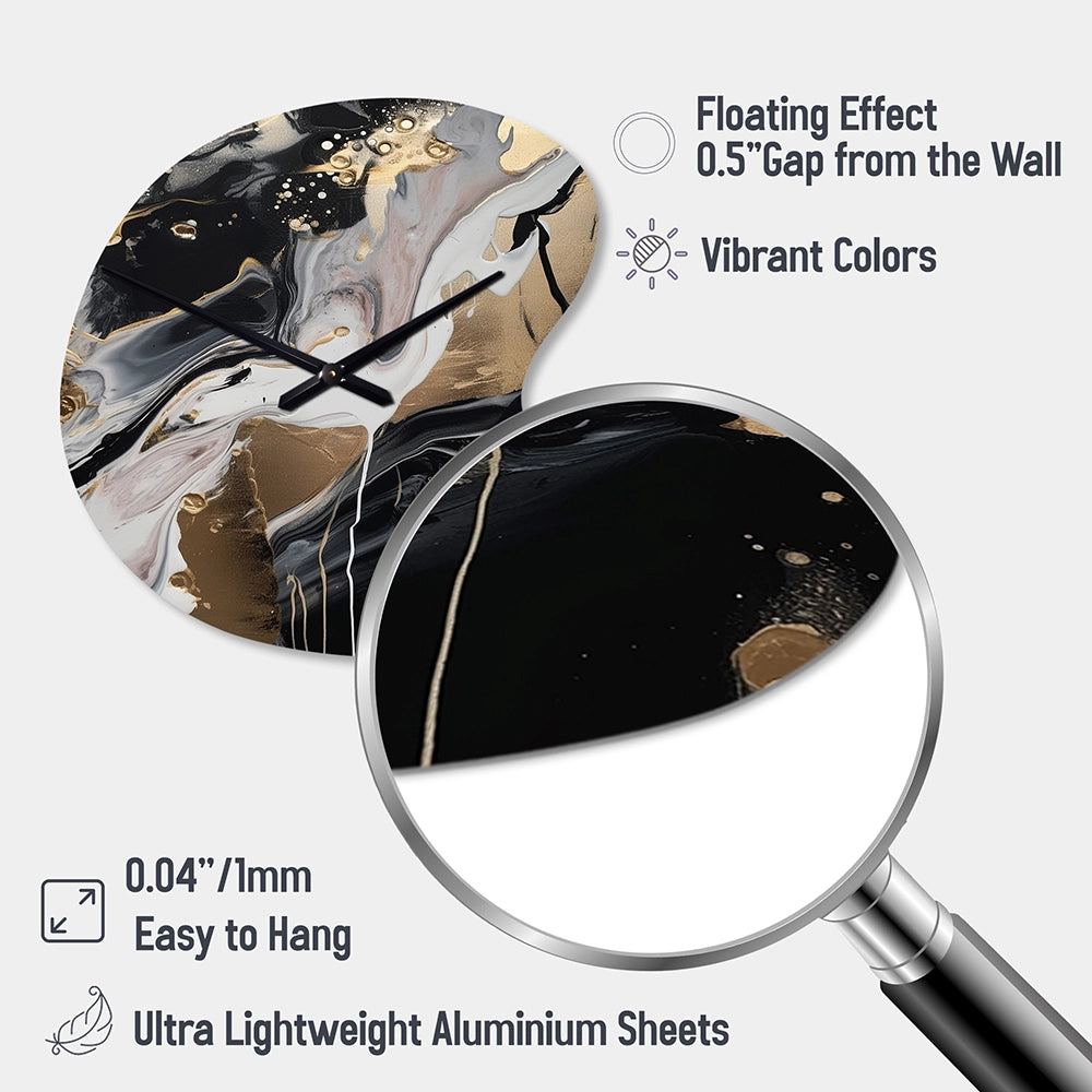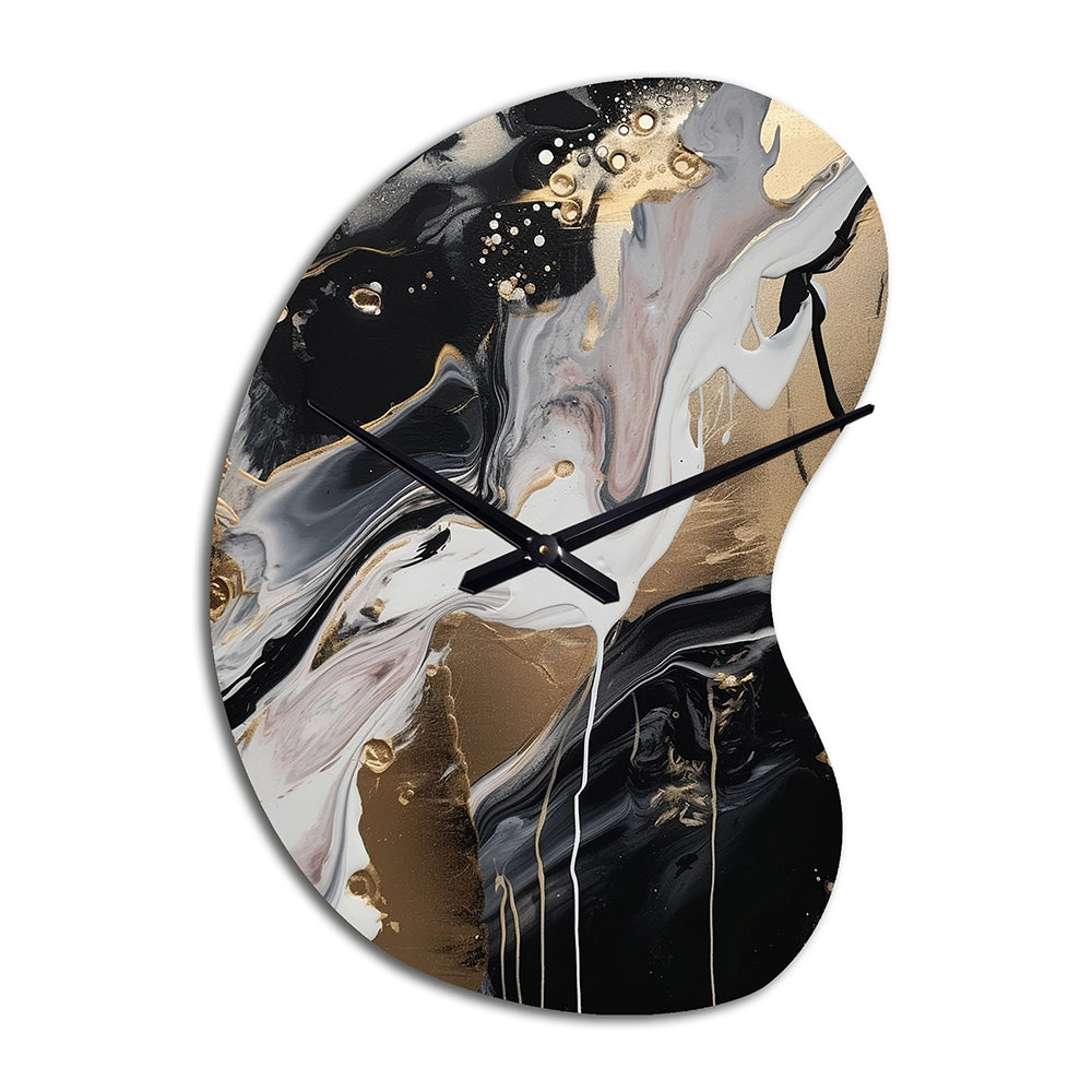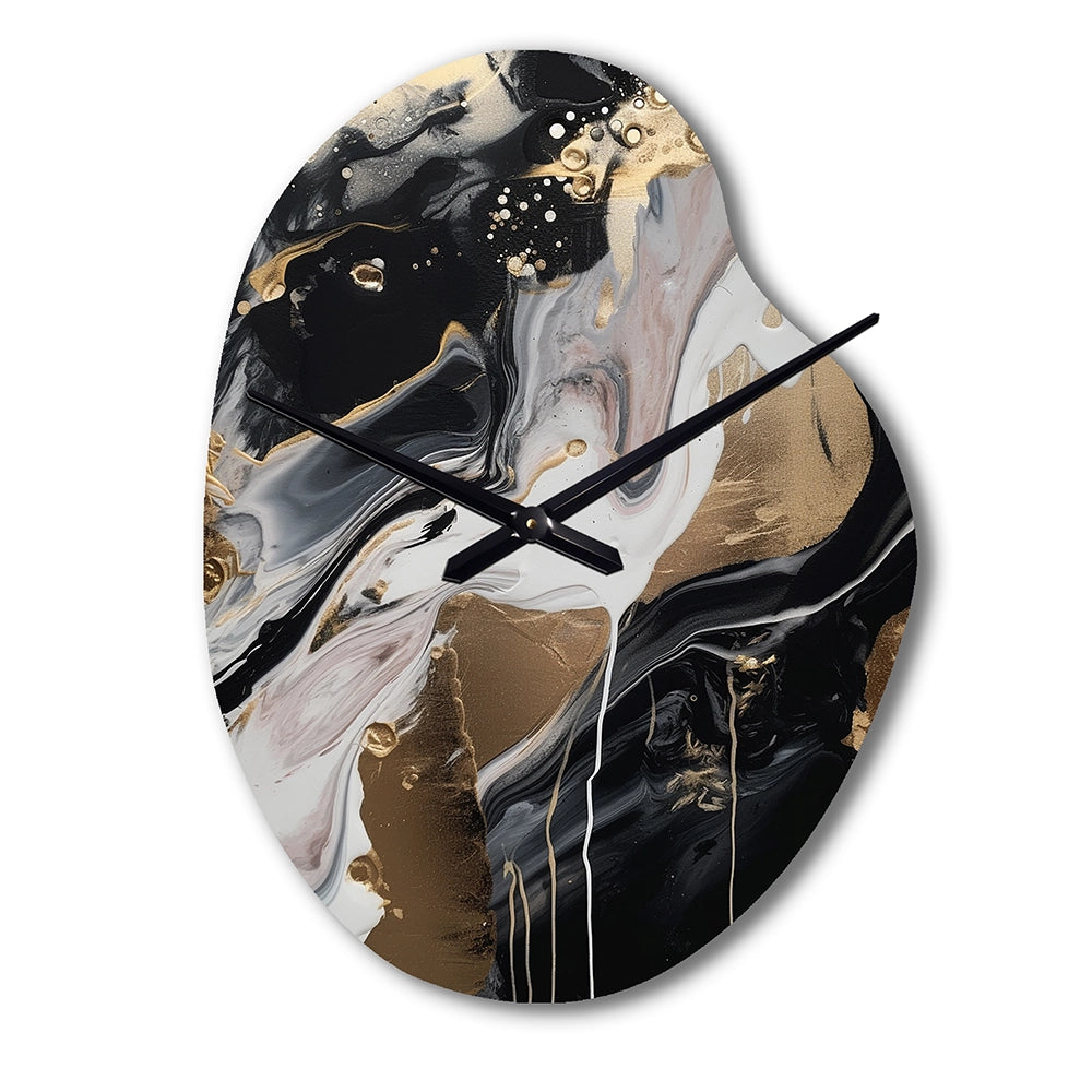 Back And Gold Marble Medley III - Asymmetric Metal Wall Clock
