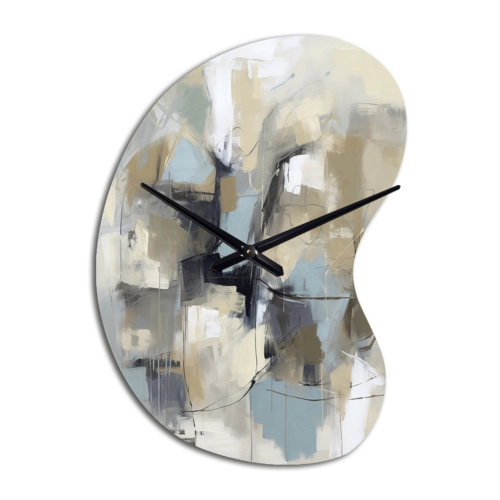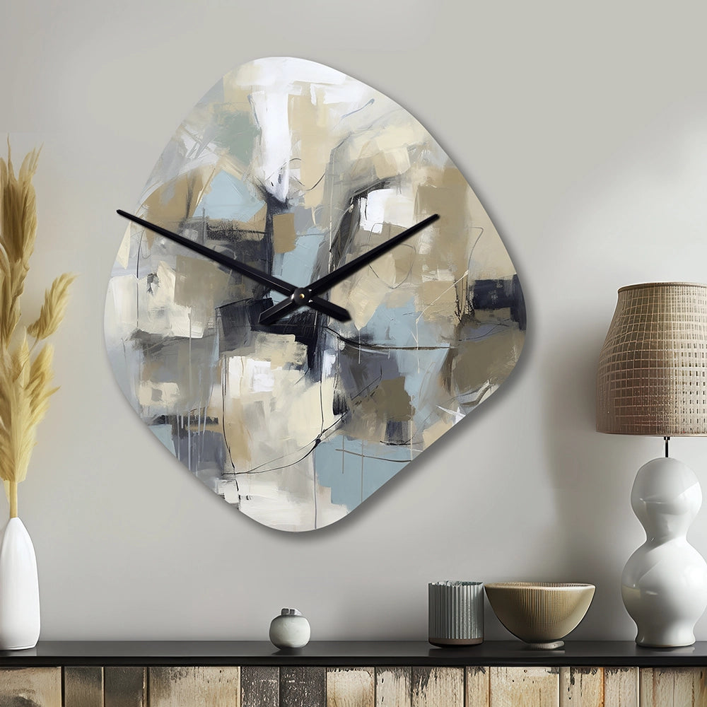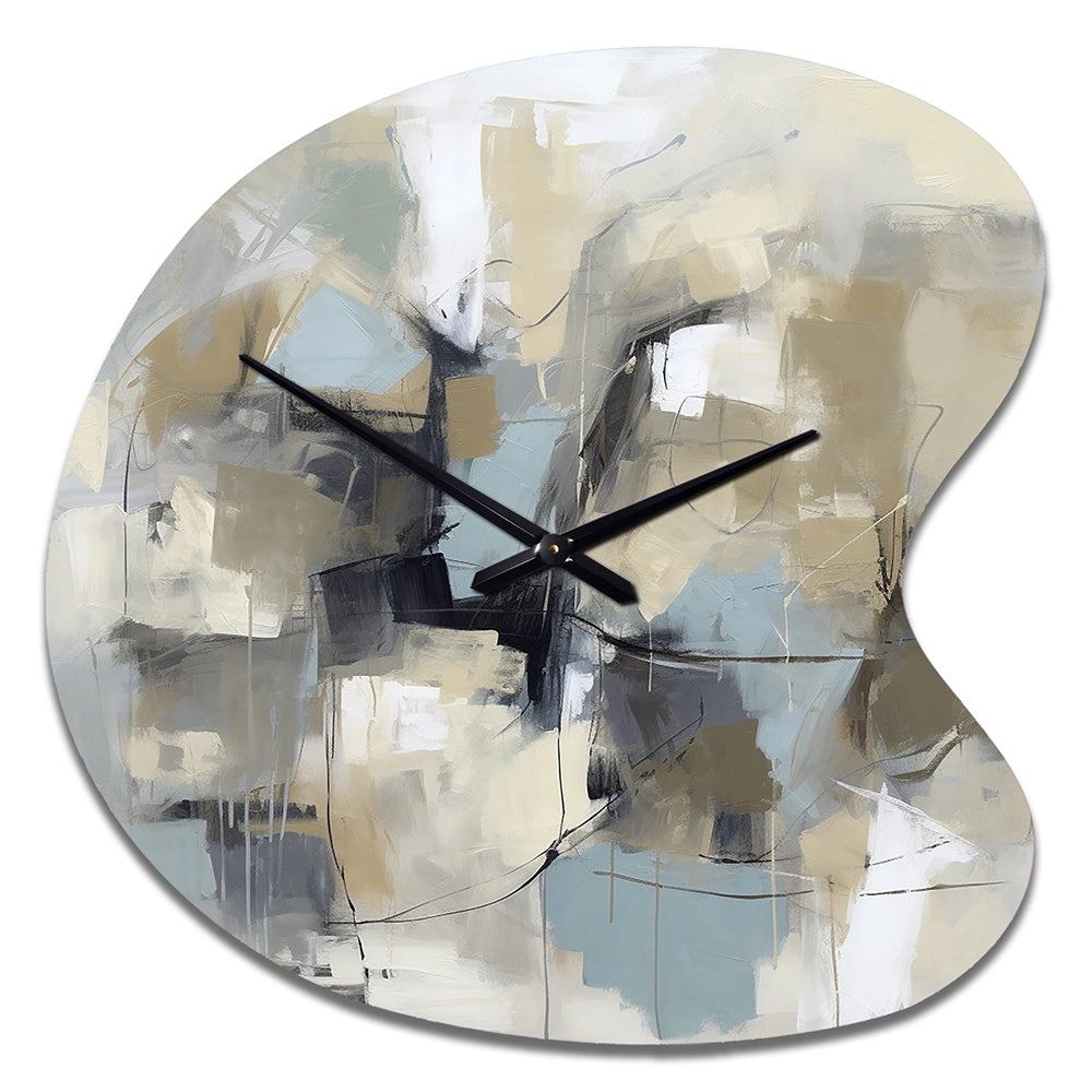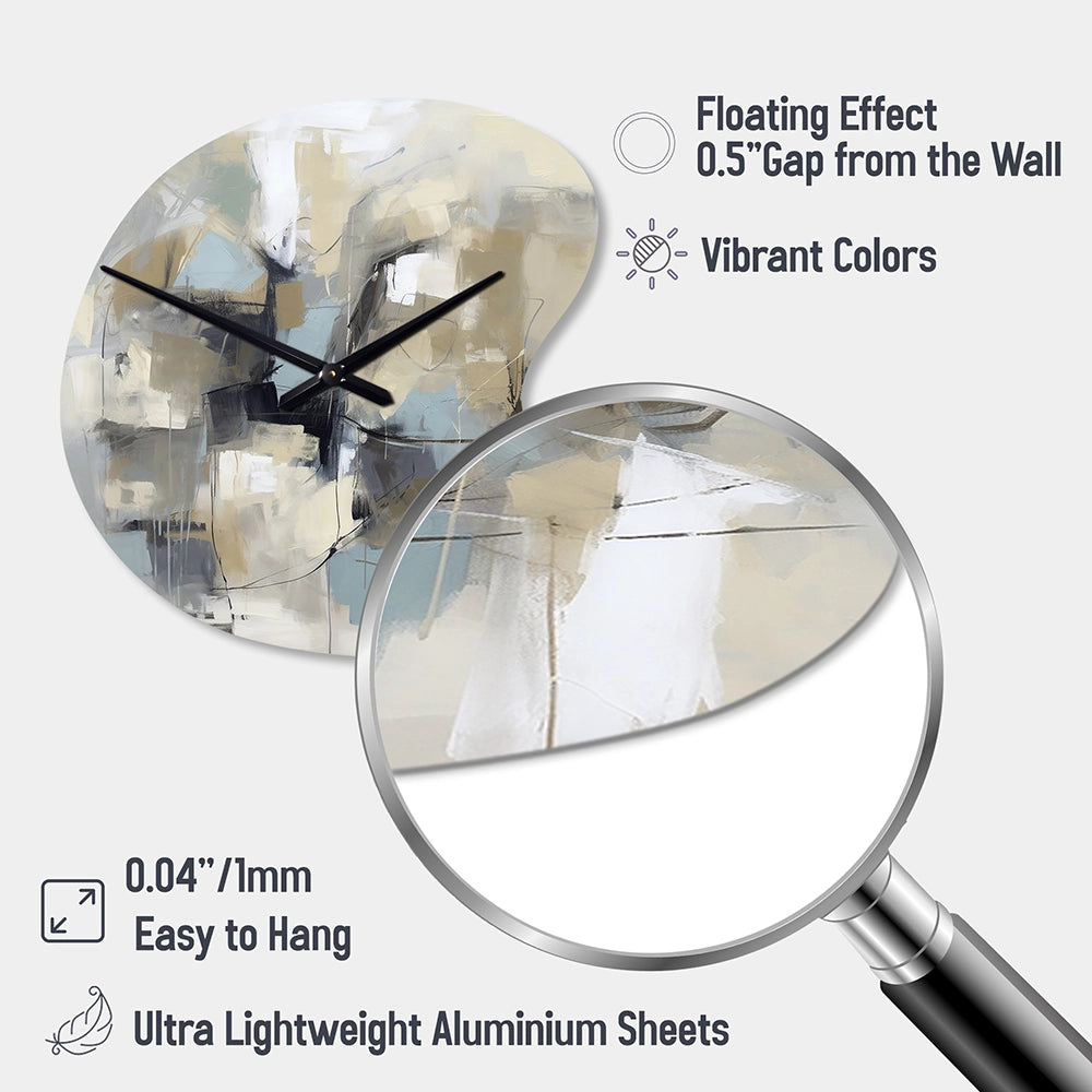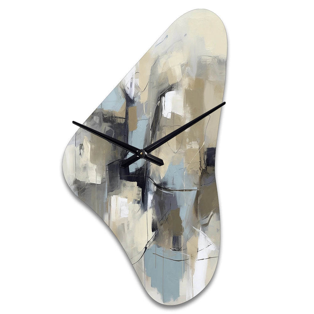 Beige And Grey Unbounded Creativity I - Asymmetric Metal Wall Clock