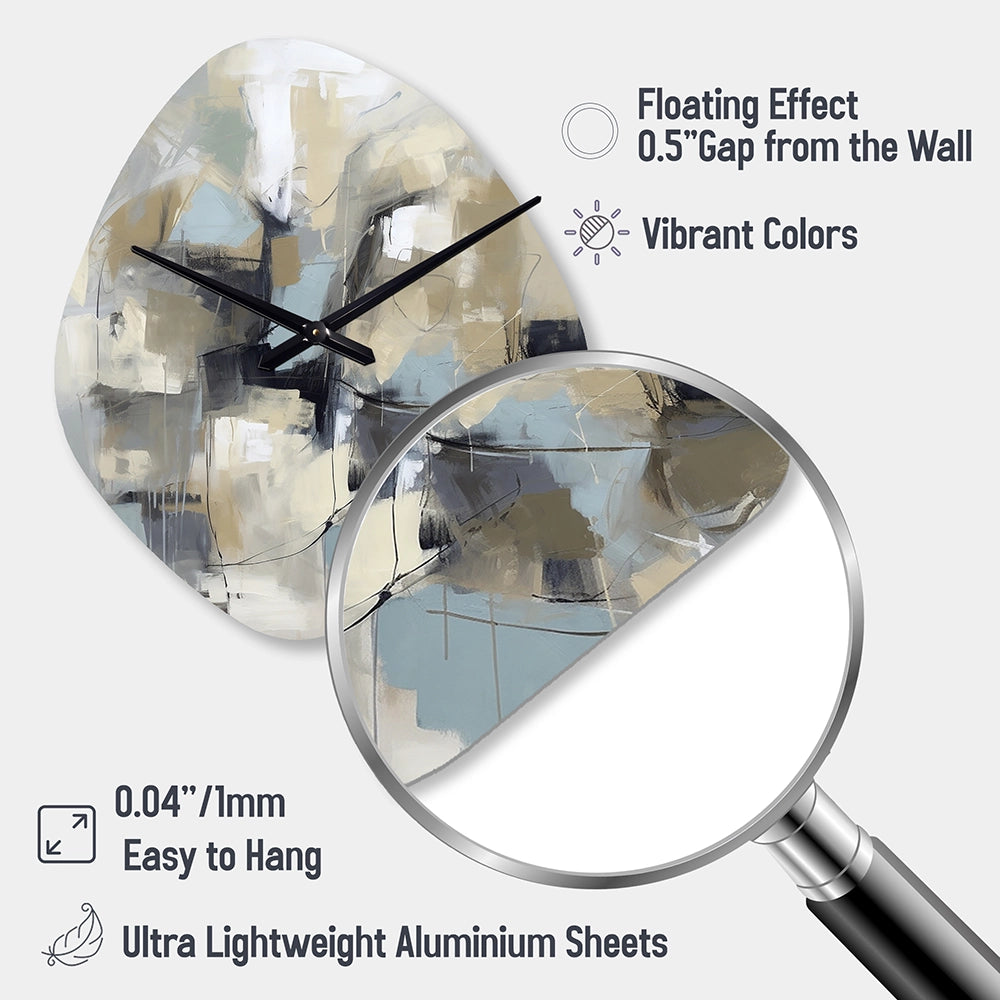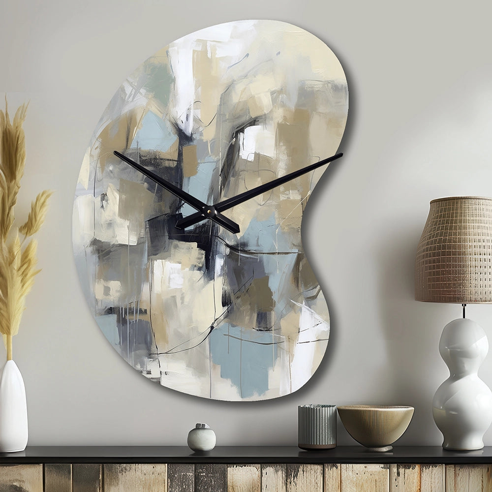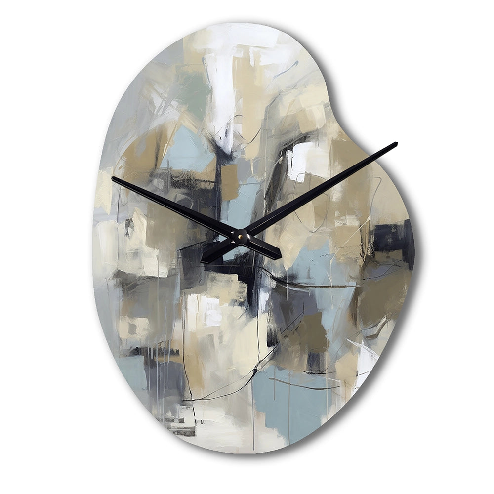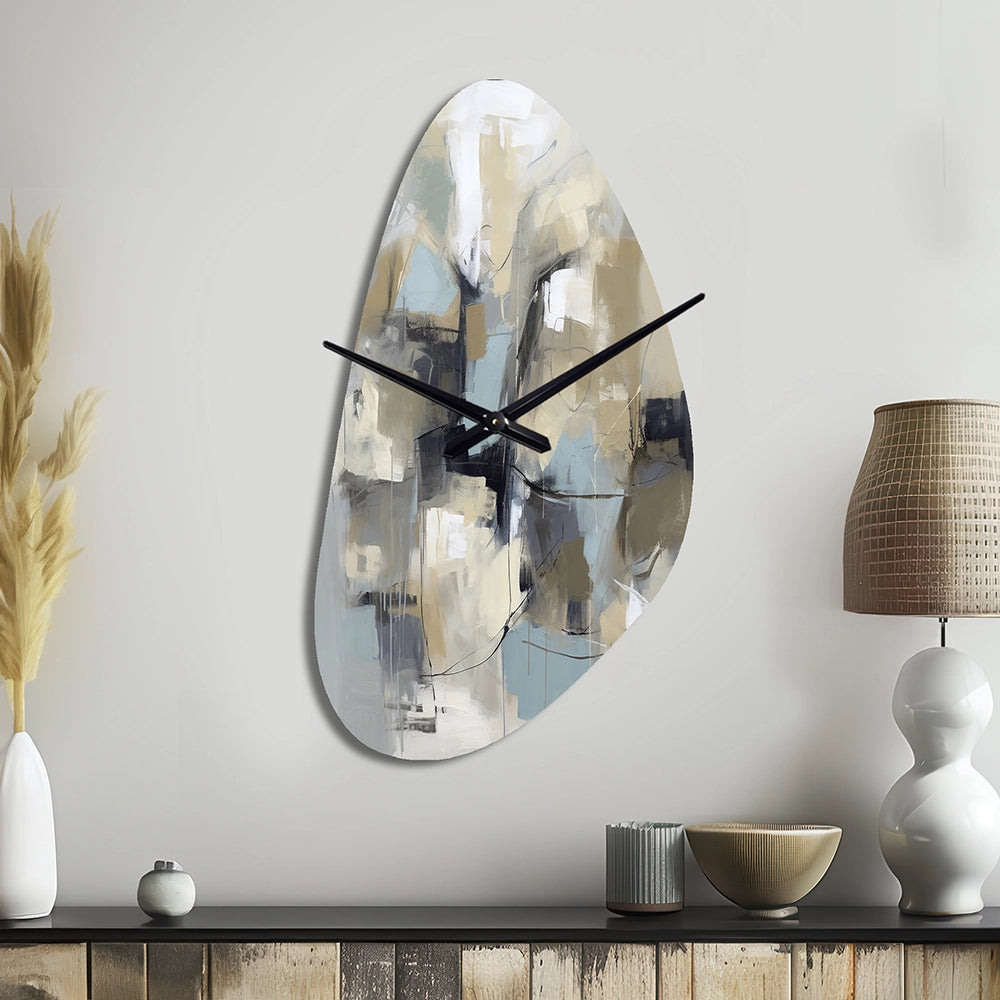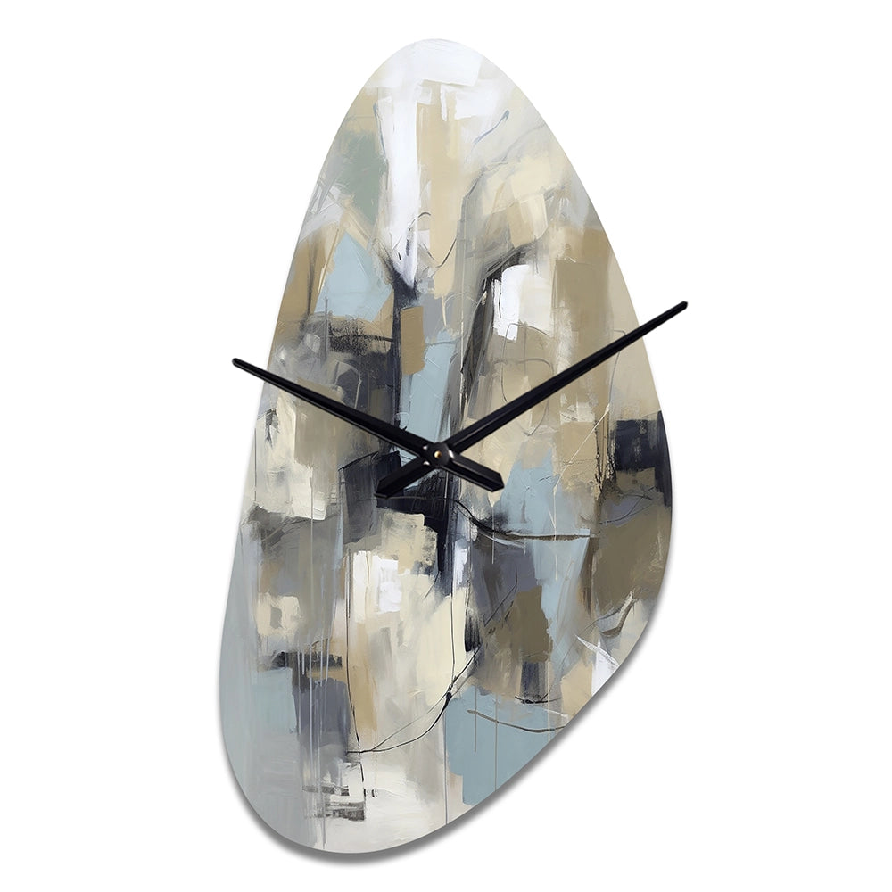 Beige And Grey Unbounded Creativity I - Asymmetric Metal Wall Clock